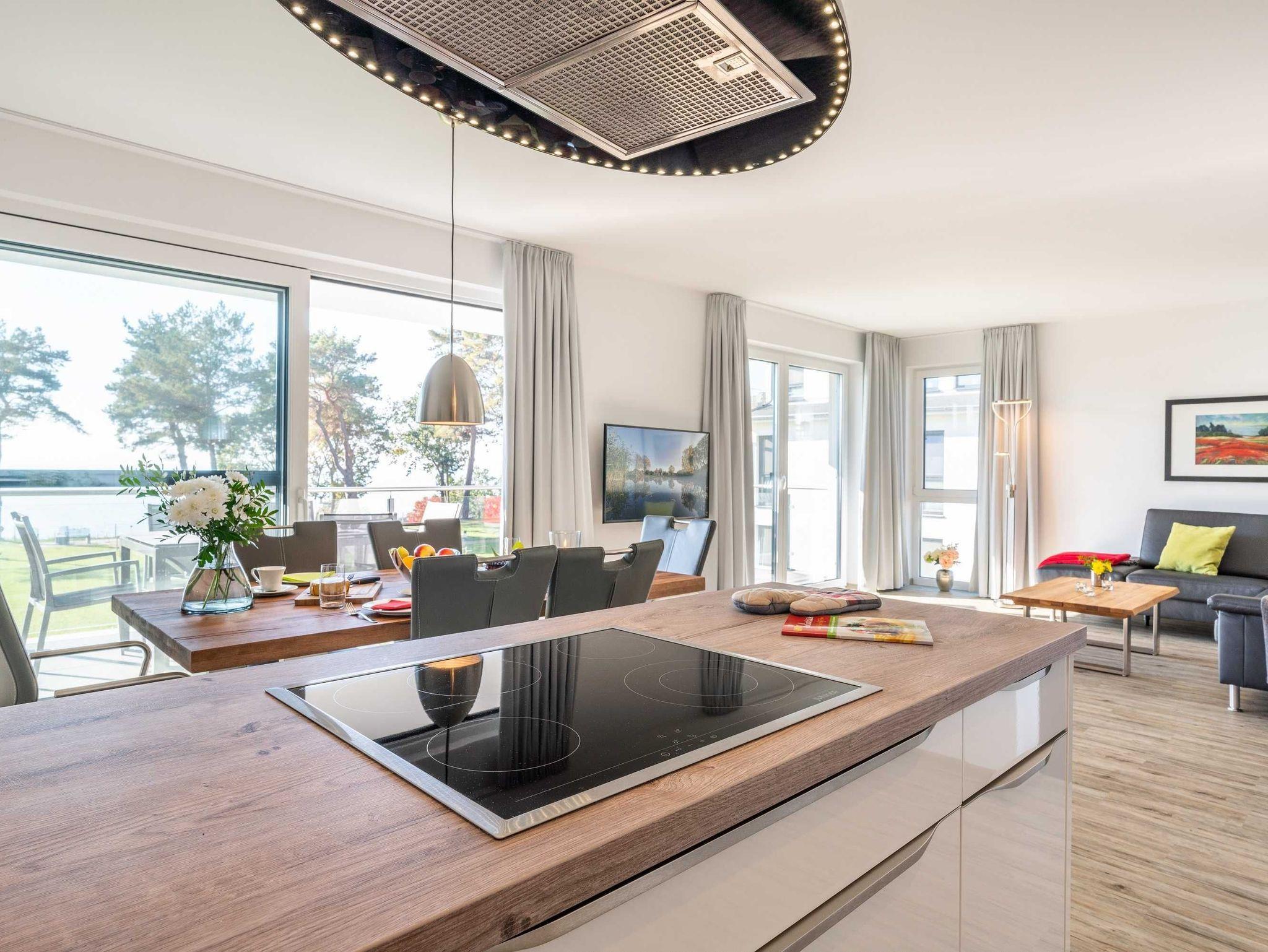 Moderne, hochwertig ausgestattete Ferienappartements mit großen Sonnenterrassen bieten ein traumhaftes Panorama auf das direkt vor uns gelegene Stettiner Haff. Beobachten Sie die Sonne beim Lauf über den Tag vom Aufgehen bis zum Untergehen. Der fantastische Blick auf die funkelnden Wassersterne wird Sie verzaubern. Im Gegensatz zur Ostseeküste können Sie nur hier die Sonne über dem Wasser erleben.