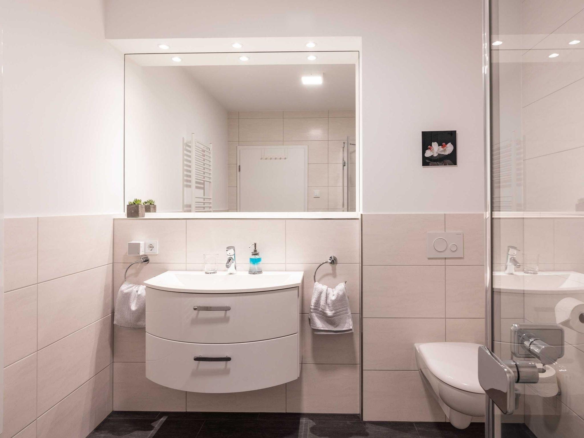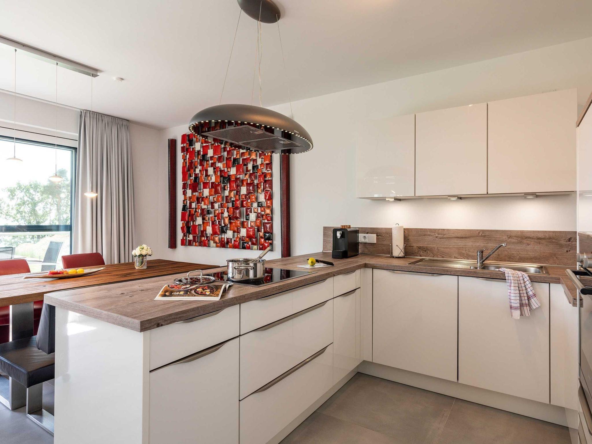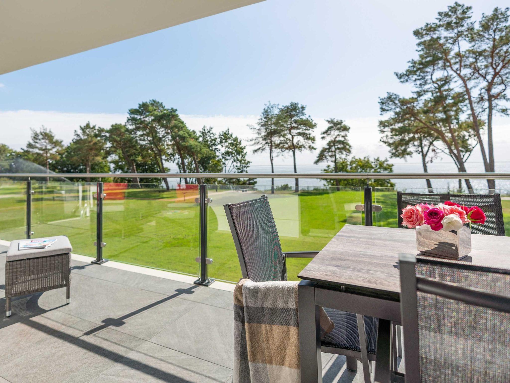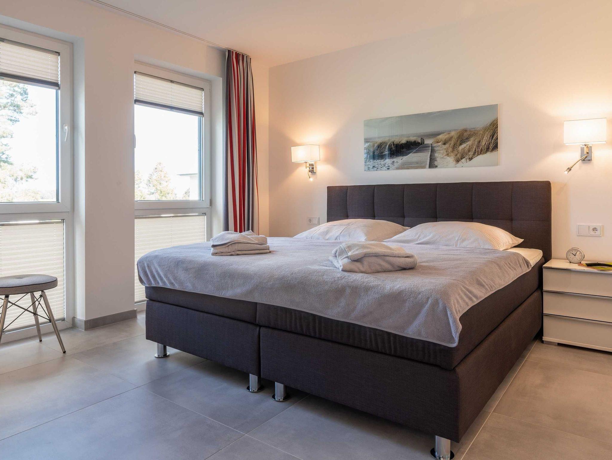 Diese luxuriöse 4-Zimmer-Wohnung im ersten Obergeschoss von Haus 4 (Aufzug vorhanden) mit Platz für maximal 6 Personen sowie einem Kleinkind bis 2 Jahre im Babybett verfügt über eine Wohnfläche von 119 m² und hat 3 Schlafzimmer sowie 2 voll ausgestattete Duschbäder. Die große Sonnenterrasse mit 17 m² liegt in idealer Süd-Ausrichtung. Die Wohnung ist modern eingerichtet mit offenem Wohn-Essbereich, großem Esstisch, Ledersofa sowie Smart-TV (inkl. Sky-Abo). Die hochwertig ausgestattete Küche, offen zum Wohnbereich, lässt keine Wünsche offen. Für gemütliche Abende sorgt der Elektrokamin mit seinem stimmungsvollen Flammenspiel.
