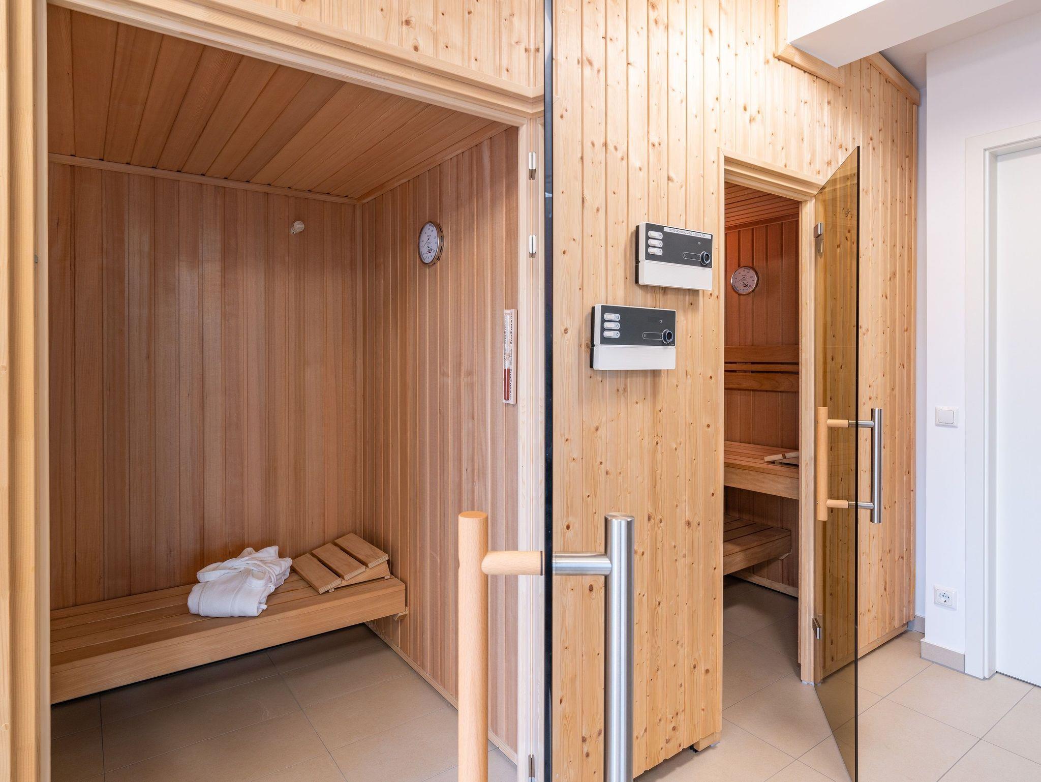 Weit ab von der Hektik und den Besuchermassen öffentlicher Wellnessangebote, finden Sie im Dachgeschoss des Hauses auf 190 m² die Ruhe, die Sie sich verdient haben. Entspannen Sie im hauseigenen, kostenfreien Wellnessbereich mit zwei Saunen und gemütlichem Ruheraum. Genießen Sie die klare Ostseeluft auf der großen angrenzenden Dachterrasse.