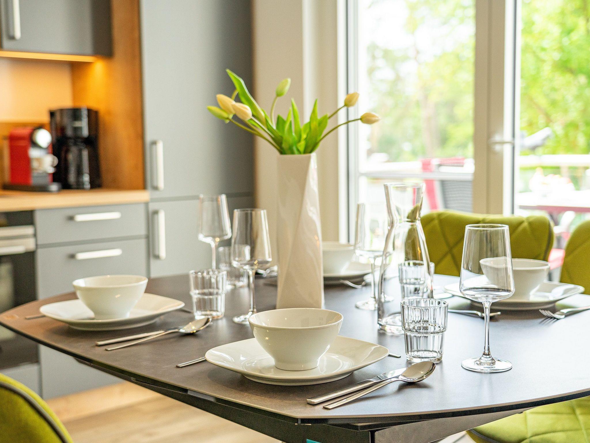 Auf einer Wohnfläche von 87 m² finden vier Erwachsene und ein Kleinkind bis zwei Jahre in dieser modern eingerichteten Ferienwohnung ausreichend Platz für einen entspannten Urlaub am Stettiner Haff auf Usedom.