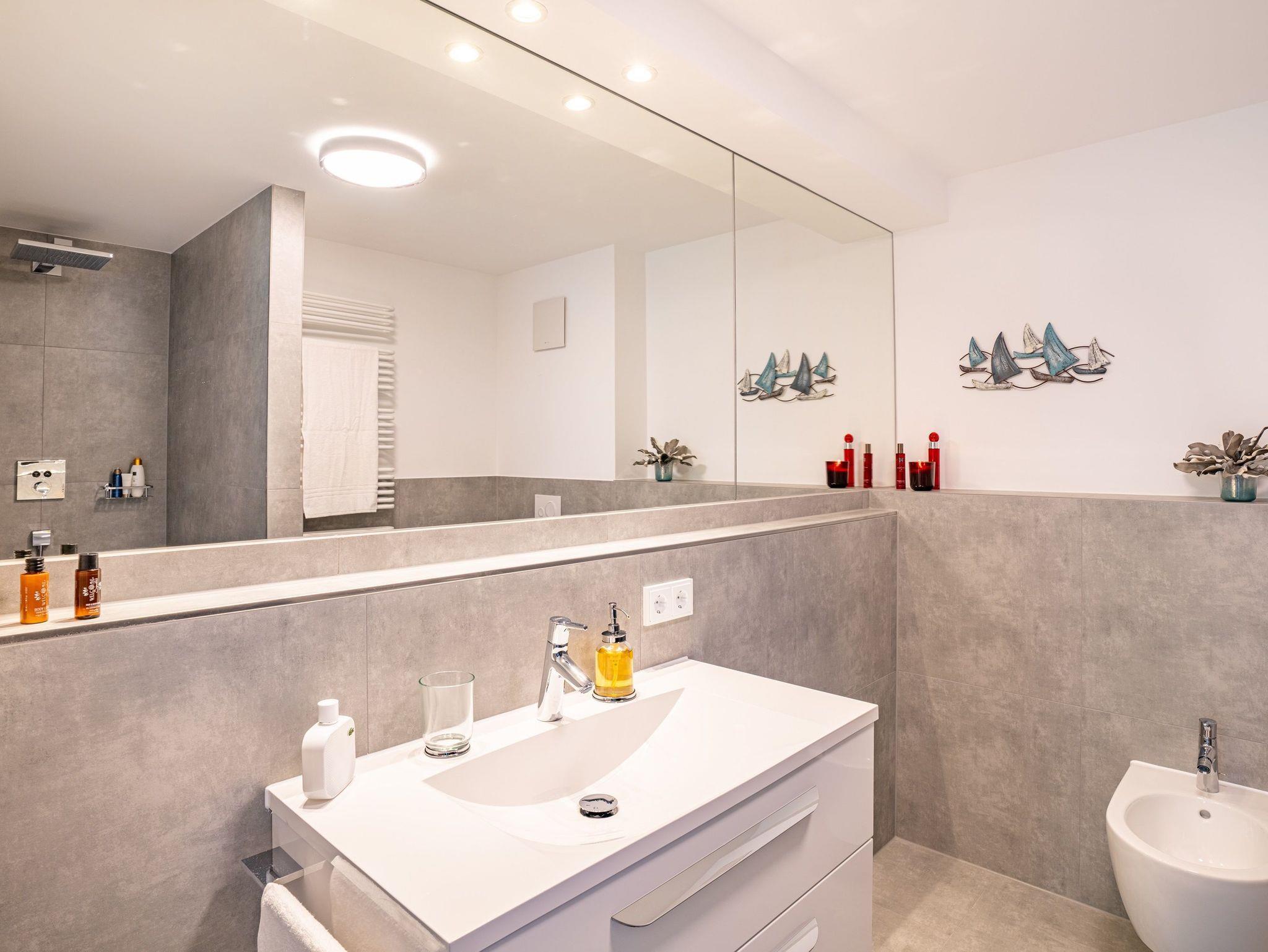 Im zweiten, voll ausgestatteten Badezimmer steht Ihnen eine weitere begehbare Dusche und ein Bidet zur Verfügung.