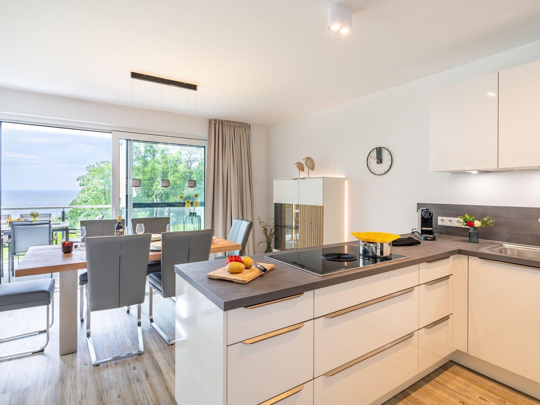 Das Induktionskochfeld mit Bora-Abzug ermöglicht Ihnen beim Kochen einen ungestörten Blick auf das Wasser ? einfach fantastisch!