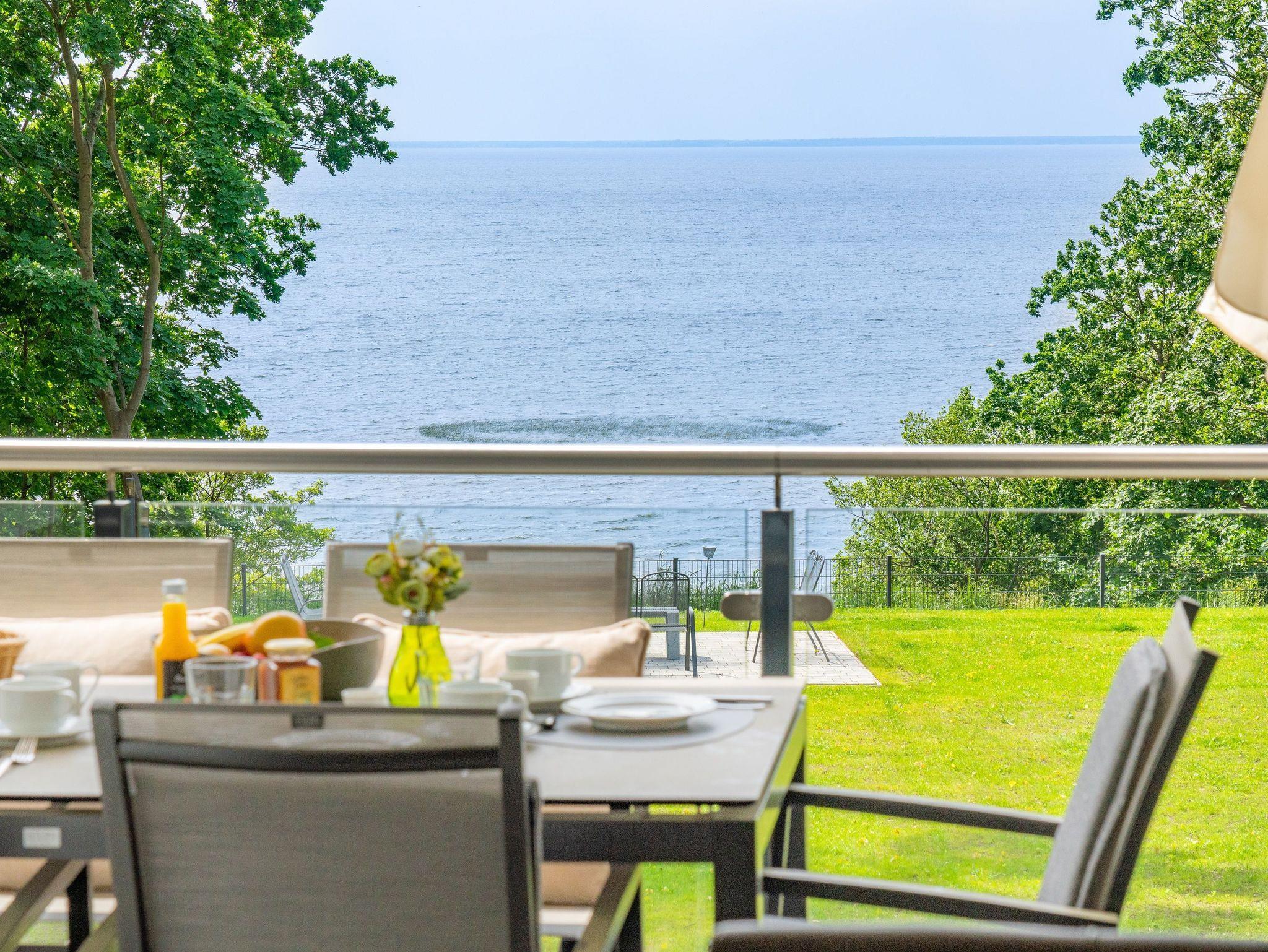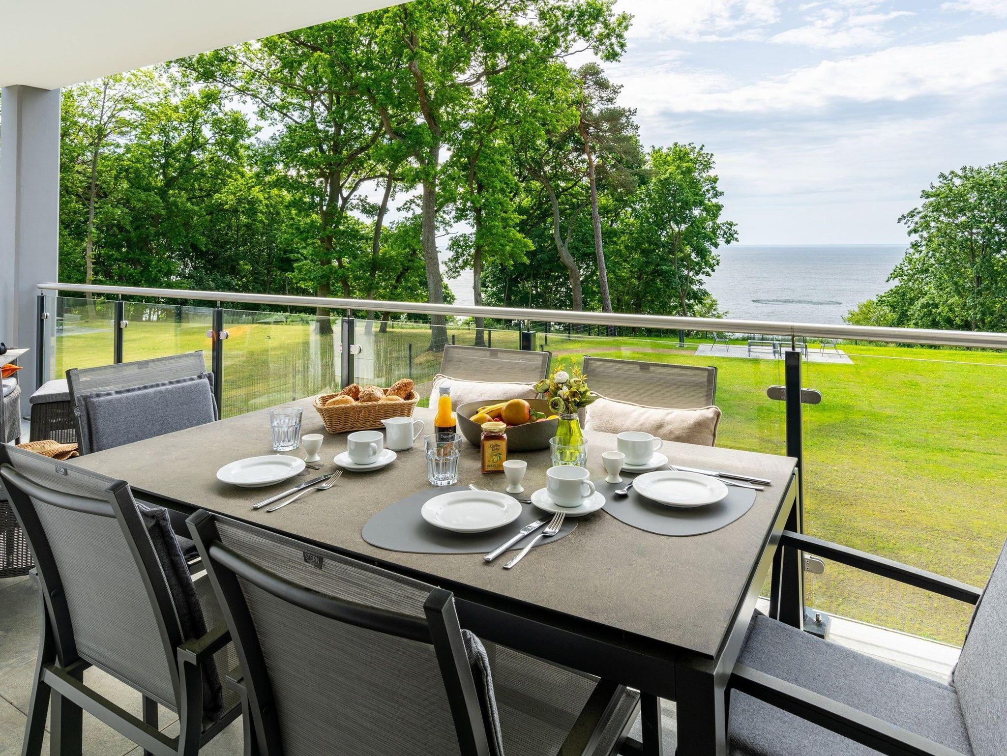 Freuen Sie sich auf den atemberaubenden Meerblick auf das Stettiner Haff vom 18 m² großen, überdachten Sonnenbalkon, der schnell Ihr Lieblingsplatz in diesem Ferienapartment wird.