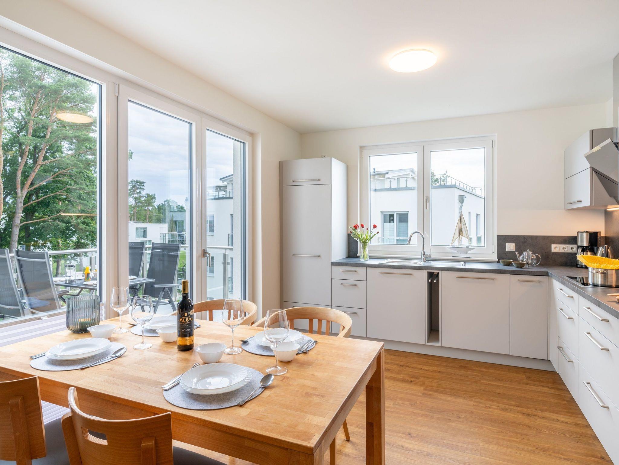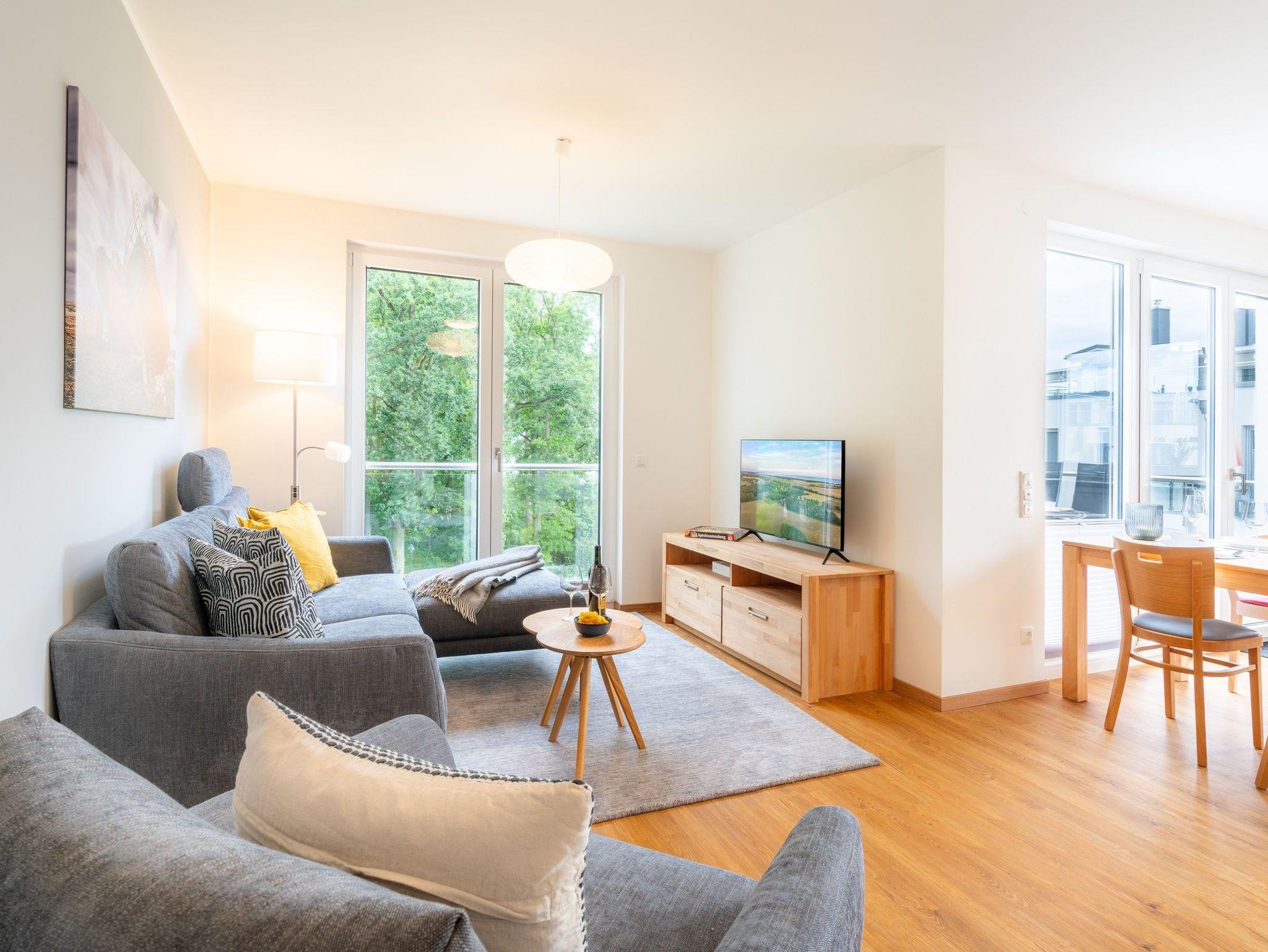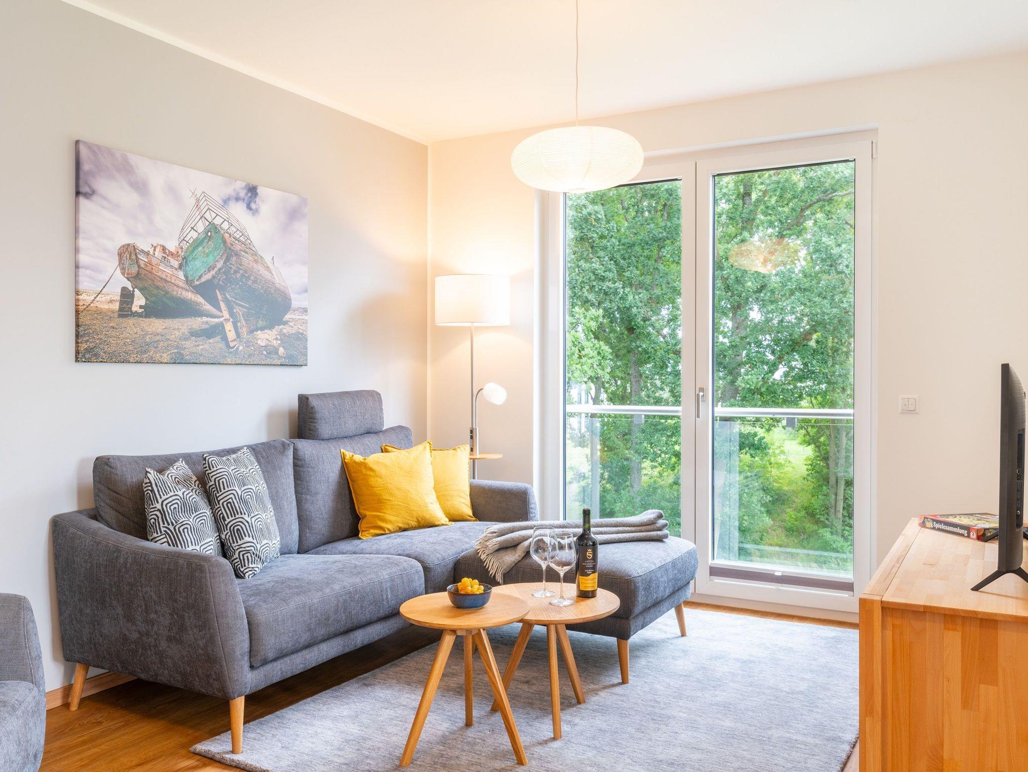 Auf einer Wohnfläche von 92 m² finden vier Erwachsene und ein Kleinkind bis zwei Jahre in dieser modern eingerichteten Ferienwohnung ausreichend Platz für einen entspannten Urlaub am Stettiner Haff auf Usedom.