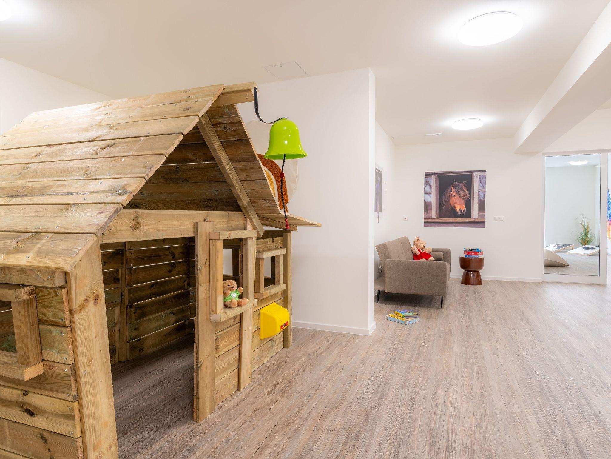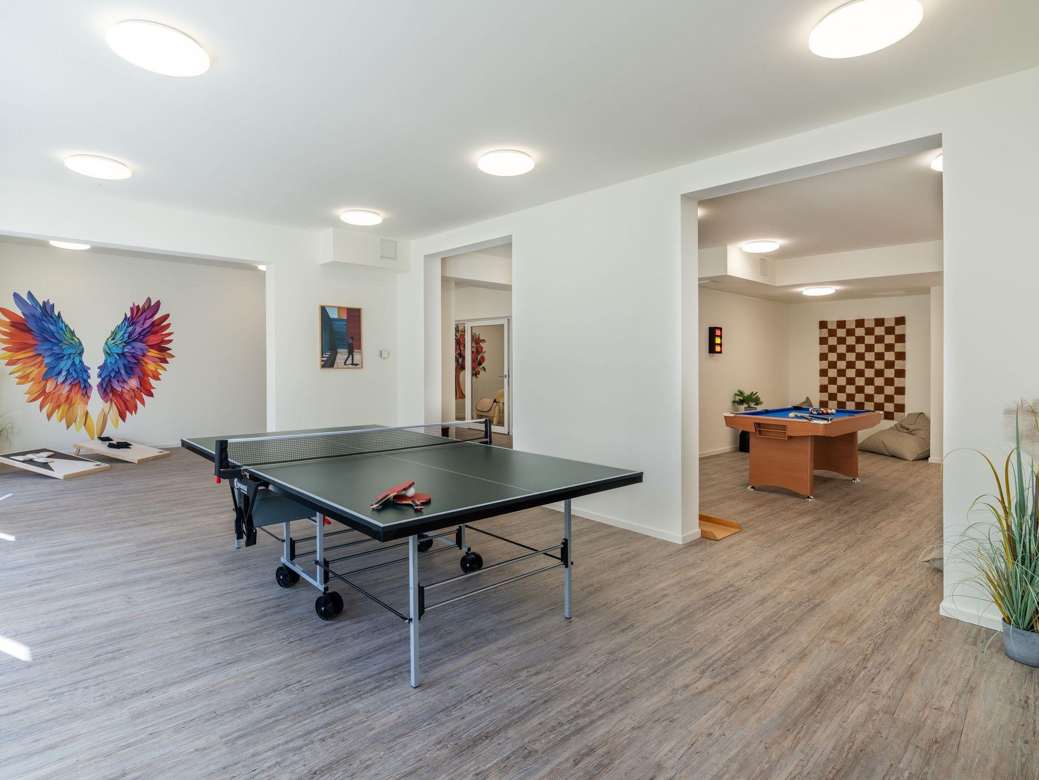 Ihre Kinder dürfen sich auf den vielseitig gestalteten Freizeitbereich (390 m²) im Souterrain mit Tischtennis, Kickertisch, Klettergerüst und Spielezimmer freuen, der selbst an Schlechtwettertagen keine Langeweile aufkommen lässt. Erwachsene finden am Billardtisch oder in der gemütlichen Lounge-Ecke Ausgleich mit einem guten Buch oder Musik im Ohr.