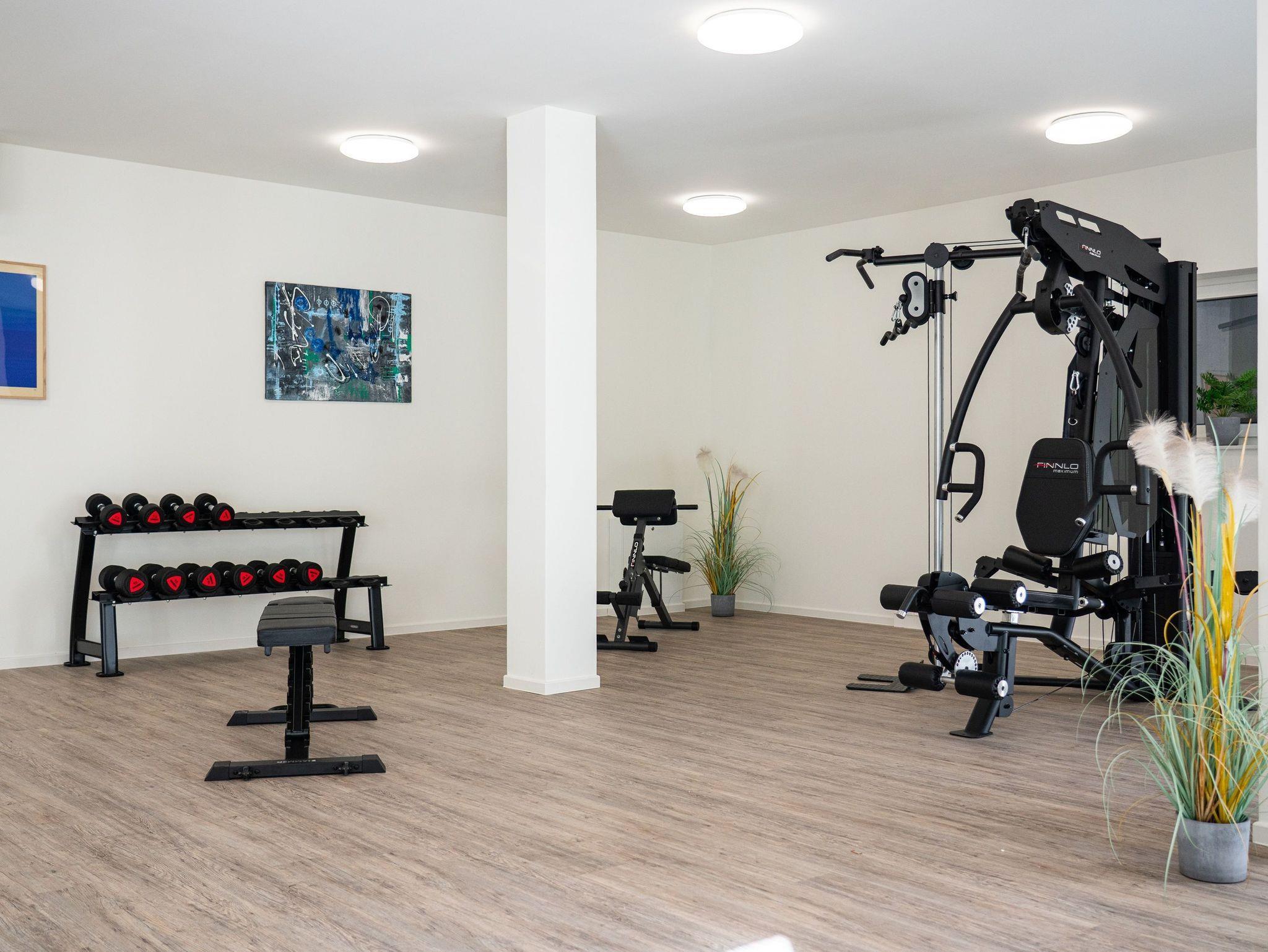 Die aktiven Urlauberinnen und Urlauber kommen in dem großzügigen, lichtdurchfluteten Fitnessraum auf ihre Kosten, wo das Angebot an hochwertigen Marken-Sportgeräten u. a. mit verschiedenen Cardiogeräten, einer Multifunktions-Kraftstation und Hantelbänken ein individuelles Training ermöglicht.