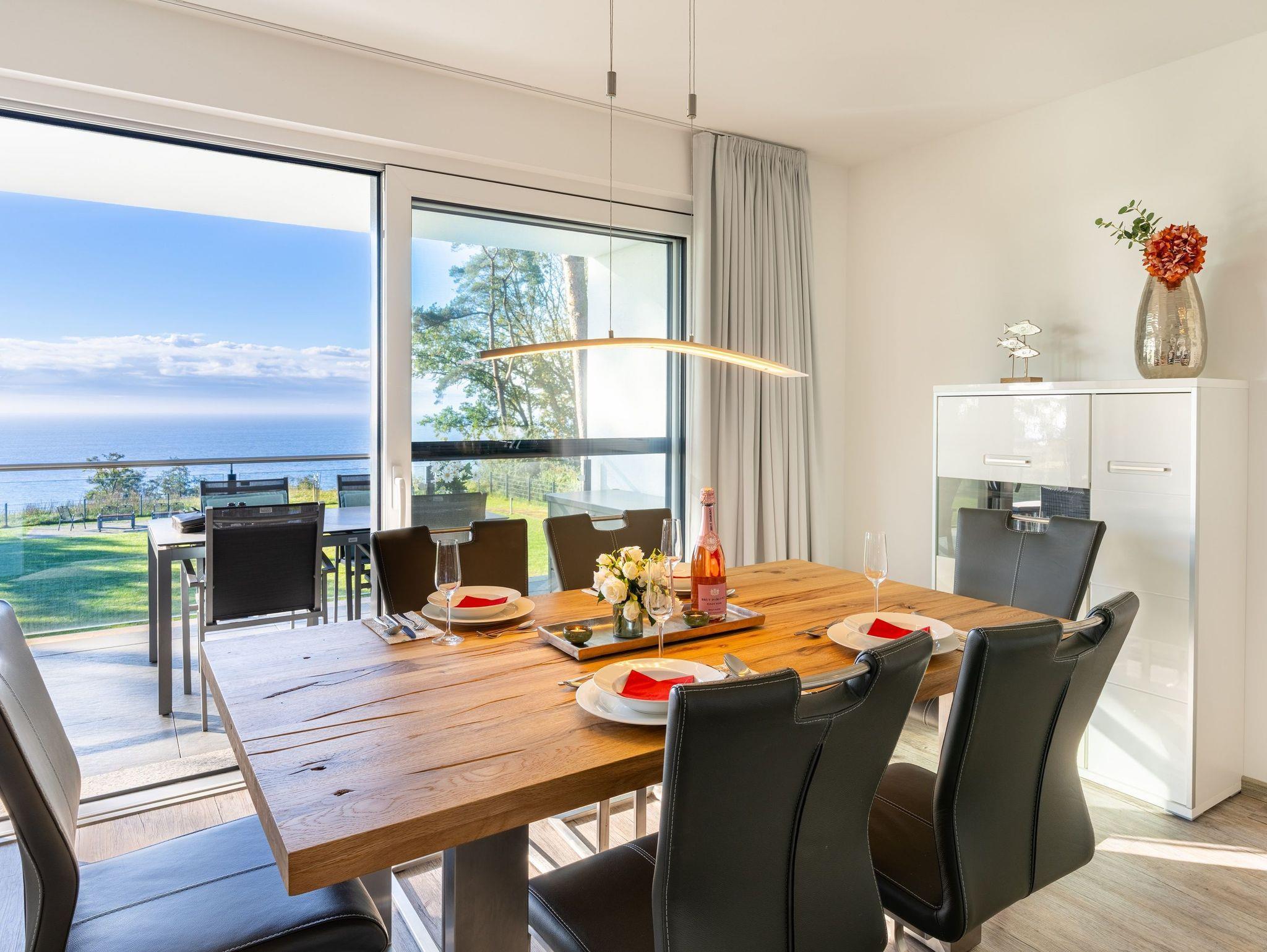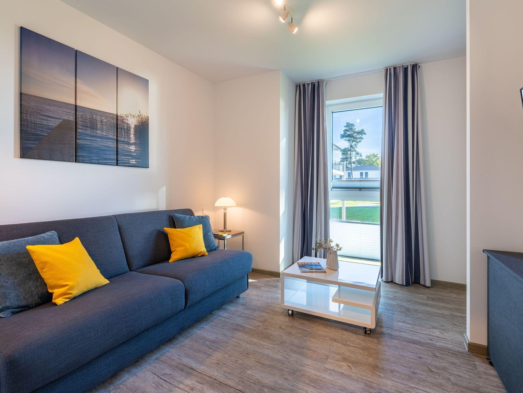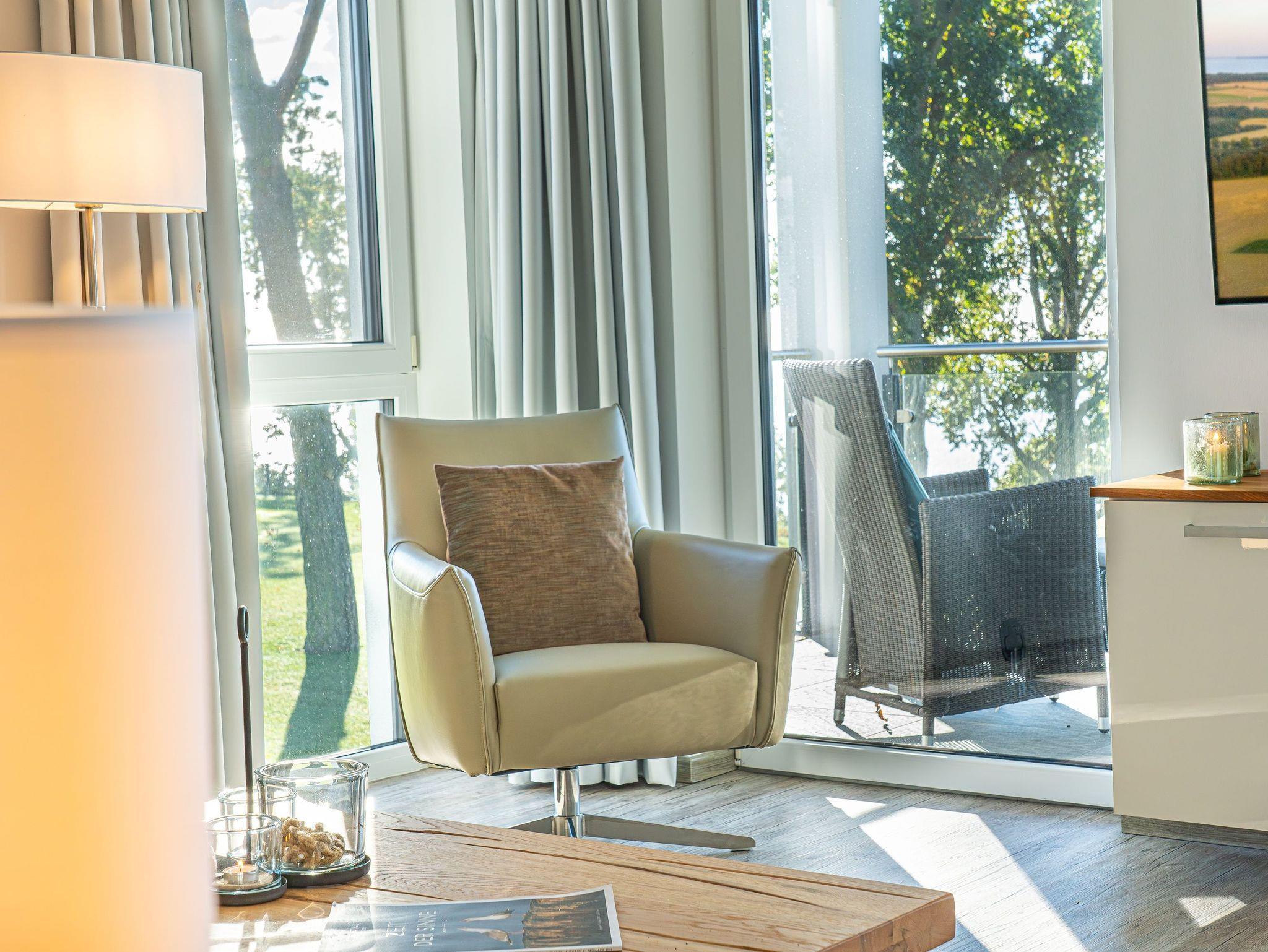 Alle Terrassenwohnungen und Apartments sind anspruchsvoll und modern ausgestattet. Großzügige Rasenflächen mit angelegten Gehwegen umgeben unsere Ferienhäuser. Einzelne Haffterrassen laden mit Sitzgelegenheiten an der Steilküste zum Verweilen ein.