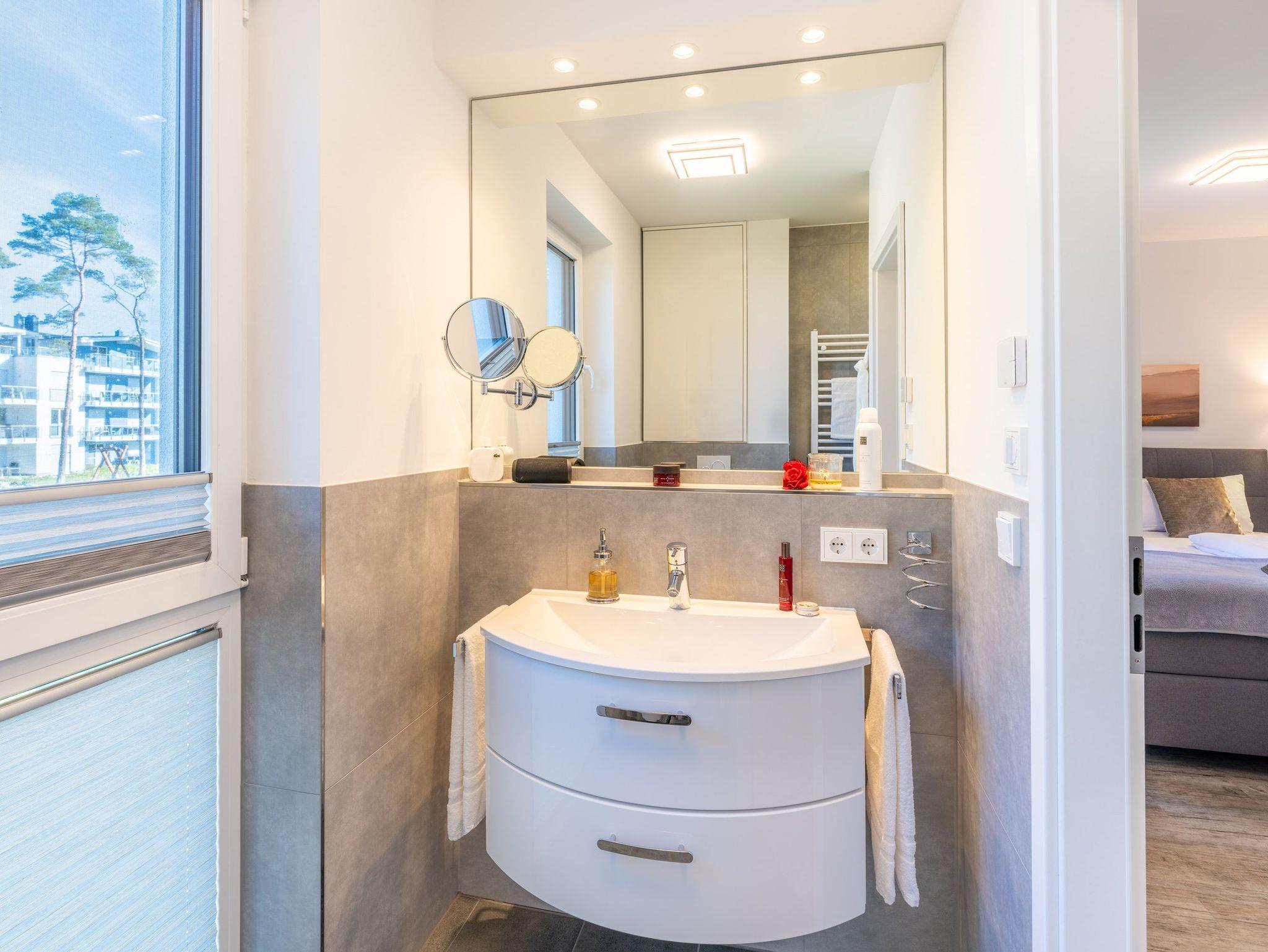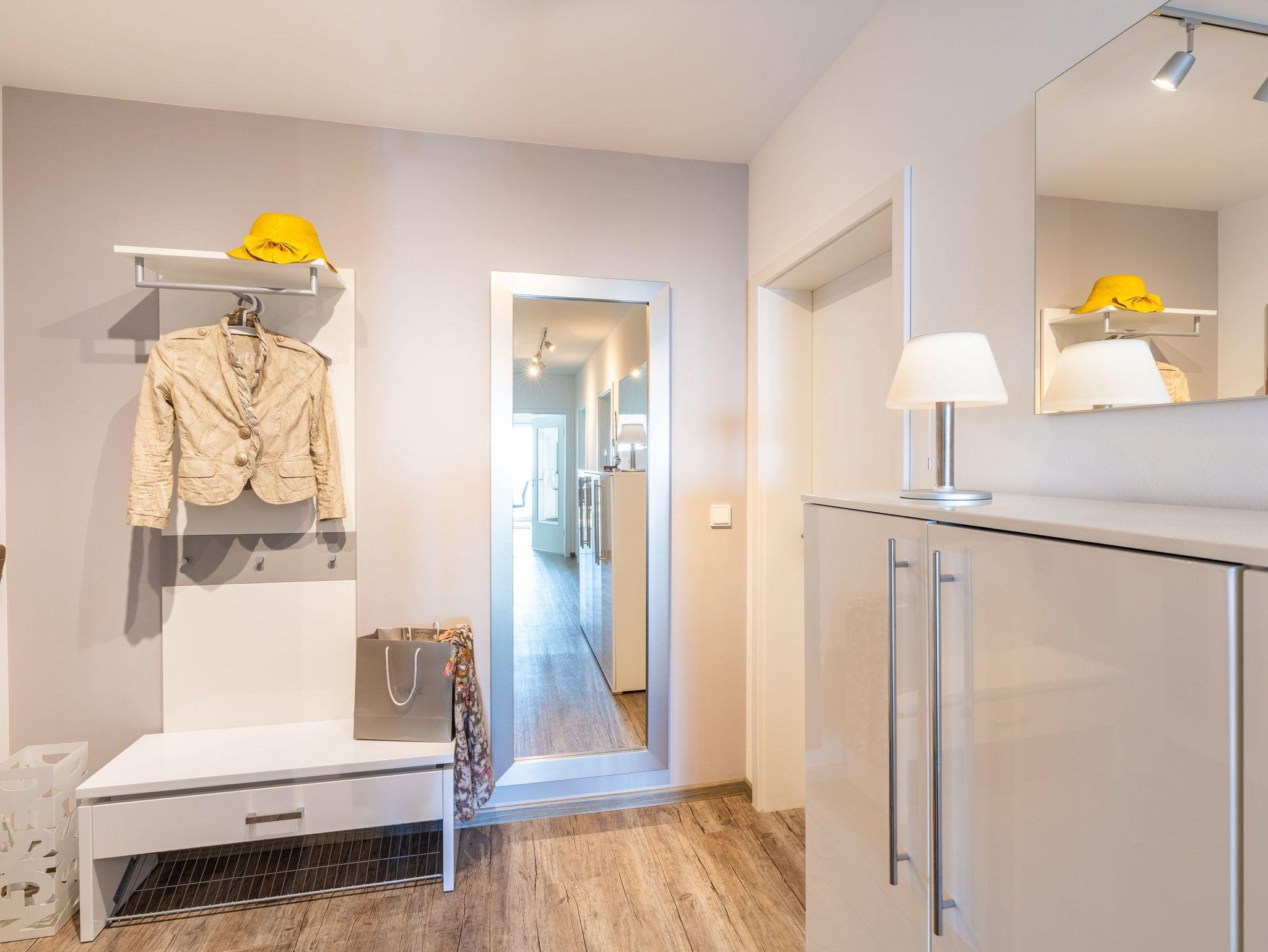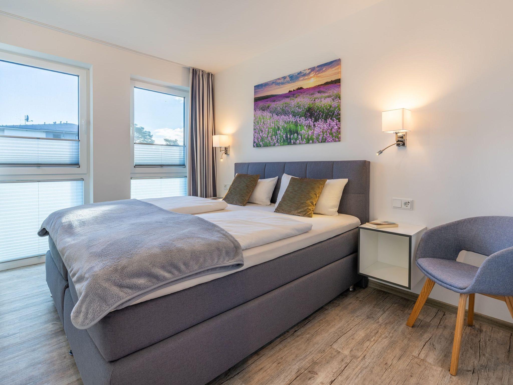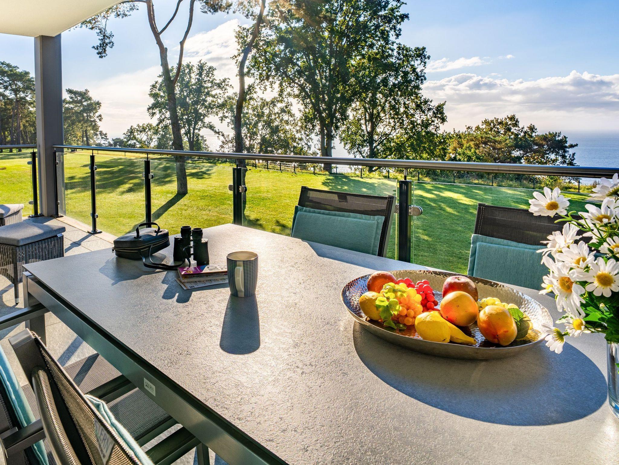 Alle Terrassenwohnungen und Apartments sind anspruchsvoll und modern ausgestattet. Großzügige Rasenflächen mit angelegten Gehwegen umgeben unsere Ferienhäuser. Einzelne Haffterrassen laden mit Sitzgelegenheiten an der Steilküste zum Verweilen ein.