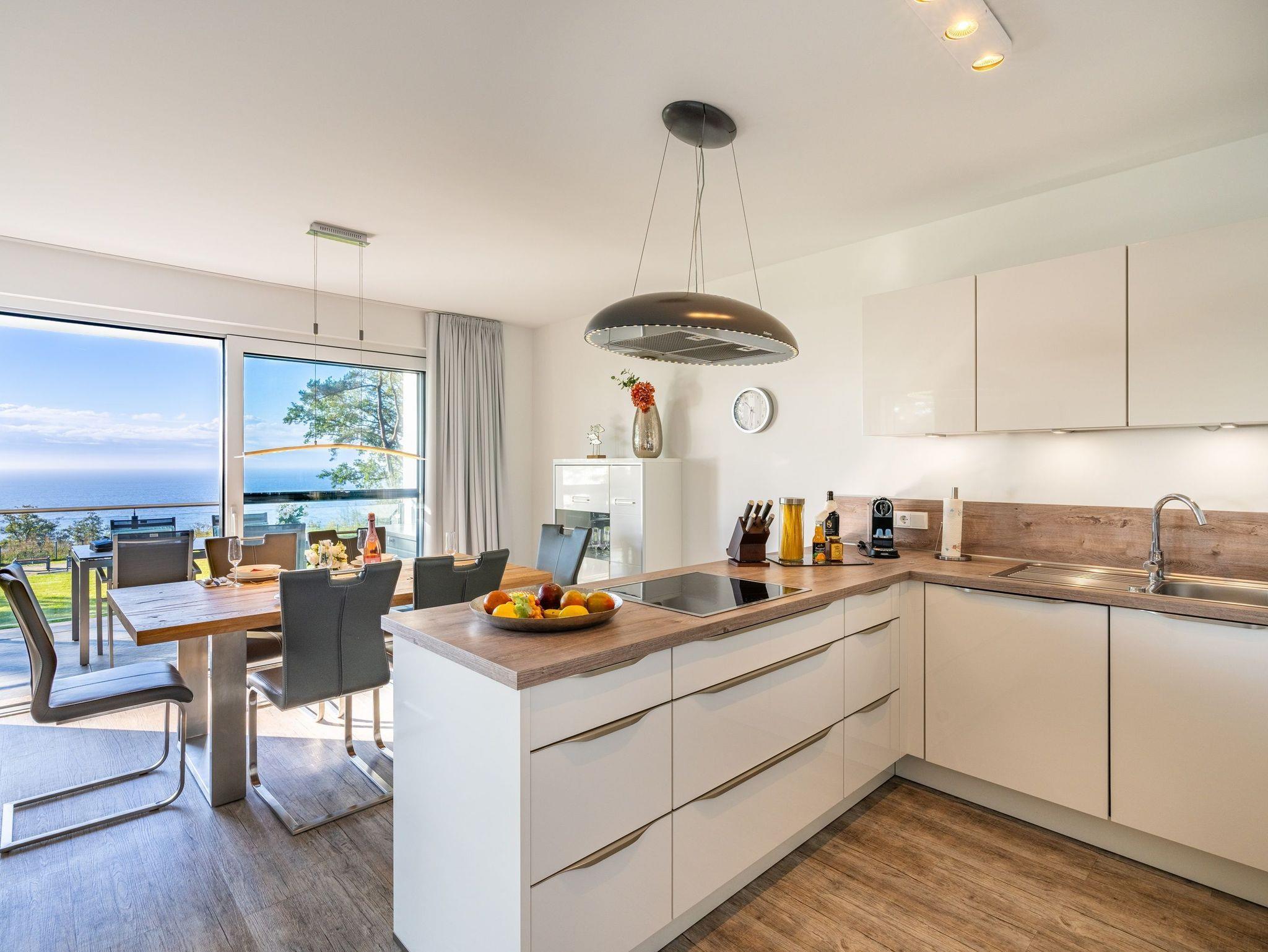 Die hochwertig ausgestattete Küche, offen zum Wohnbereich, lässt keine Wünsche offen.