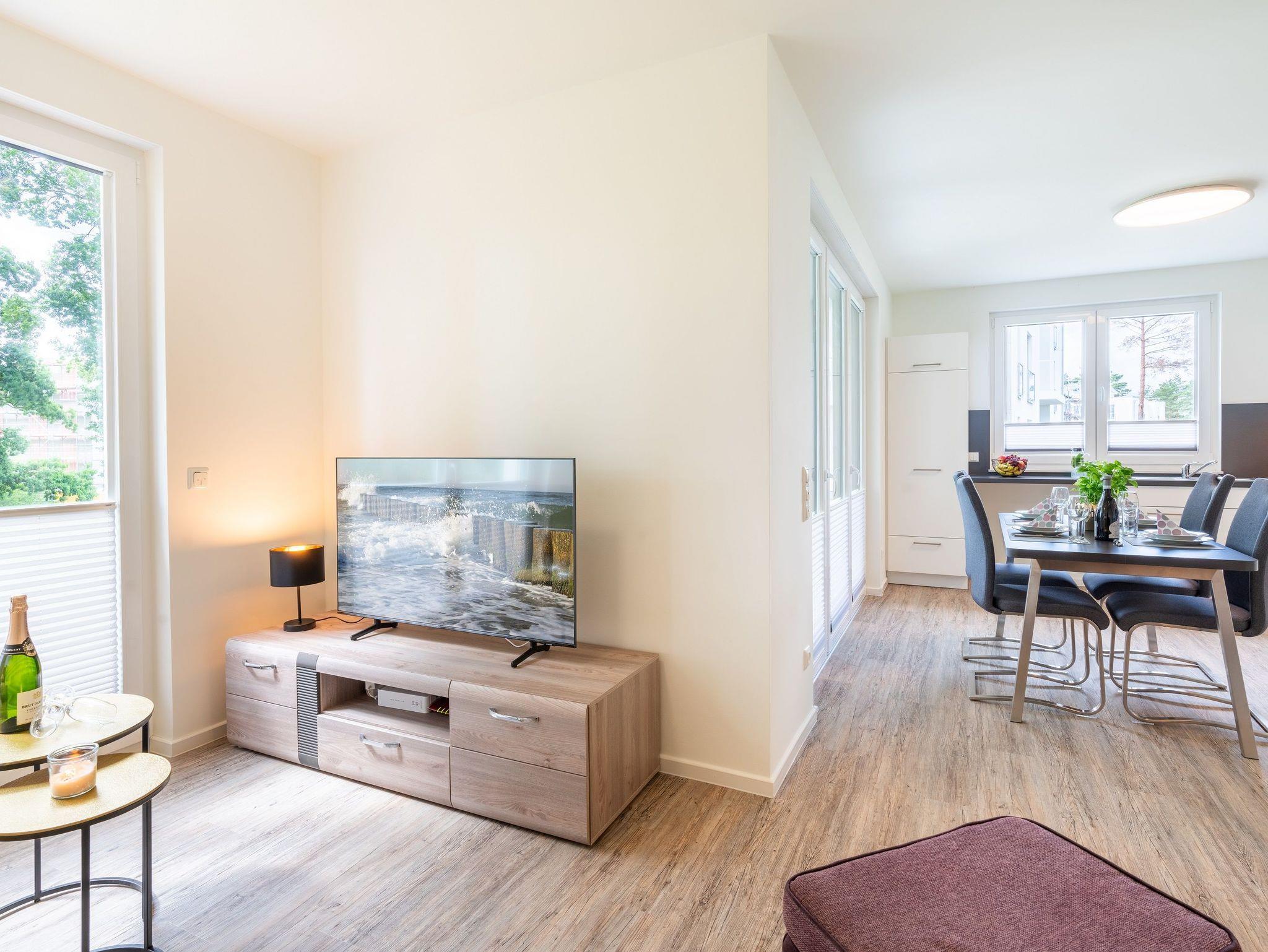 Auf einer Wohnfläche von 92 m² finden fünf Erwachsene und ein Kind bis 14 Jahre in dieser modern eingerichteten Ferienwohnung ausreichend Platz für einen entspannten Urlaub am Stettiner Haff auf Usedom.