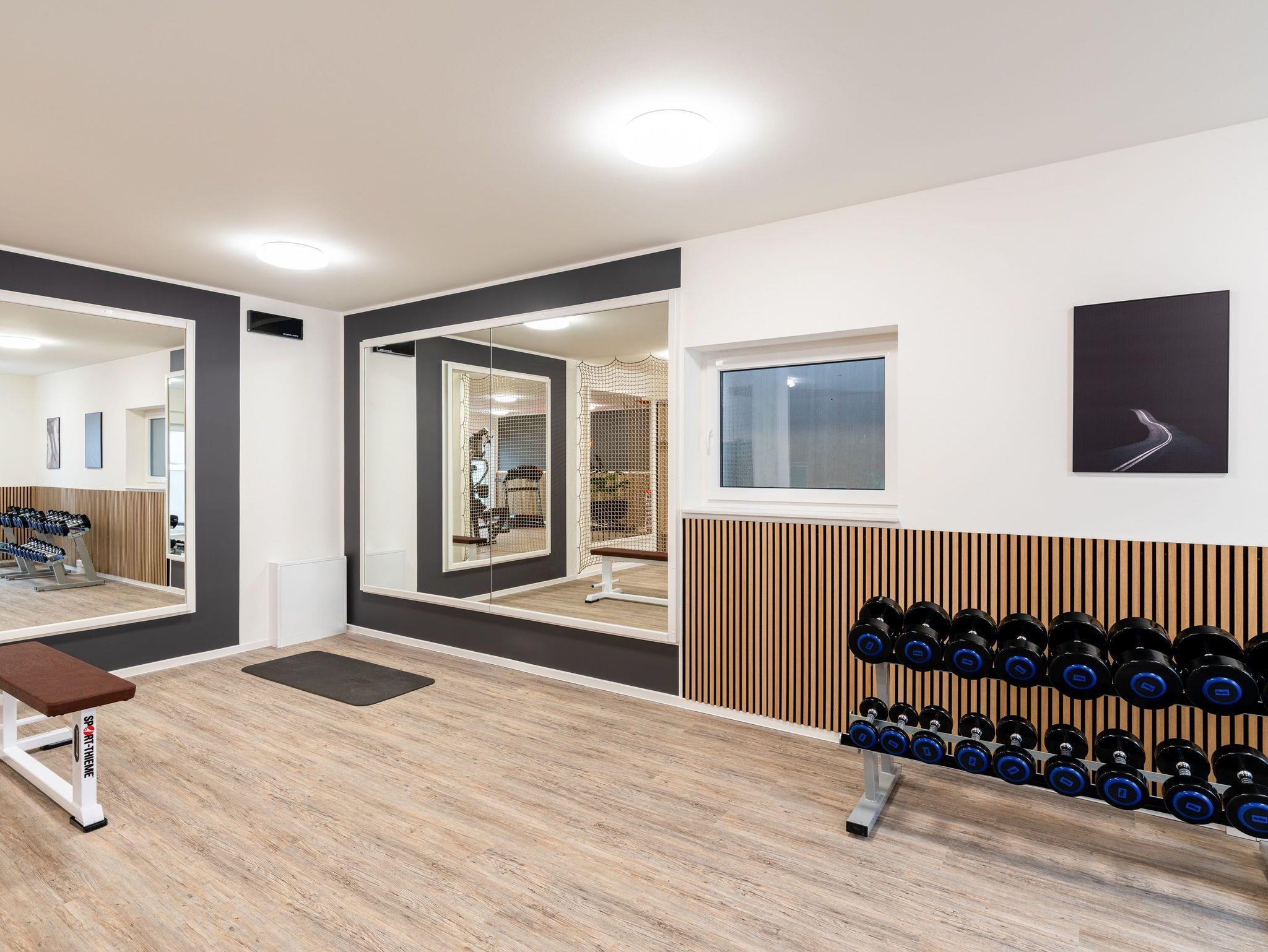 Die aktiven Urlauberinnen und Urlauber kommen in dem großzügigen, lichtdurchfluteten Fitnessraum auf ihre Kosten, wo das Angebot an hochwertigen Marken-Sportgeräten u. a. mit verschiedenen Cardiogeräten, einer Multifunktions-Kraftstation und Hantelbänken ein individuelles Training ermöglicht.