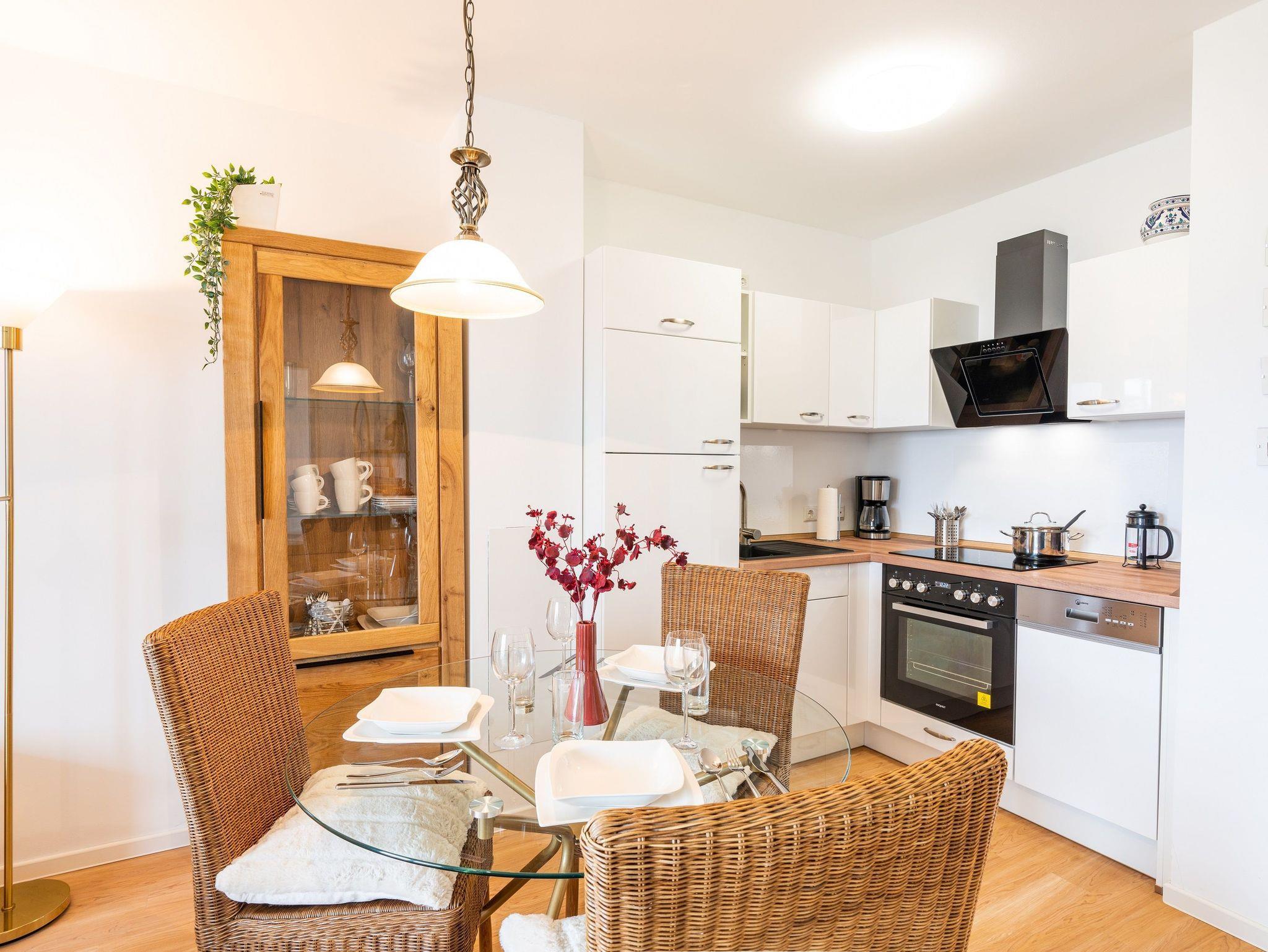 Dieses großzügige Ferienapartment befindet sich in der ersten Etage (Aufzug vorhanden) des im Jahre 2022 erbauten Gebäudes Nummer 5 und weist viele behindertenfreundliche Merkmale auf.