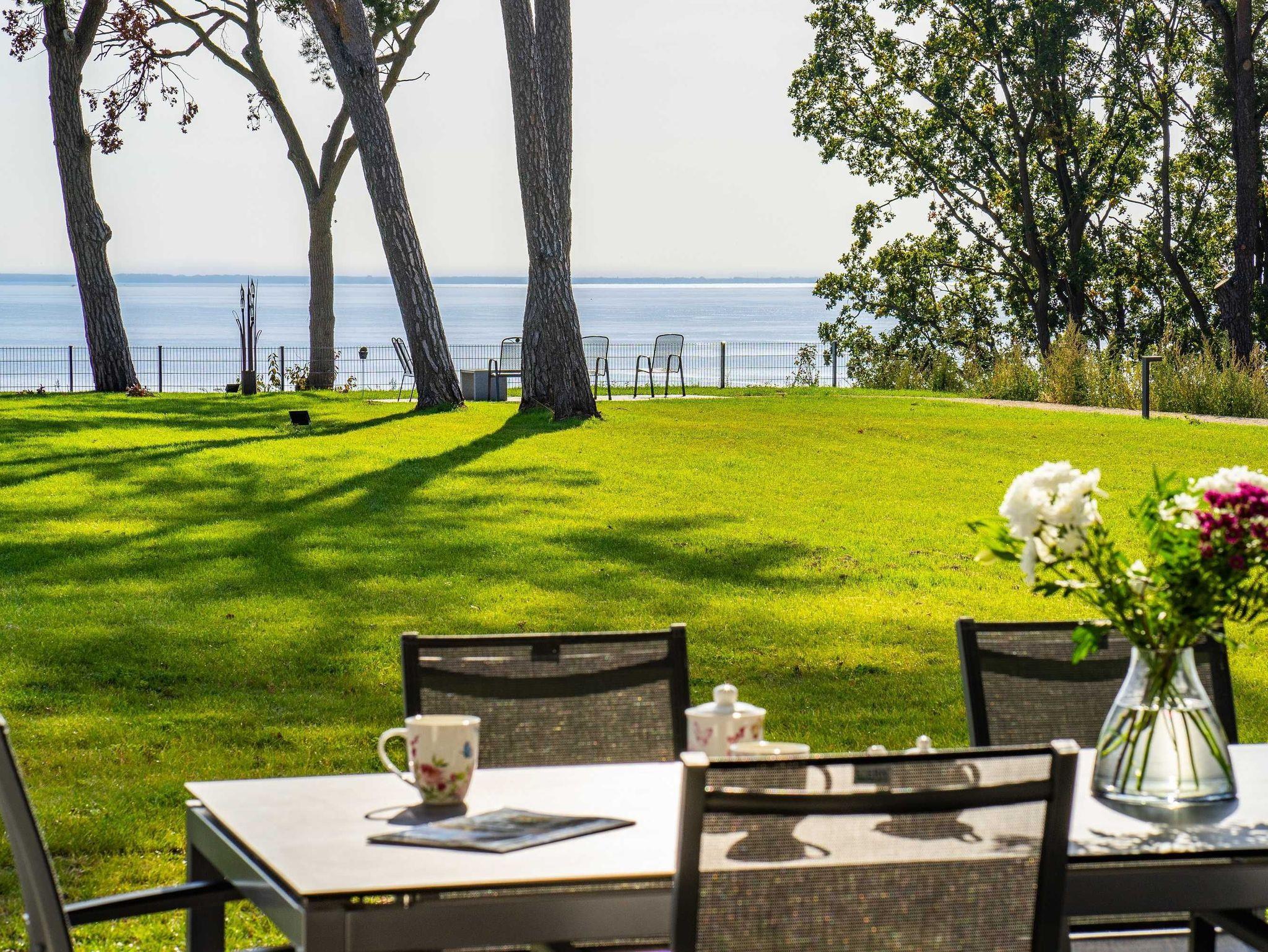 Unsere sieben Ferienhäuser sind auf die Haffküste ausgerichtet. Sie stehen auf einer weitflächigen Außenanlage, umgeben von ebenen Rasenflächen und angelegten Gehwegen, zueinander. Unsere Anlage erstreckt sich bis direkt an die Steilküste, an der einzelne Sitzgruppen mit einem endlosen Blick über das Haff zum Entspannen einladen.