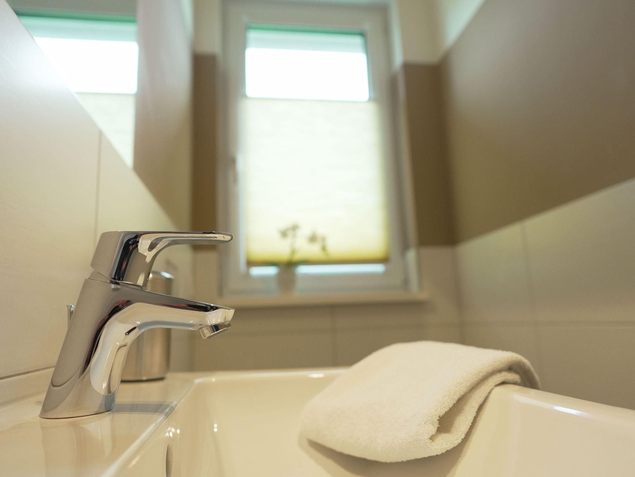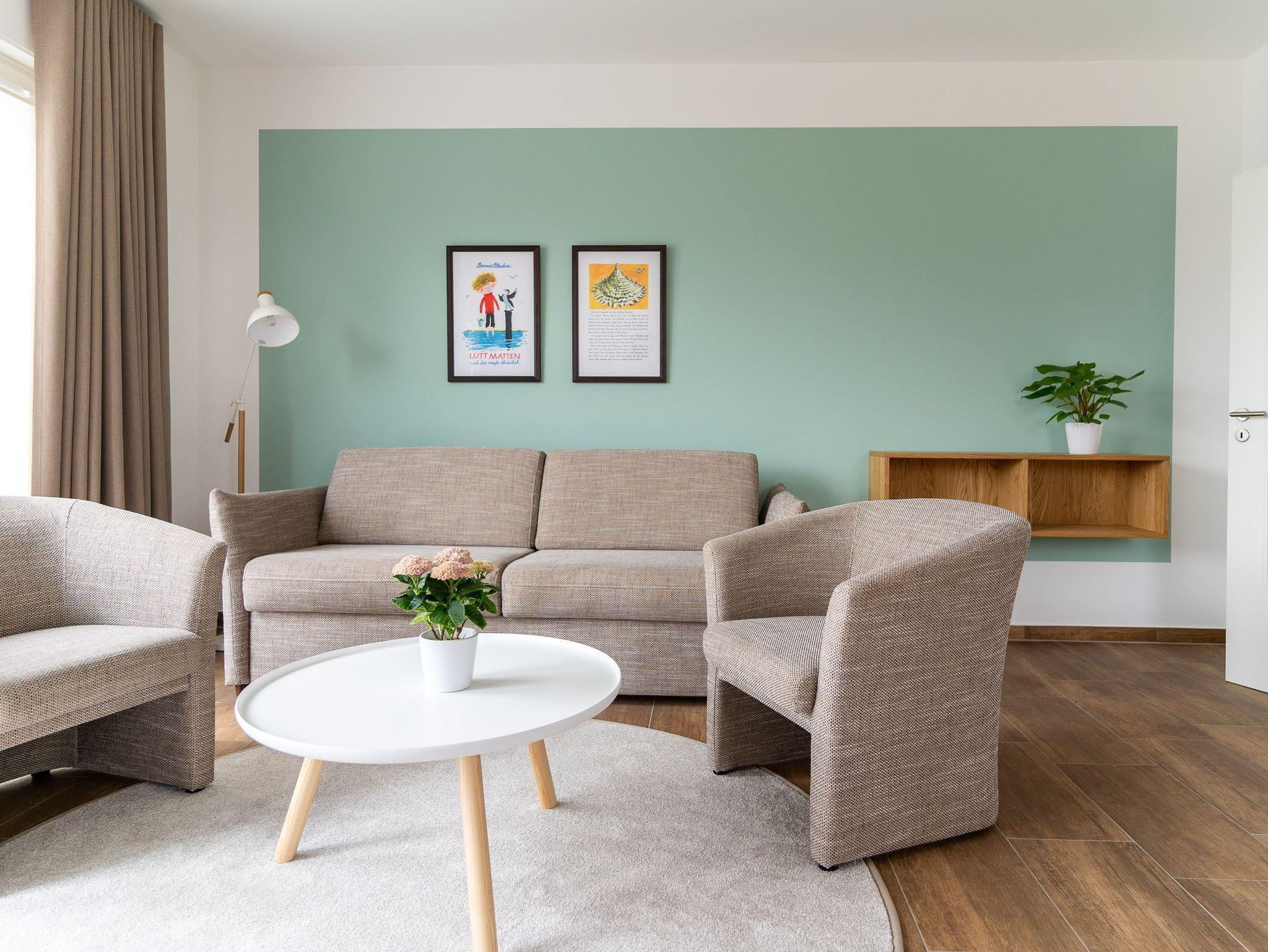 Unsere Ferienwohnung ist großzügig geschnitten und für bis zu 6 Personen geeignet, Erdgeschoß, 87 qm, 2 Schlafzimmer zzgl. Schlafcoach im Wohnzimmer, 1 Terrasse, 2 Bäder, Küche
