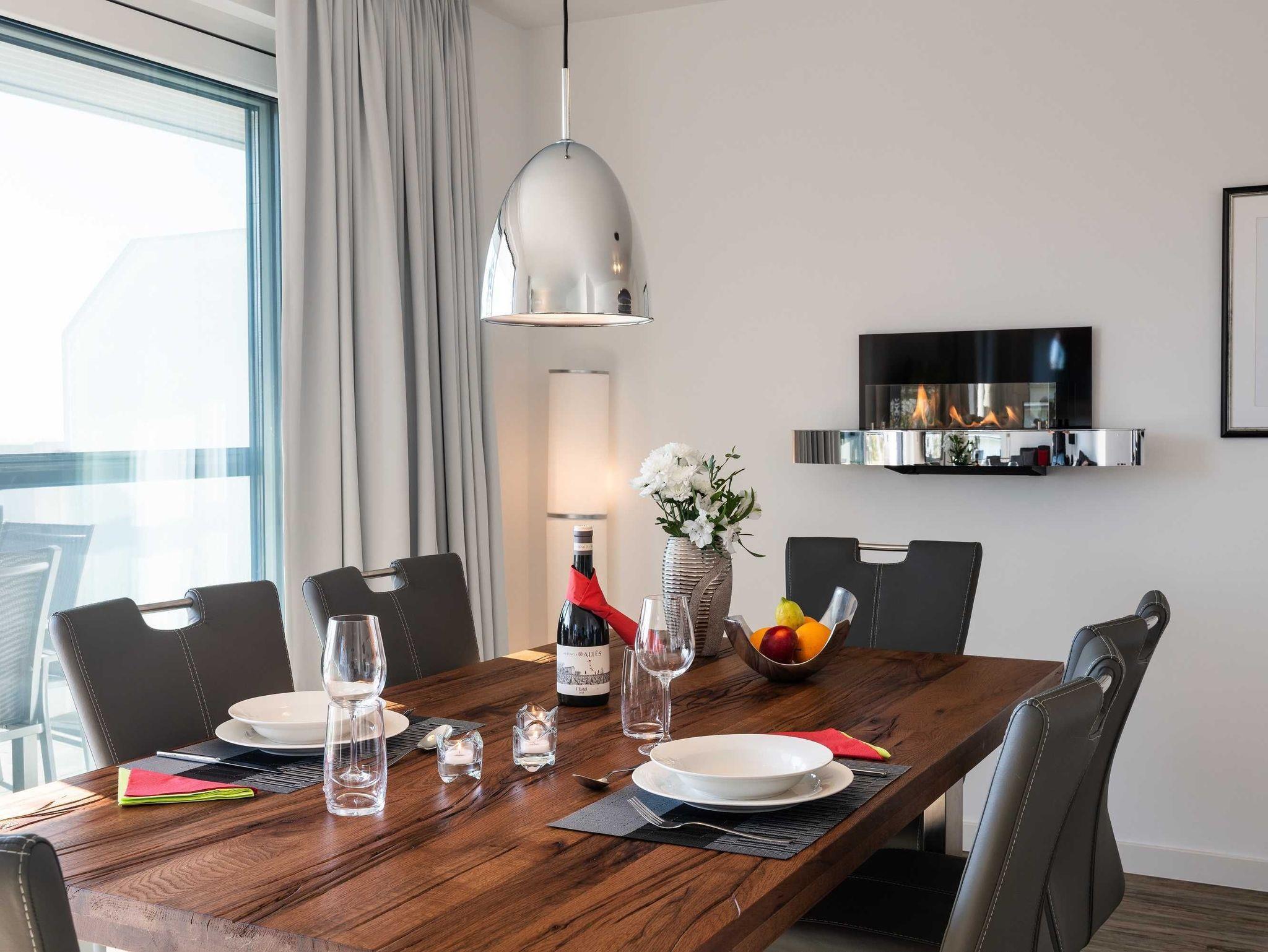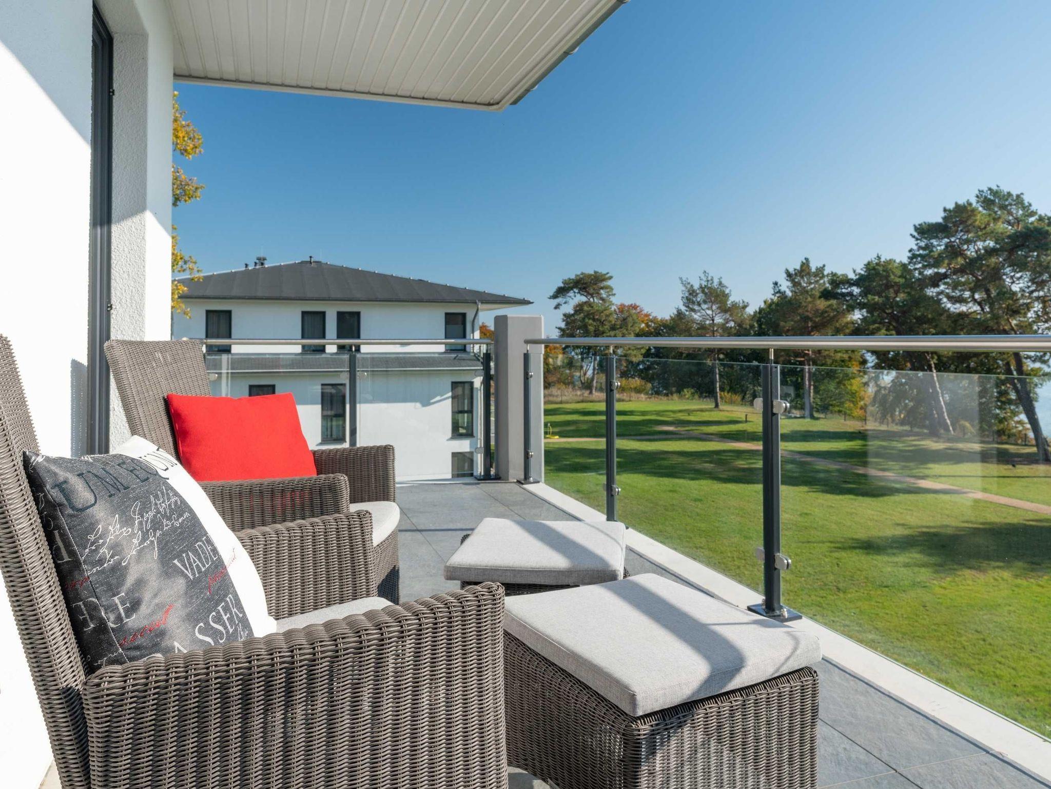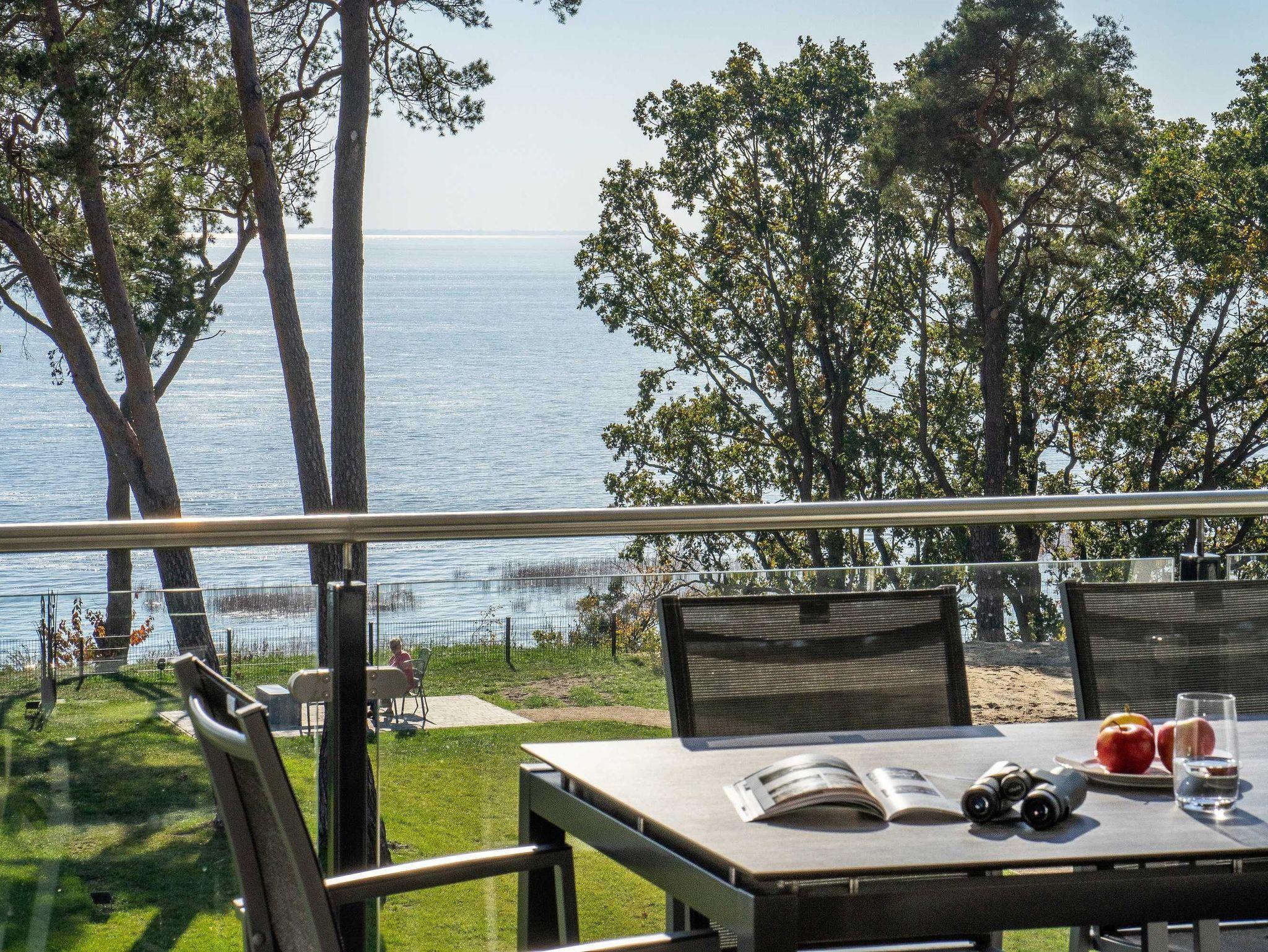 Schöne Ferienappartements, hochwertig ausgestattet im modernen Einrichtungsstil mit Terrassen auf ganzer Appartementbreite, bieten einen wunderschönen Blick auf das direkt vor uns gelegene Stettiner Haff. Erleben Sie die Sonne über dem Wasser vom Aufgehen bis zum Untergehen. Die funkelnden Wassersterne werden Sie entzücken.