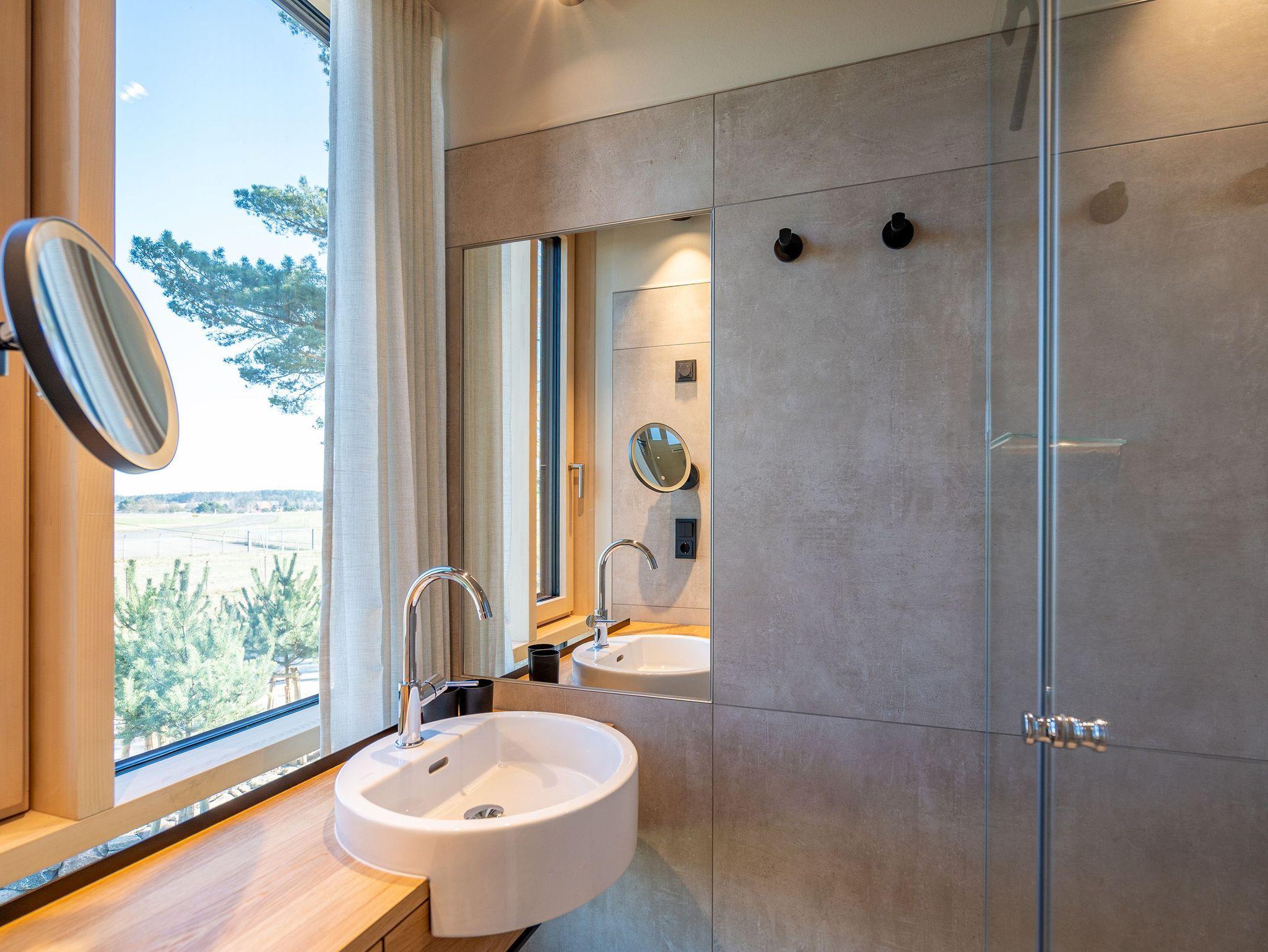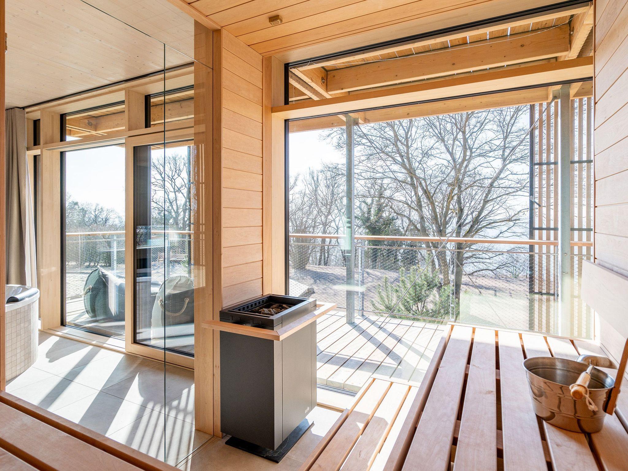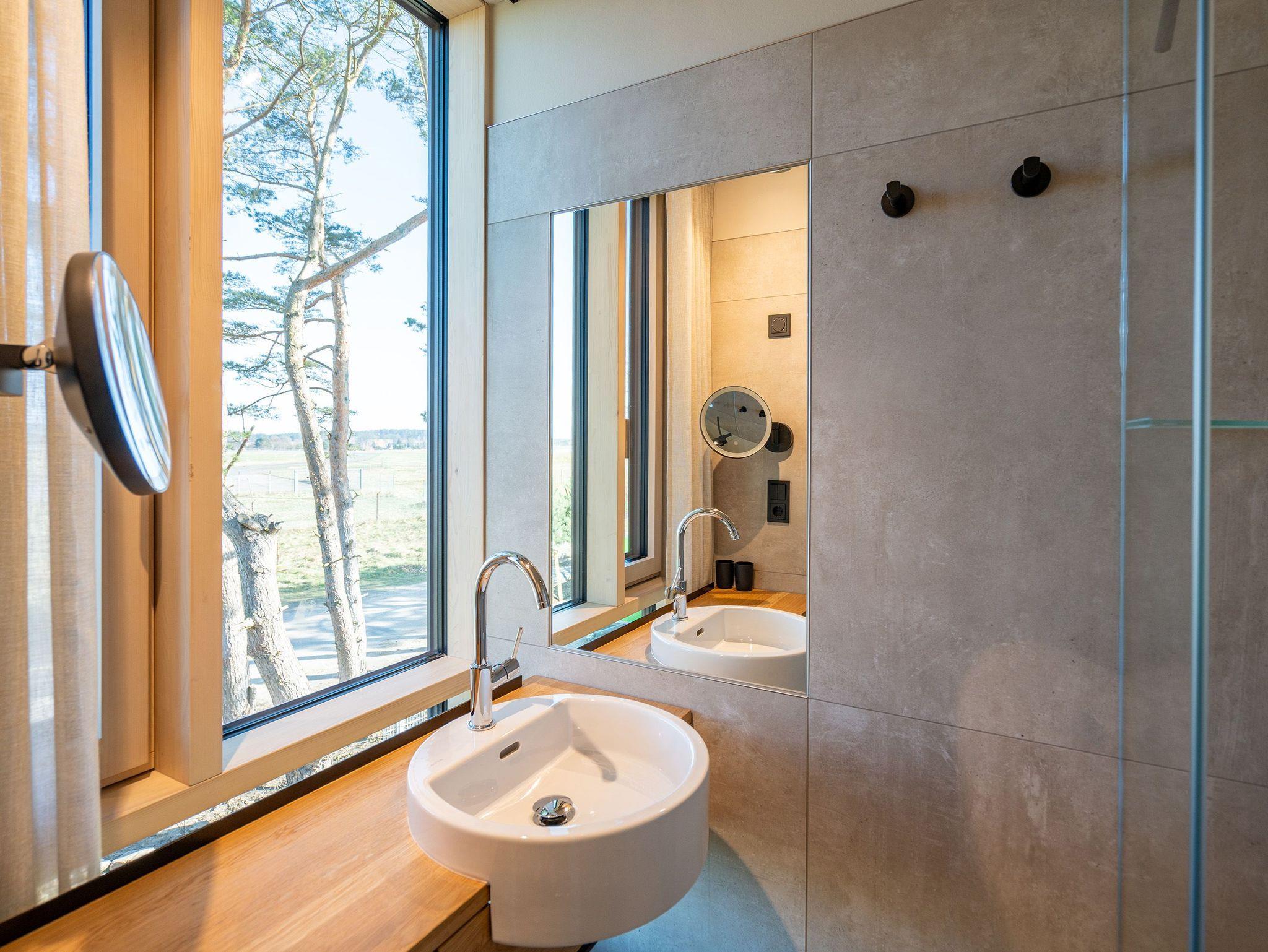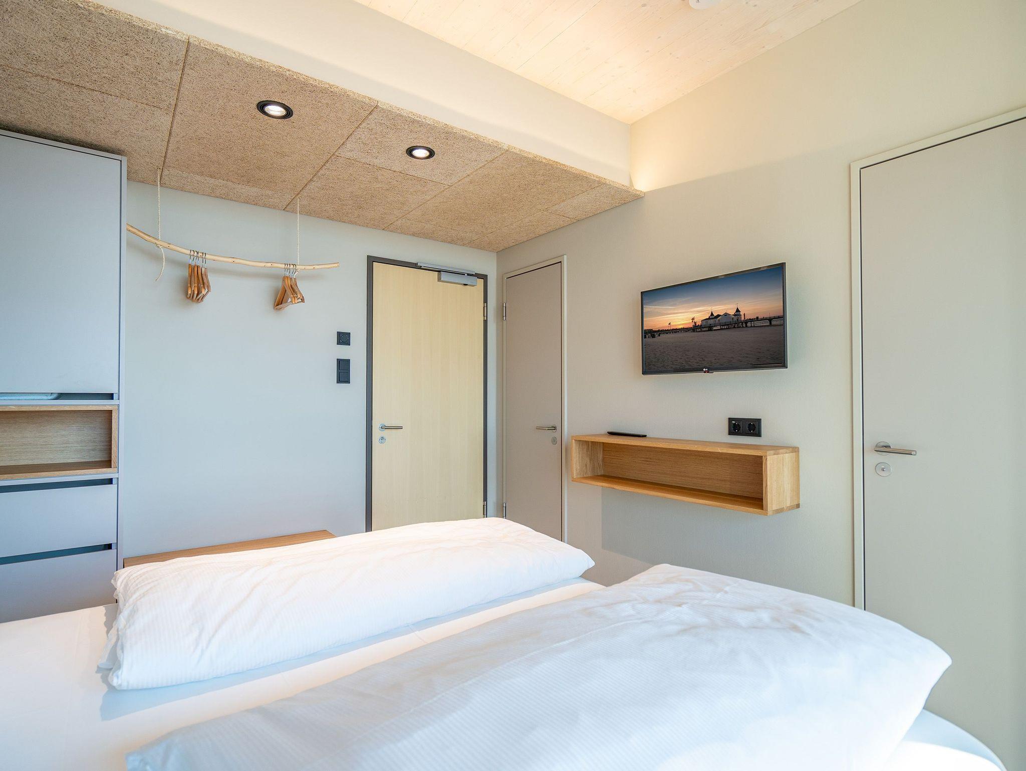 In dem 300 Quadratmeter großen Seminar- und Gästehaus mit großzügiger Außenanlage können bis zu 16 Personen nebst einem Kleinkind im Kinderreisebett beim Arbeiten oder Feiern, gemeinsam die Zeit genießen. In dieser besonderen Location kommen Bewohner nicht nur runter, sondern auf schöpferische Ideen voller Rhythm and Blues. Denn in der modernen Architektur des Hauses aus Stahl, Beton und Holz stecken jede Menge Reminiszenzen an die großen Künstler des Rock?n? Roll. Die Liebe zum musikalischen Detail steckt in vielen Kleinigkeiten. Wer mit offenen Augen durchs Haus schlendert, wird garantiert inspiriert. Legen Sie doch eine Platte auf dem Plattenspieler auf und träumen Sie sich in die Klänge großartiger Songs.Ein großer und offener Wohnbereich im Erdgeschoss ist perfekt dafür gemacht, Produktivität und Freizeit miteinander zu verbinden. Auch für große Familientreffen ist die Küstenkiste bestens geeignet. Im loftähnlichen Gemeinschaftsbereich lässt es sich wunderbar feiern, essen, gemeinsam kochen oder einfach nur zusammensitzen und das Leben genießen. Der Wohnbereich mit Ledersofas, Kamin und Klavier, der Essbereich mit riesiger Holztafel, die sich auch bestens zum Brainstormen, Diskutieren und Pläneschmieden eignet, und die supermoderne Küche sorgen für ein Gefühl von Freiheit und Nähe, von Unbeschwertheit und dem Fokus auf das Wesentliche. Auch im Innenhof und auf der Sonnenterrasse mit Grill laden zwei große Tafeln zum gemeinsamen Essen und Entspannen ein. Die Küche ist mit allem ausgestattet, was man sich für das Kochen in Gesellschaft nur wünschen kann. Sie verfügt über einen 6-Platten-Induktionsherd, einen Backofen sowie eine Mikrowelle-Backofen-Kombination. Auch mit 16 Mitbewohnern ist der Abwasch kein Problem. Denn den übernehmen zwei große Geschirrspüler. In den Schränken und in einem Serviceraum mit Waschmaschine, Trockner und zusätzlichem Kühl- und Gefrierschrank findet sich viel Stauraum für alle brauchbaren Utensilien, die dank Beschriftung, leicht zu finden sind. Die Gäste wohnen in acht Studios ? zwei im Erdgeschoss, sechs im 1. Obergeschoss ? mit Doppelbett, Kleiderschrank, Flat-TV, eigenem Tageslicht-Duschbad und separatem WC. Drei der Schlafzimmer verfügen über einen Zugang zum Balkon mit Haffblick. Aber auch alle anderen Zimmer haben aus dem Bett einen Blick ins Grüne. Jedes Zimmer ist einem anderen Musikgenie gewidmet. Entscheiden Sie selbst, ob Sie sich und ihre Träume lieber von Janis Joplin, Joni Mitchel oder von Bob Dylan beflügeln lassen wollen. Im Obergeschoss gibt es einen weiteren Loungebereich mit Flat-TV und Zugang zum Balkon. In einem Fitnessraum kann man sich an den hochwertigen Geräten der Firma Nohrd wunderbar auspowern, um anschließend in der Sauna oder im Whirlpool, die Energieakkus wieder aufzuladen. Doch das eigentliche Highlight des Anwesens ist der weitläufige Garten mit Beachvolleyballfeld auf echtem Strandsand, lauschigen Eckchen zum Sitzen, einem Hot Tub und einer großen Chillterrasse mit Haffblick. Parkplätze und eine Wallbox für Elektroautos (gegen Gebühr) gibt es vor dem Haus. Tierliebe Gäste können gegen Aufpreis bis zu zwei ihrer Lieblinge mitbringen.