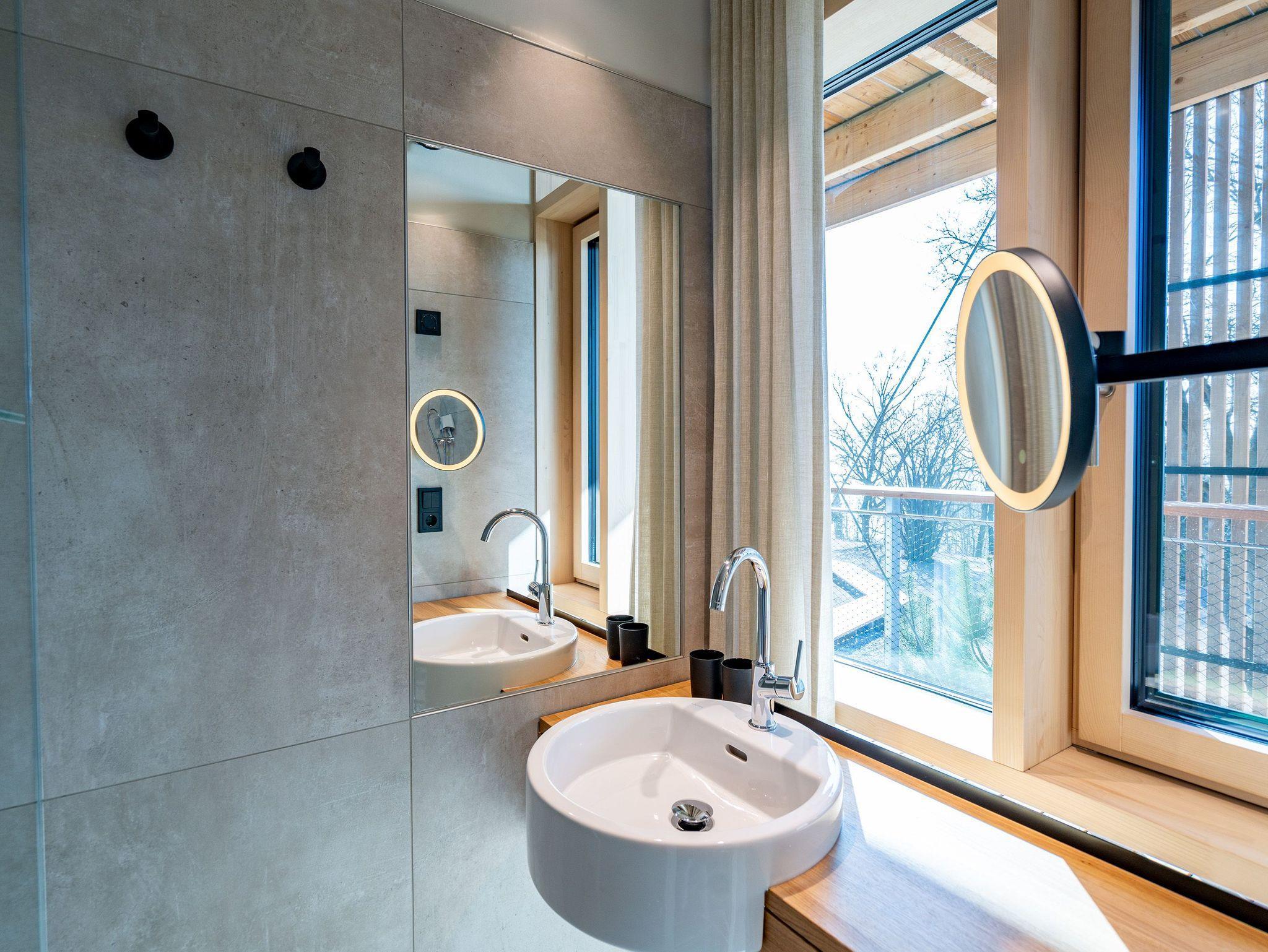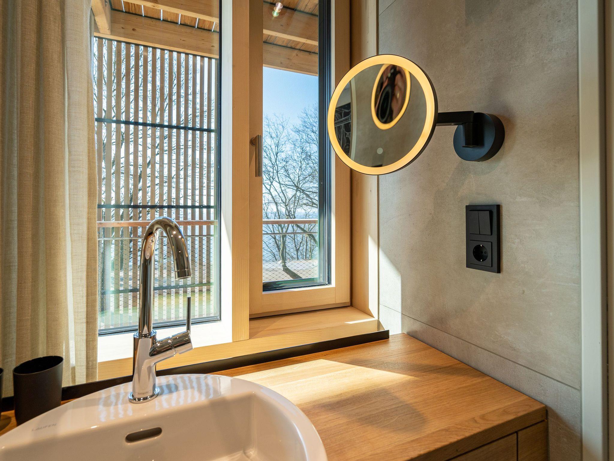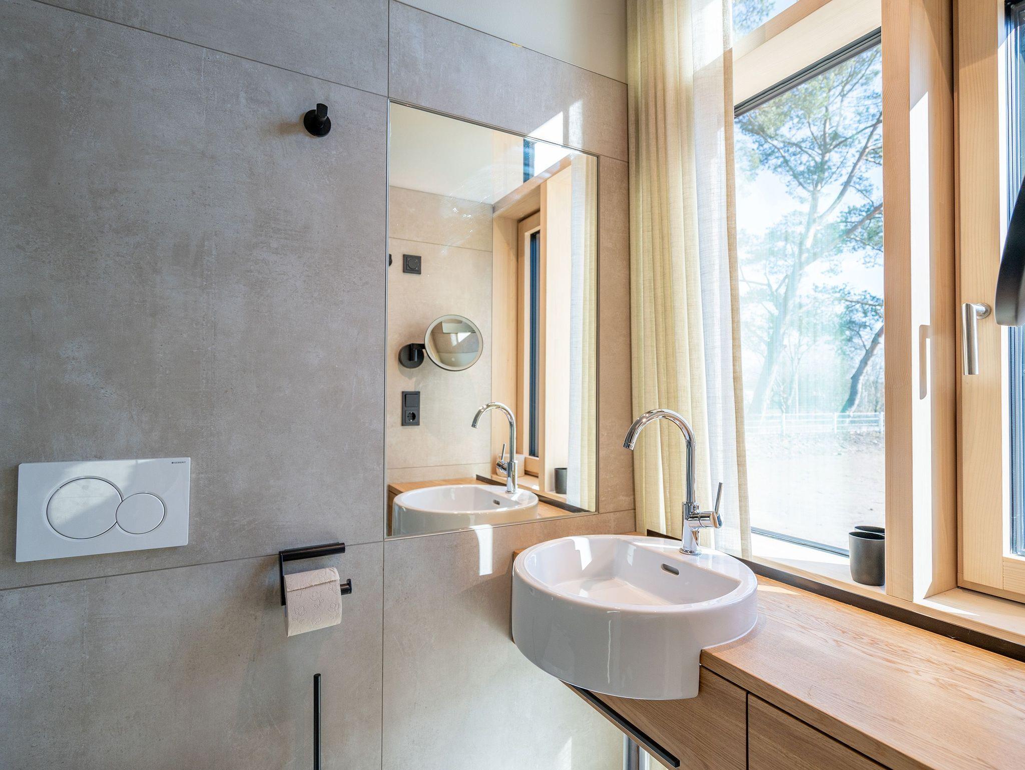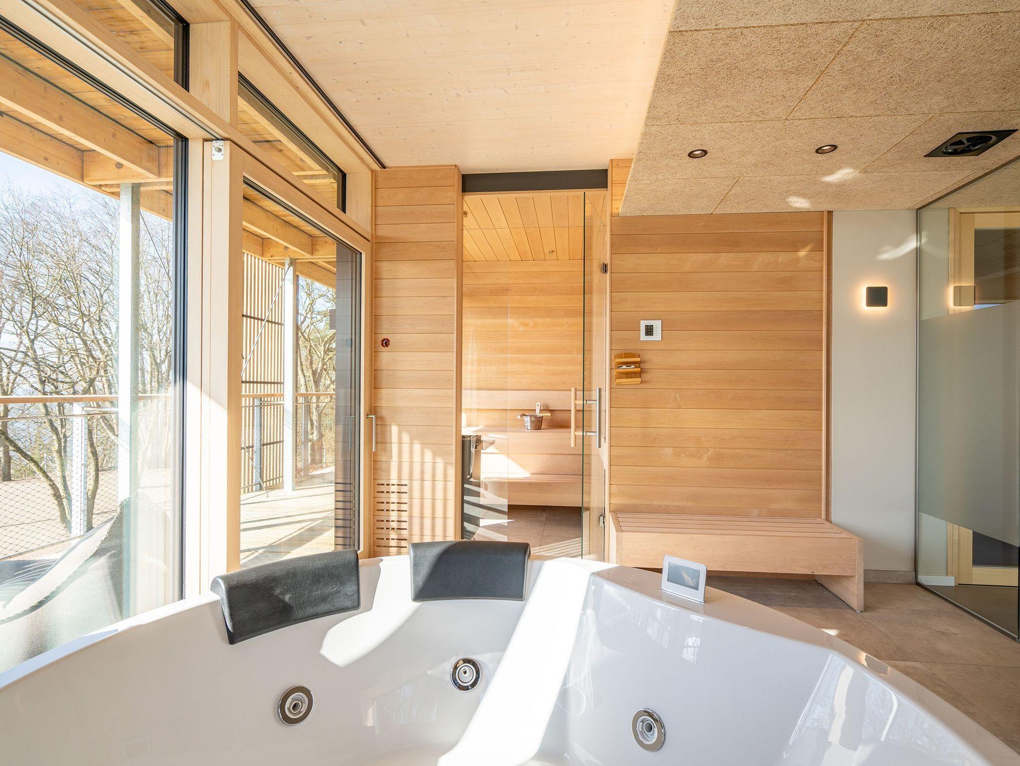 In dem 300 Quadratmeter großen Seminar- und Gästehaus mit großzügiger Außenanlage können bis zu 16 Personen nebst einem Kleinkind im Kinderreisebett beim Arbeiten oder Feiern, gemeinsam die Zeit genießen. In dieser besonderen Location kommen Bewohner nicht nur runter, sondern auf schöpferische Ideen voller Rhythm and Blues. Denn in der modernen Architektur des Hauses aus Stahl, Beton und Holz stecken jede Menge Reminiszenzen an die großen Künstler des Rock?n? Roll. Die Liebe zum musikalischen Detail steckt in vielen Kleinigkeiten. Wer mit offenen Augen durchs Haus schlendert, wird garantiert inspiriert. Legen Sie doch eine Platte auf dem Plattenspieler auf und träumen Sie sich in die Klänge großartiger Songs.Ein großer und offener Wohnbereich im Erdgeschoss ist perfekt dafür gemacht, Produktivität und Freizeit miteinander zu verbinden. Auch für große Familientreffen ist die Küstenkiste bestens geeignet. Im loftähnlichen Gemeinschaftsbereich lässt es sich wunderbar feiern, essen, gemeinsam kochen oder einfach nur zusammensitzen und das Leben genießen. Der Wohnbereich mit Ledersofas, Kamin und Klavier, der Essbereich mit riesiger Holztafel, die sich auch bestens zum Brainstormen, Diskutieren und Pläneschmieden eignet, und die supermoderne Küche sorgen für ein Gefühl von Freiheit und Nähe, von Unbeschwertheit und dem Fokus auf das Wesentliche. Auch im Innenhof und auf der Sonnenterrasse mit Grill laden zwei große Tafeln zum gemeinsamen Essen und Entspannen ein. Die Küche ist mit allem ausgestattet, was man sich für das Kochen in Gesellschaft nur wünschen kann. Sie verfügt über einen 6-Platten-Induktionsherd, einen Backofen sowie eine Mikrowelle-Backofen-Kombination. Auch mit 16 Mitbewohnern ist der Abwasch kein Problem. Denn den übernehmen zwei große Geschirrspüler. In den Schränken und in einem Serviceraum mit Waschmaschine, Trockner und zusätzlichem Kühl- und Gefrierschrank findet sich viel Stauraum für alle brauchbaren Utensilien, die dank Beschriftung, leicht zu finden sind. Die Gäste wohnen in acht Studios ? zwei im Erdgeschoss, sechs im 1. Obergeschoss ? mit Doppelbett, Kleiderschrank, Flat-TV, eigenem Tageslicht-Duschbad und separatem WC. Drei der Schlafzimmer verfügen über einen Zugang zum Balkon mit Haffblick. Aber auch alle anderen Zimmer haben aus dem Bett einen Blick ins Grüne. Jedes Zimmer ist einem anderen Musikgenie gewidmet. Entscheiden Sie selbst, ob Sie sich und ihre Träume lieber von Janis Joplin, Joni Mitchel oder von Bob Dylan beflügeln lassen wollen. Im Obergeschoss gibt es einen weiteren Loungebereich mit Flat-TV und Zugang zum Balkon. In einem Fitnessraum kann man sich an den hochwertigen Geräten der Firma Nohrd wunderbar auspowern, um anschließend in der Sauna oder im Whirlpool, die Energieakkus wieder aufzuladen. Doch das eigentliche Highlight des Anwesens ist der weitläufige Garten mit Beachvolleyballfeld auf echtem Strandsand, lauschigen Eckchen zum Sitzen, einem Hot Tub und einer großen Chillterrasse mit Haffblick. Parkplätze und eine Wallbox für Elektroautos (gegen Gebühr) gibt es vor dem Haus. Tierliebe Gäste können gegen Aufpreis bis zu zwei ihrer Lieblinge mitbringen.