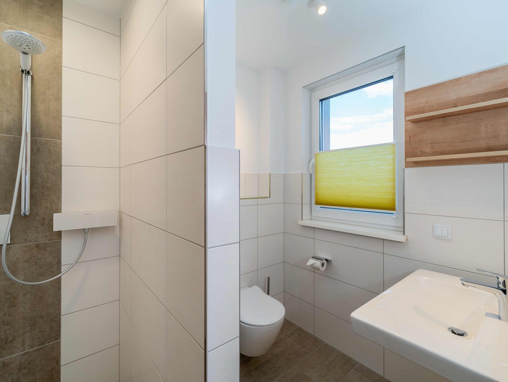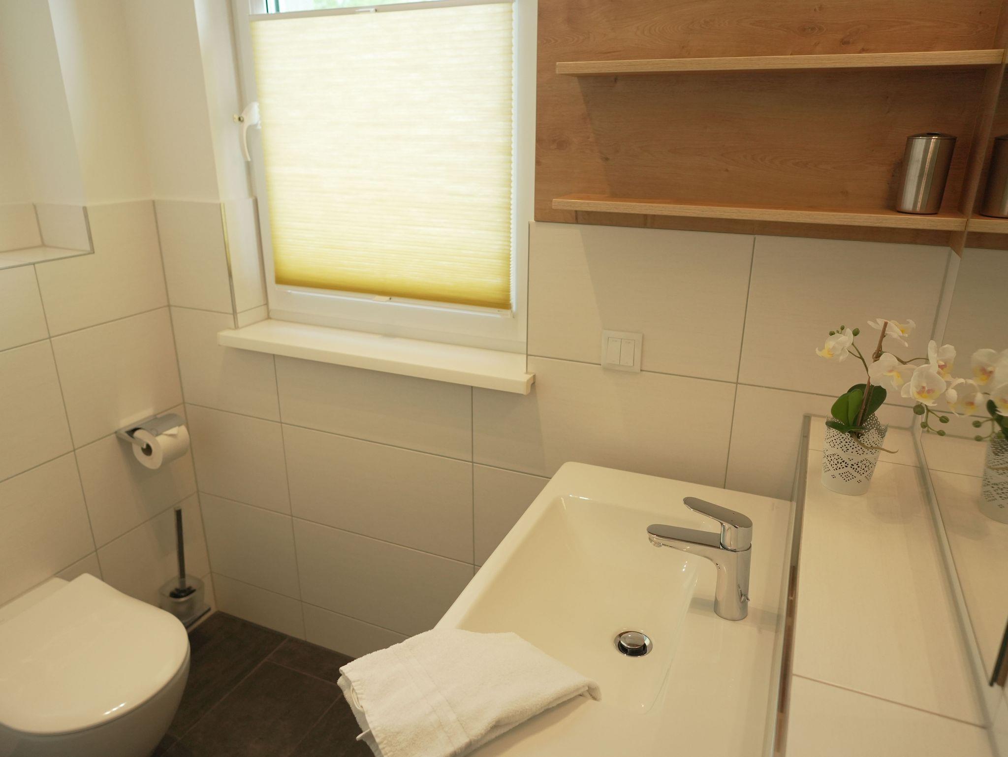 Unsere Ferienwohnung ist großzügig geschnitten und für bis zu 6 Personen geeignet, 1. OG, 83 qm, 2 Schlafzimmer zzgl. Schlafcoach im Wohnzimmer, 2 Balkone, 2 Bäder, Küche