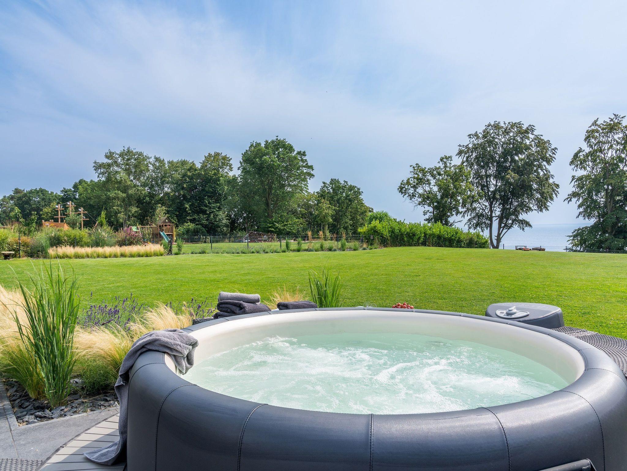 Genießen Sie den Blick auf das Haff direkt aus dem Whirlpool - ein besonderes Erlebnis in klaren Nächten, da durch die einmalige Lage inmitten der Natur ein Meer aus Sternen am Himmel zu sehen ist.