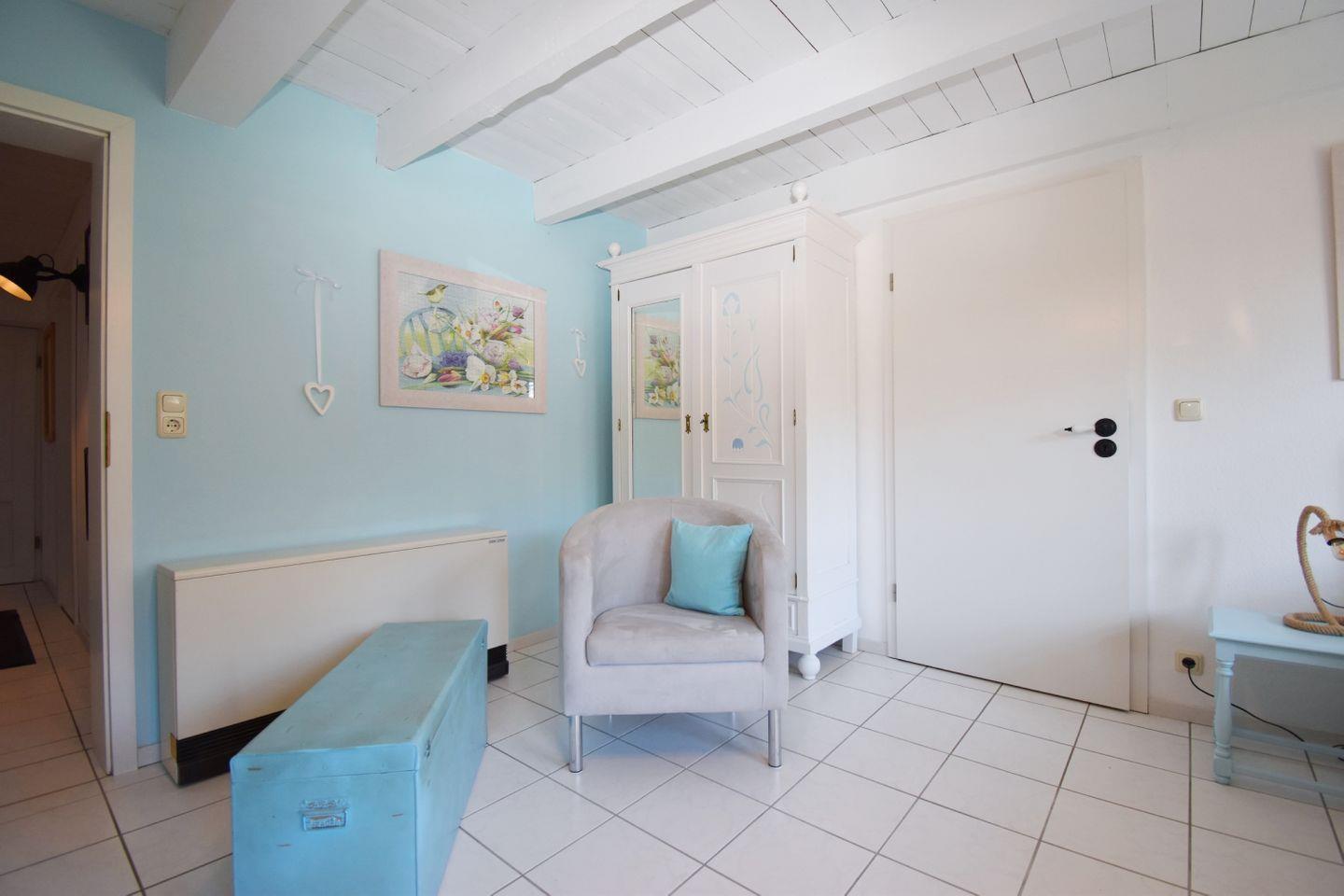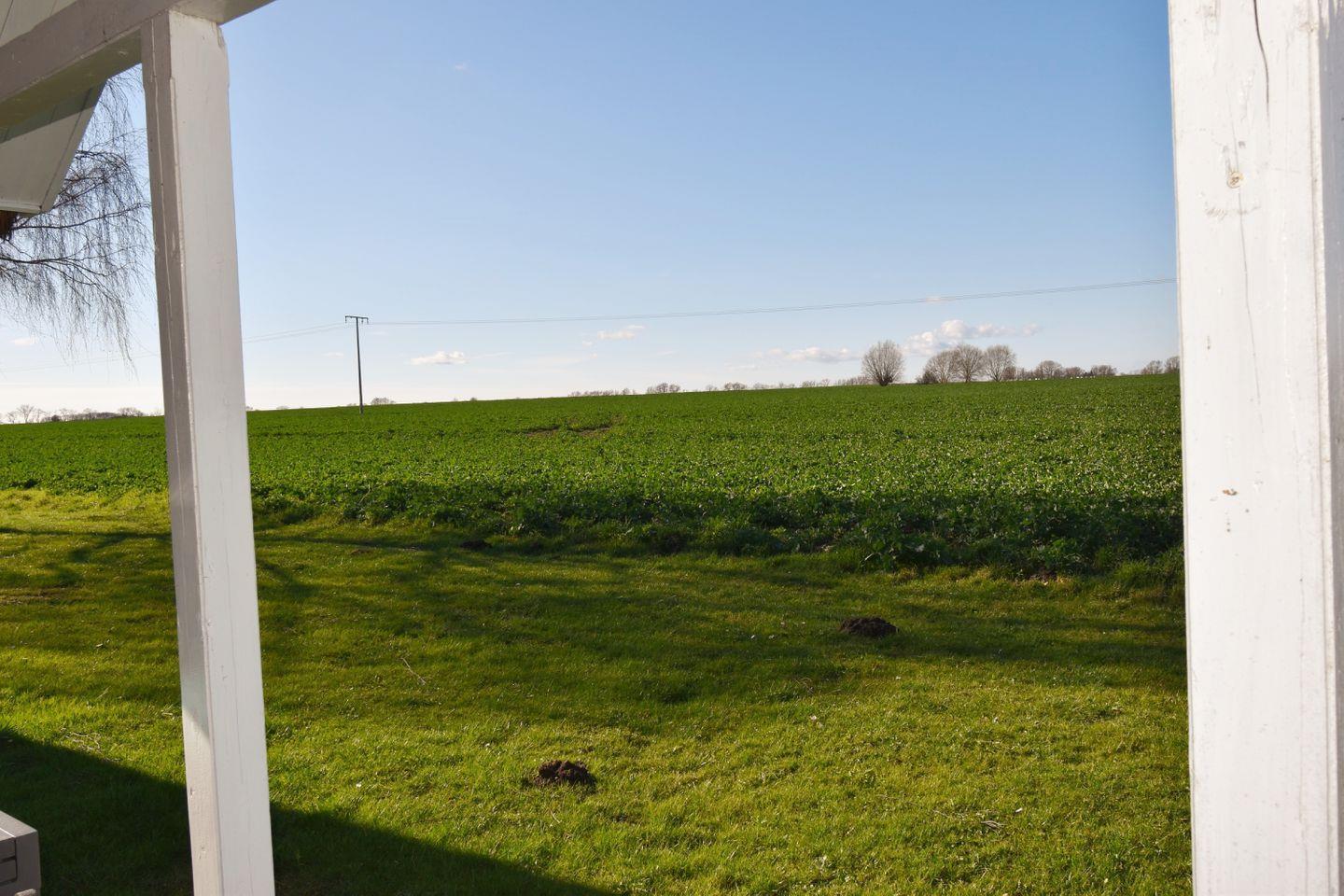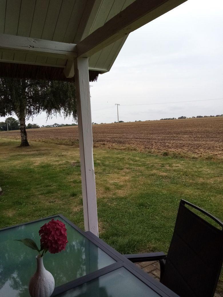 Vor dem Haus finden Sie einen Fahrradschuppen mit überdachtem Freisitz, ideal für kurze Pausen nach Radtouren oder Spaziergängen. Ein kleiner, seitlich gelegener, eingezäunter Gartenbereich kann ebenfalls genutzt werden.