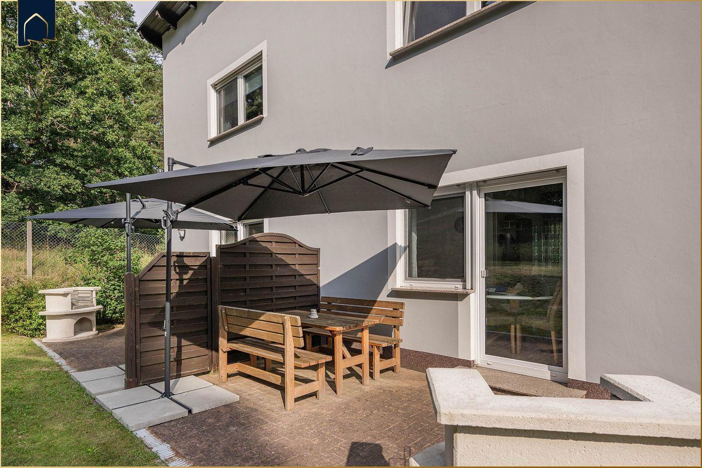 Das abgeschlossene Grundstück mit großem Garten, Terrasse, Gartenmöbeln, Sonnenschirm und Grill lädt zum Verweilen ein. Kinder können sich auf der Liegewiese oder dem kleinen Spielbereich austoben, während sich Erwachsene an der Feuerstelle oder in der privaten Sauna entspannen. Die Unterkunft ist haustierfreundlich, sodass auch Ihr Vierbeiner willkommen ist. Fliegengitter an den Fenstern und Sichtschutz sorgen zusätzlich für Komfort. Ein privater Carport steht für Ihr Auto zur Verfügung, sodass Sie auch abgelegene Ausflugsziele bequem erreichen können.