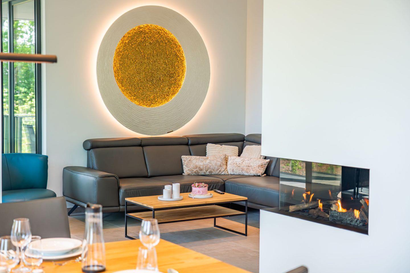 Der offene Wohn-Ess-Bereich erhält durch den gekonnten Mix aus Eleganz und Industrial Design echten Loft-Charakter. Der Gaskamin, der von allen Seiten einsehbar ist, unterstreicht dies. Über eine Fernbedienung ist dieser ganz einfach zu bedienen und sorgt für gemütliche Stunden – besonders in den Herbst- und Wintermonaten.