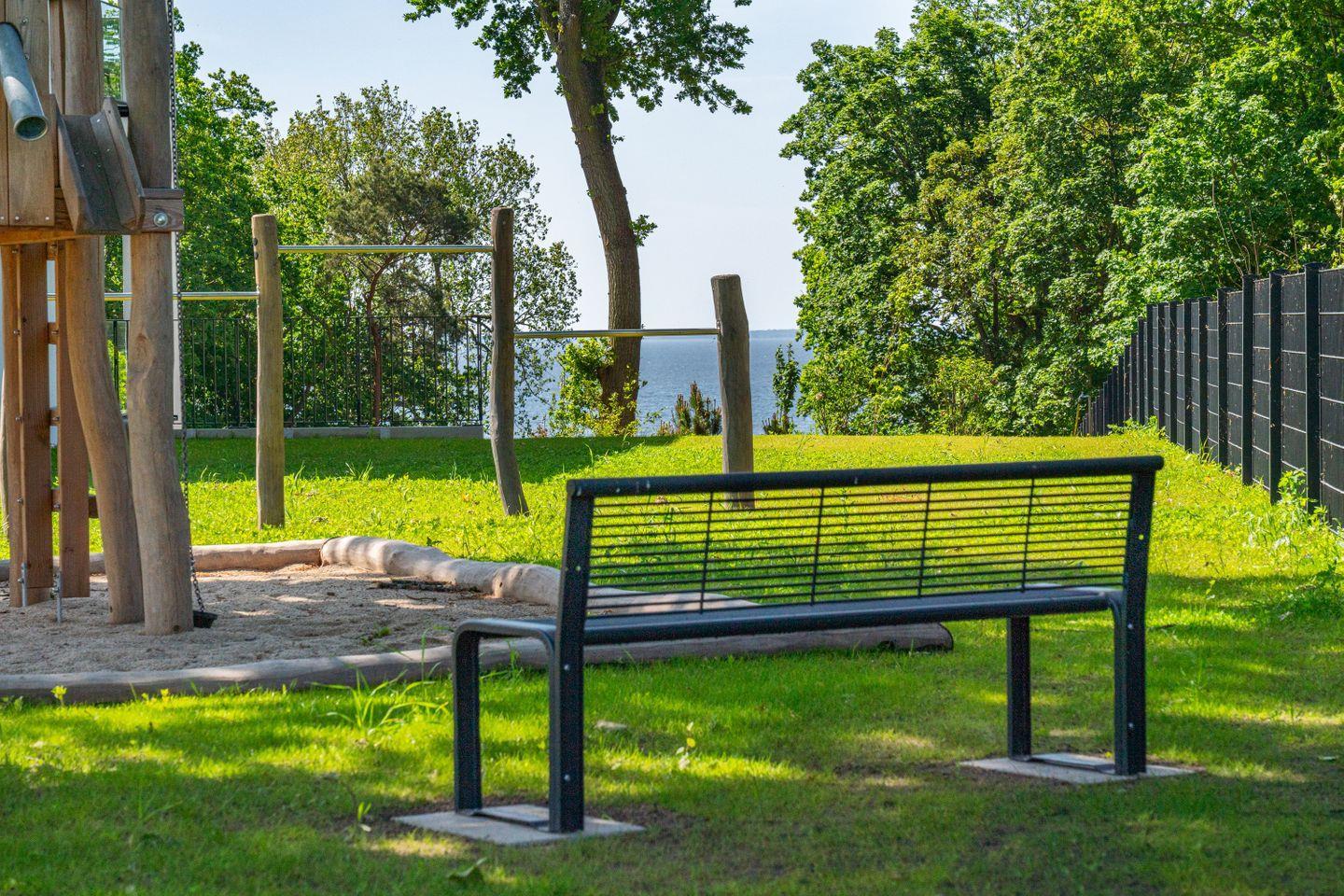 Freuen Sie sich auf Ihren privaten Meerblick auf das Stettiner Haff von der 28 m² großen, überdachten Terrasse, die schnell Ihr Lieblingsplatz wird. Ein Heizstrahler und eine dezente Seitenmarkise sorgen für das inseltypische Strandkorb-Feeling. Ein großer Esstisch mit sechs Stühlen lädt zu gemeinsamen Mahlzeiten ein, während die gemütliche Sitzgruppe mit zwei verstellbaren Relaxsesseln samt Fußhockern und Beistelltisch perfekte Plätze für entspannte Stunden bieten. Sonnenanbeterinnen und Sonnenanbeter können es sich auf den zwei bequemen Sonnenliegen gemütlich machen und ausgiebige Sonnenbäder genießen. Die Außenbereiche der vier Apartments liegen so weit auseinander, dass durch eine belegte Nachbarwohnung keinerlei Einschränkung der Privatsphäre entsteht.