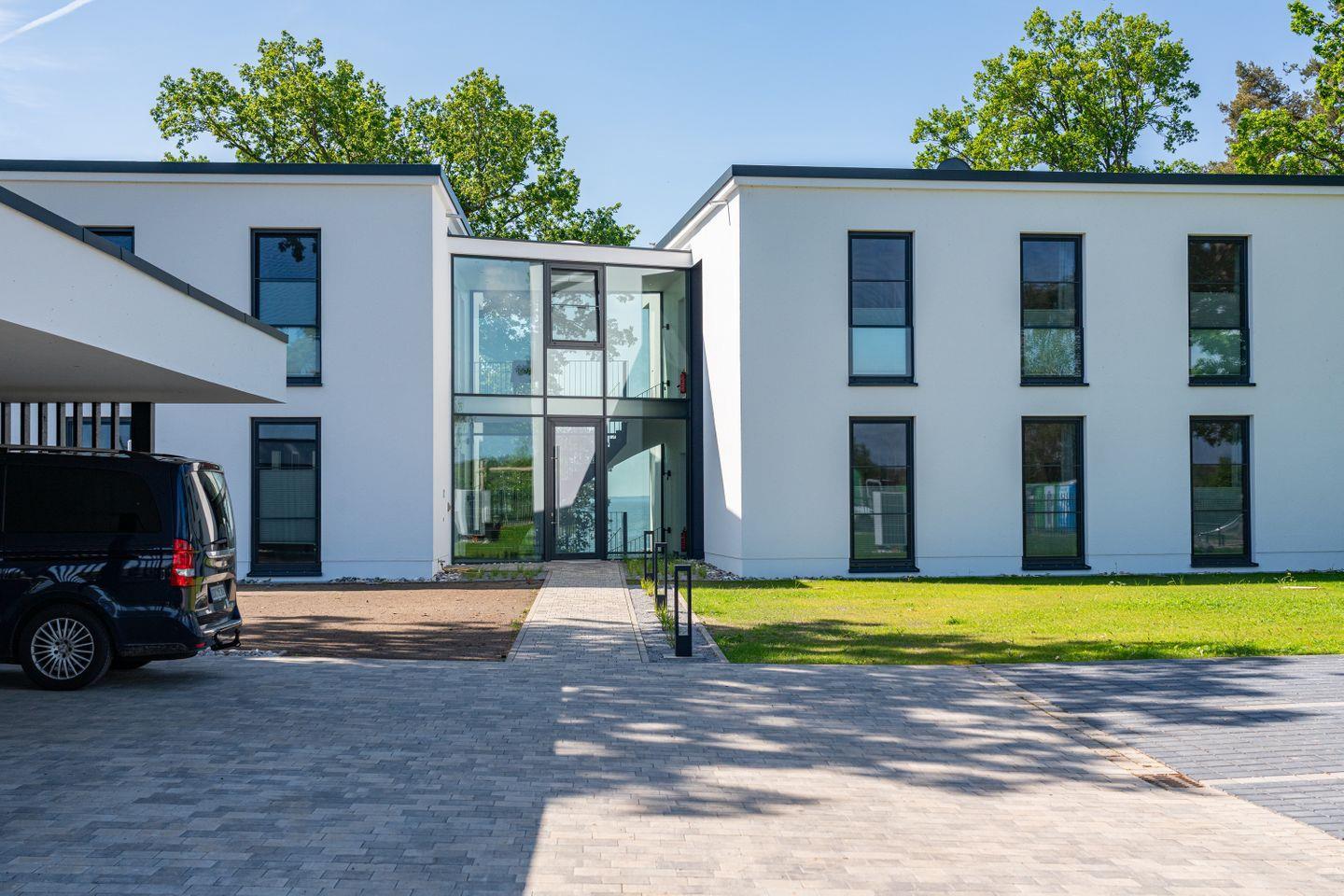 Der moderne Gebäudekomplex mit vier Ferienwohnungen liegt in traumhafter Südlage an der Steilküste des Stettiner Haffs. Gepflegte Außenanlagen und naturbelassene Ebenen ummanteln die hauseigene Haffschlucht mit traumhaftem, privaten Wasserblick.