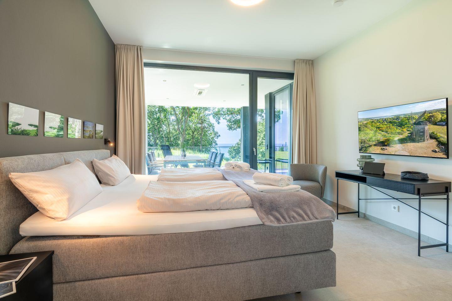Genießen Sie Erholung auf höchstem Niveau in der neu erbauten Luxus-Ferienwohnung "Freya" im "DECK9 am Haff" – einem architektonisch modernen Wohnensemble mit nur vier exklusiven Wohneinheiten, gelegen in traumhafter Südlage an der Steilküste des Stettiner Haffs auf Usedom.