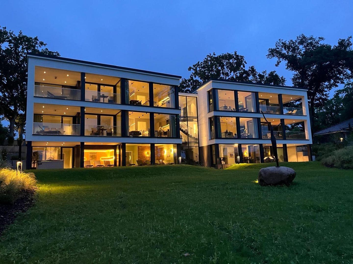 Die stilvoll eingerichtete Wohnung gehört zum "DECK9 am Haff", einem architektonisch markanten Ensemble mit nur vier Wohneinheiten – eingebettet in ein weitläufiges Naturgrundstück mit über 8.000?m² Fläche.