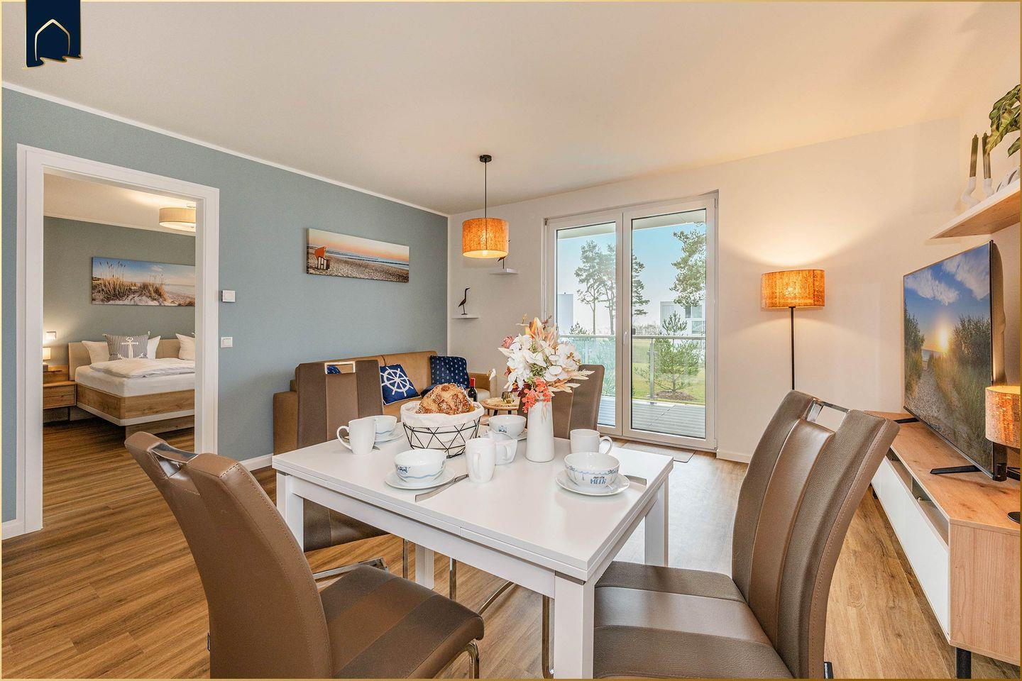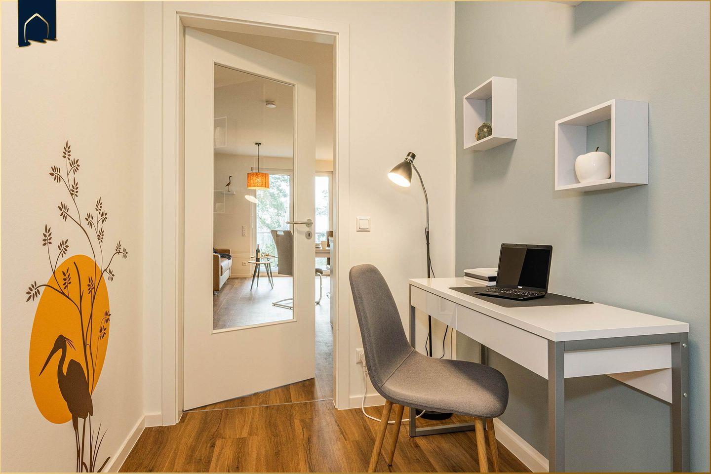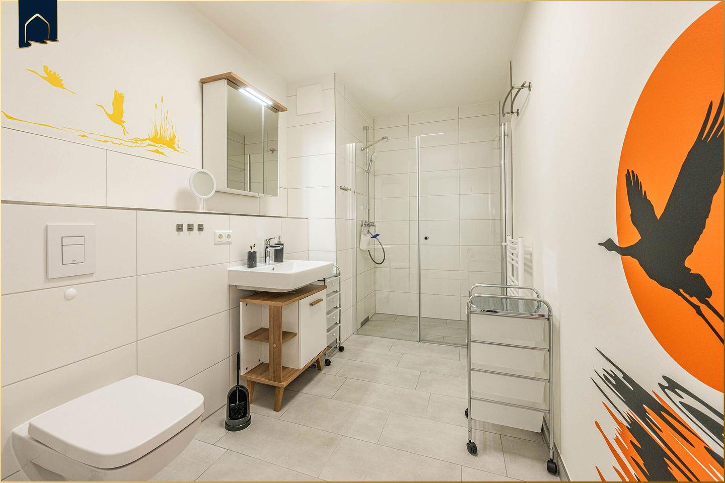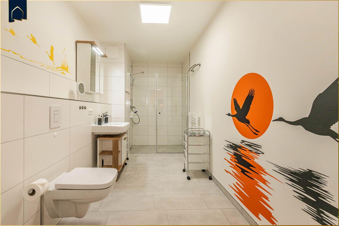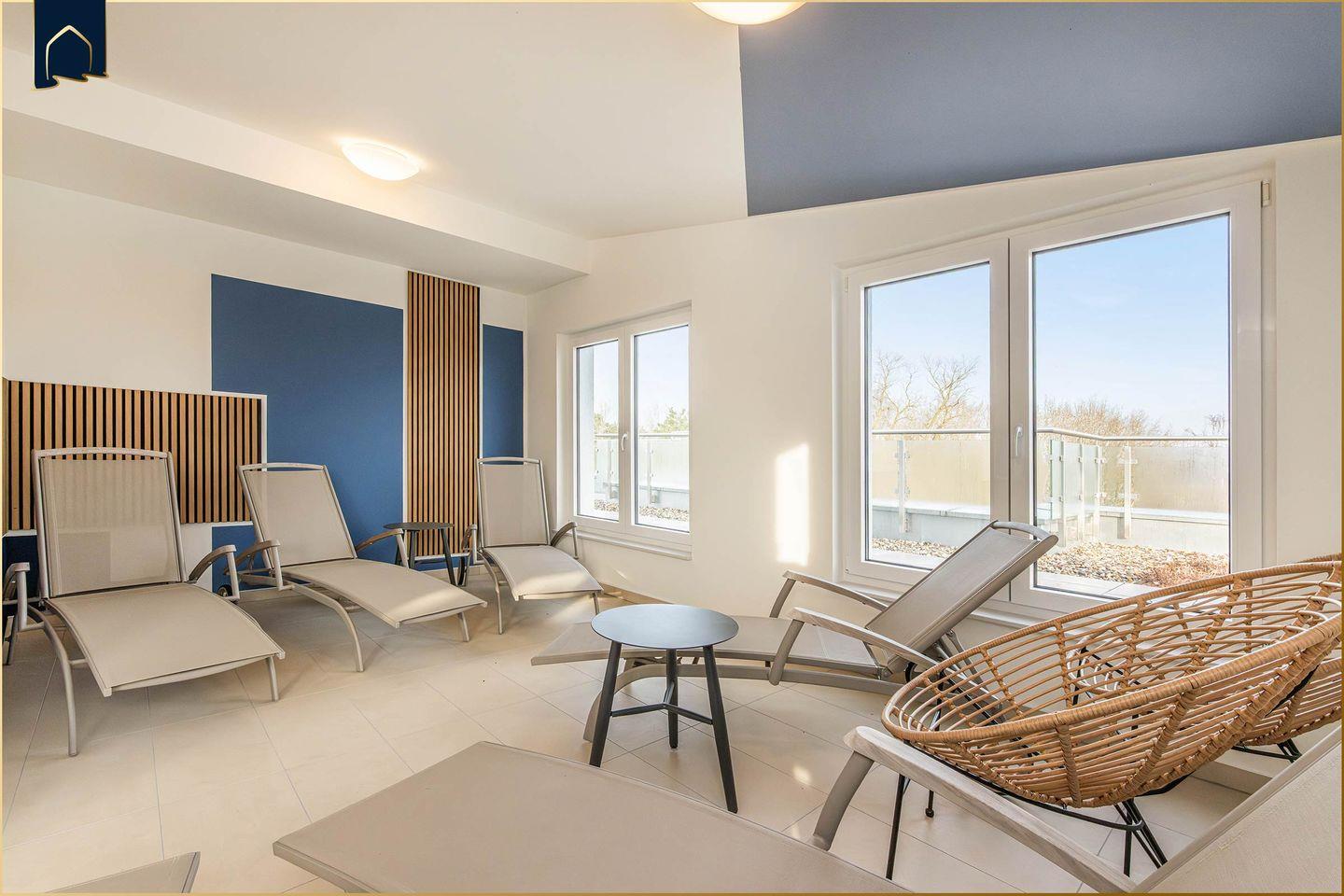 Die stilvolle Ferienwohnung Der Kranich in Zirchow auf Usedom bietet modernen Komfort, einen Balkon und viel Platz für Erholung. Highlights sind der hauseigene Sauna- & Ruhebereich im Dachgeschoss sowie der Fitness- und Freizeitraum im Keller.