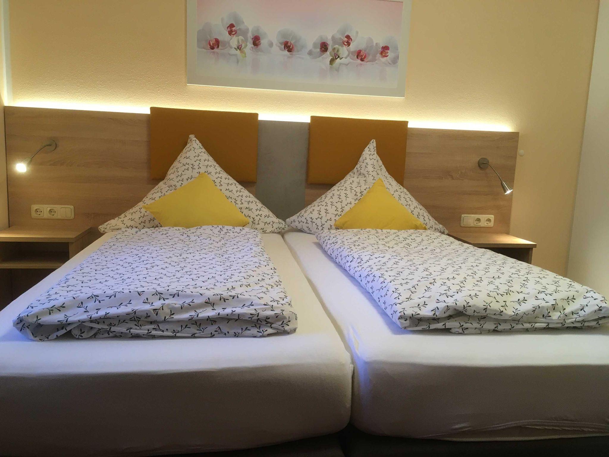 Im 1. Schlafzimmer (mit sep. Fernseher), ist ein Doppelbett (Boxspringbett), das man auch trennen kann zu 2 einzelne Betten. Das Bett hat eine indirekte Beleuchtung und 2 Leselampen. Im kleinen Einbauschrank ist Platz für Ihre Kleidung.