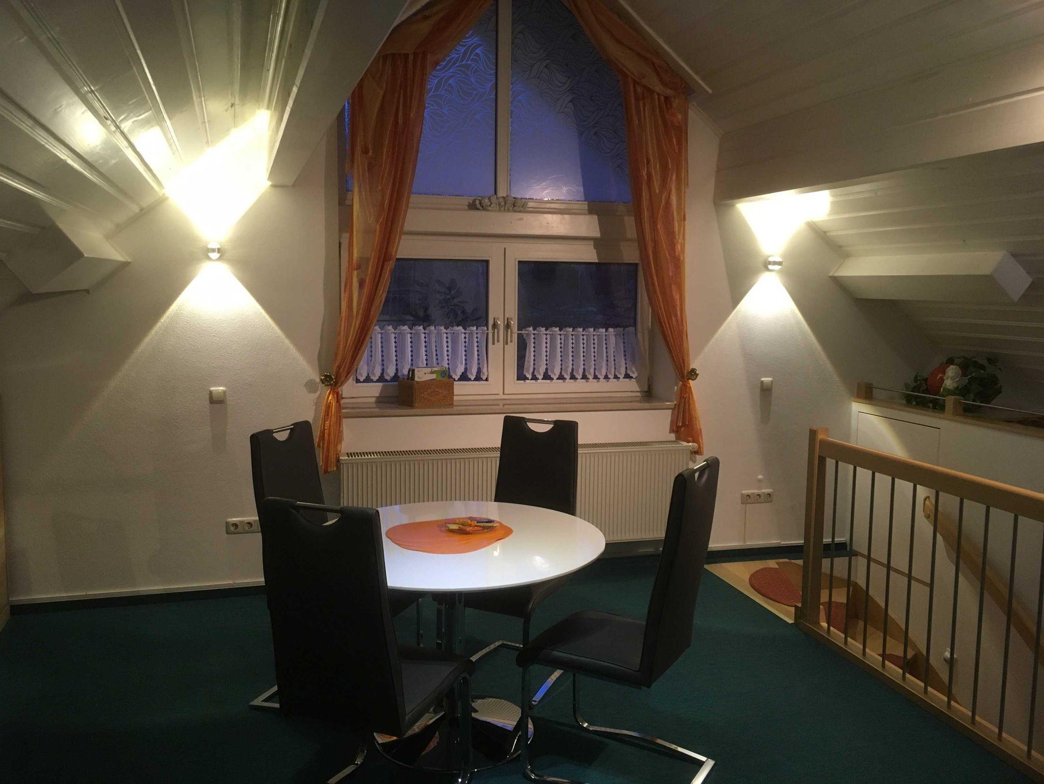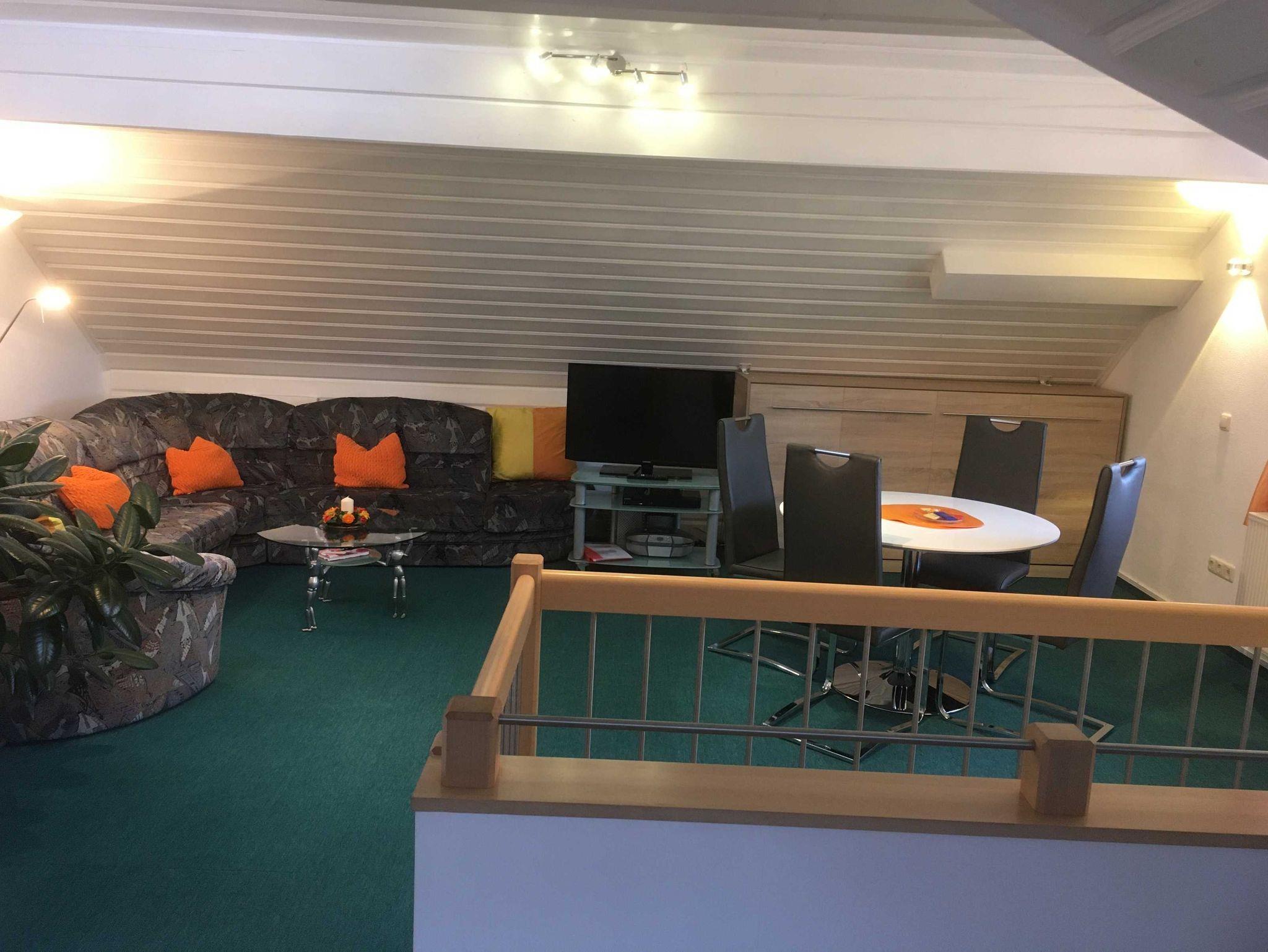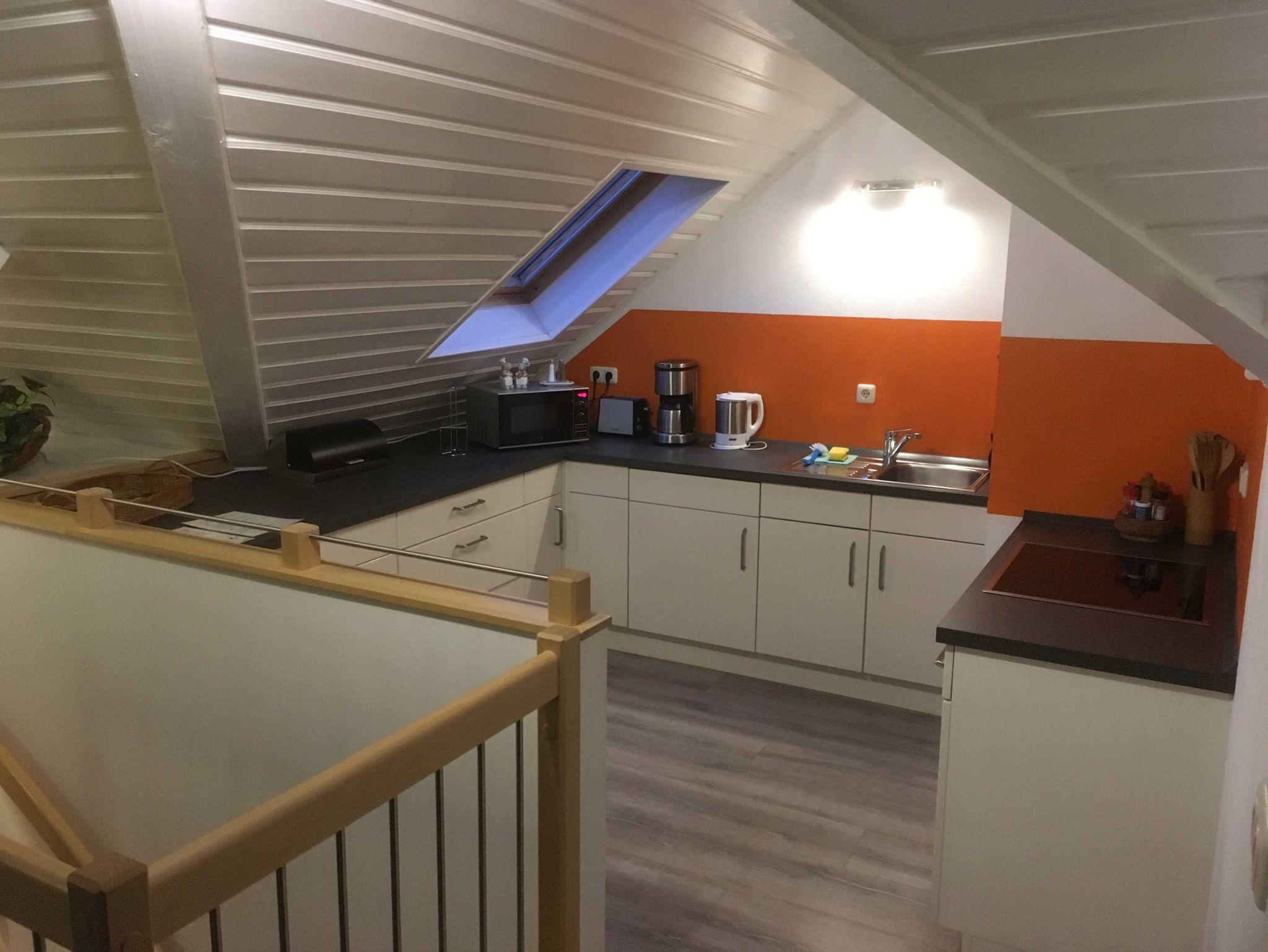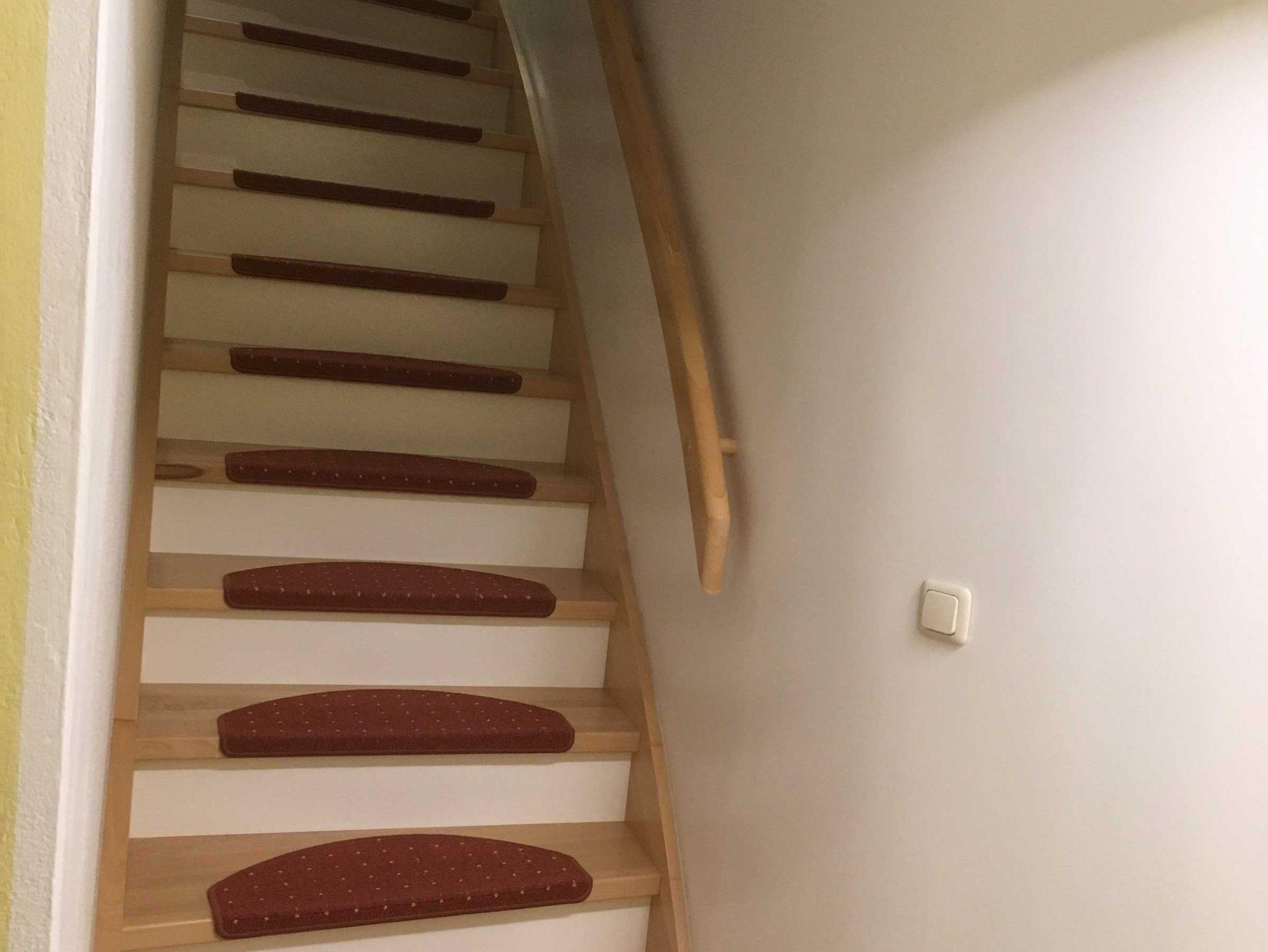 Die FeWo befindet sich im 1. Stock (intern sind Schlafräume und Wohnraum mit einer Treppe verbunden).