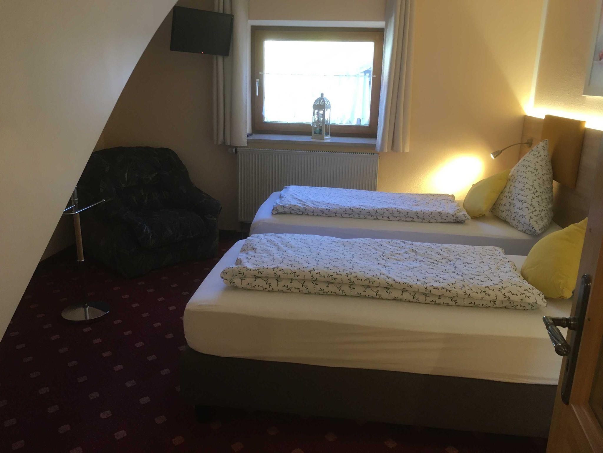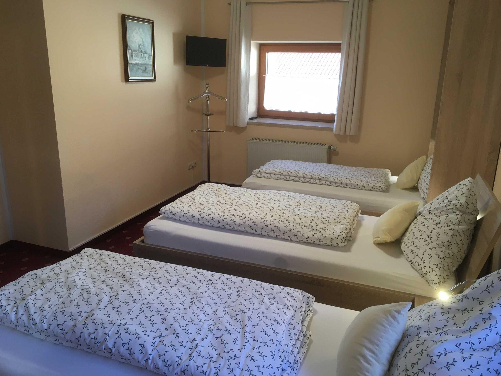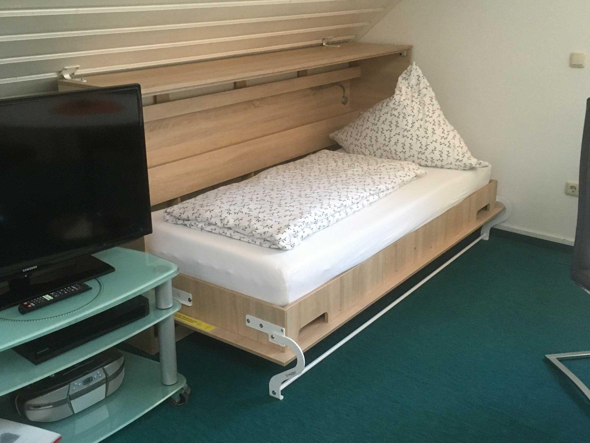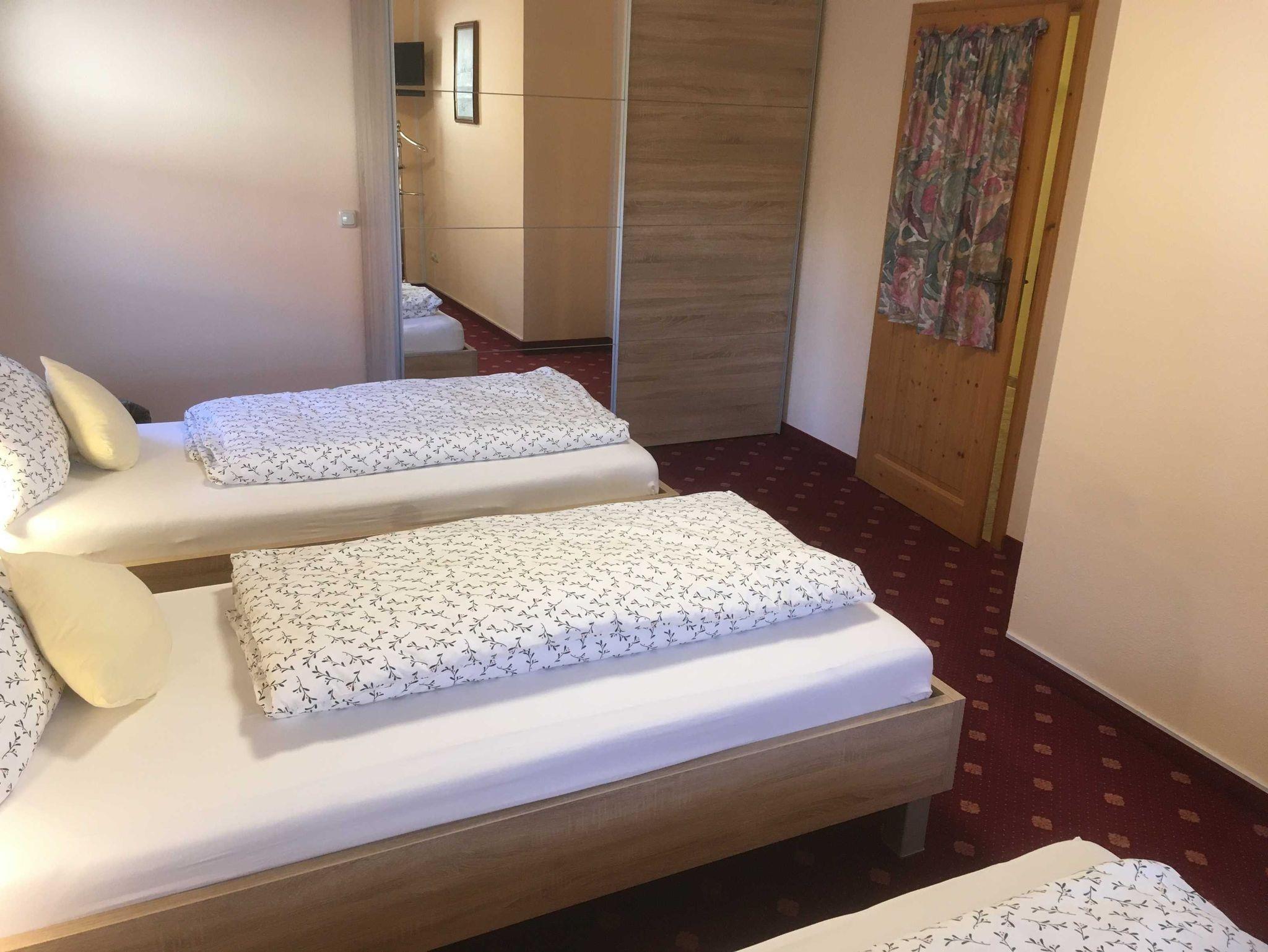 Im 2. Schlafzimmer nebenan, sind ebenfalls 1Fernseher, 1 großer Schrank, und 2 Einzelbetten, die man auch zusammenstellen kann, sowie ein Schrankbett für eine evtl. 5. weitere Person.