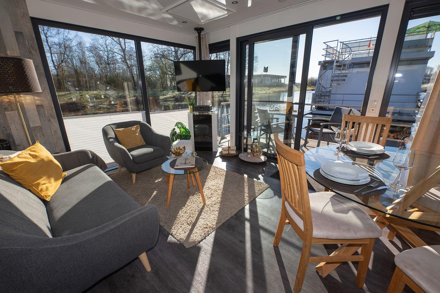 Urlaub auf dem festliegenden Hausboot, ganz ohne Bootsführerschein.