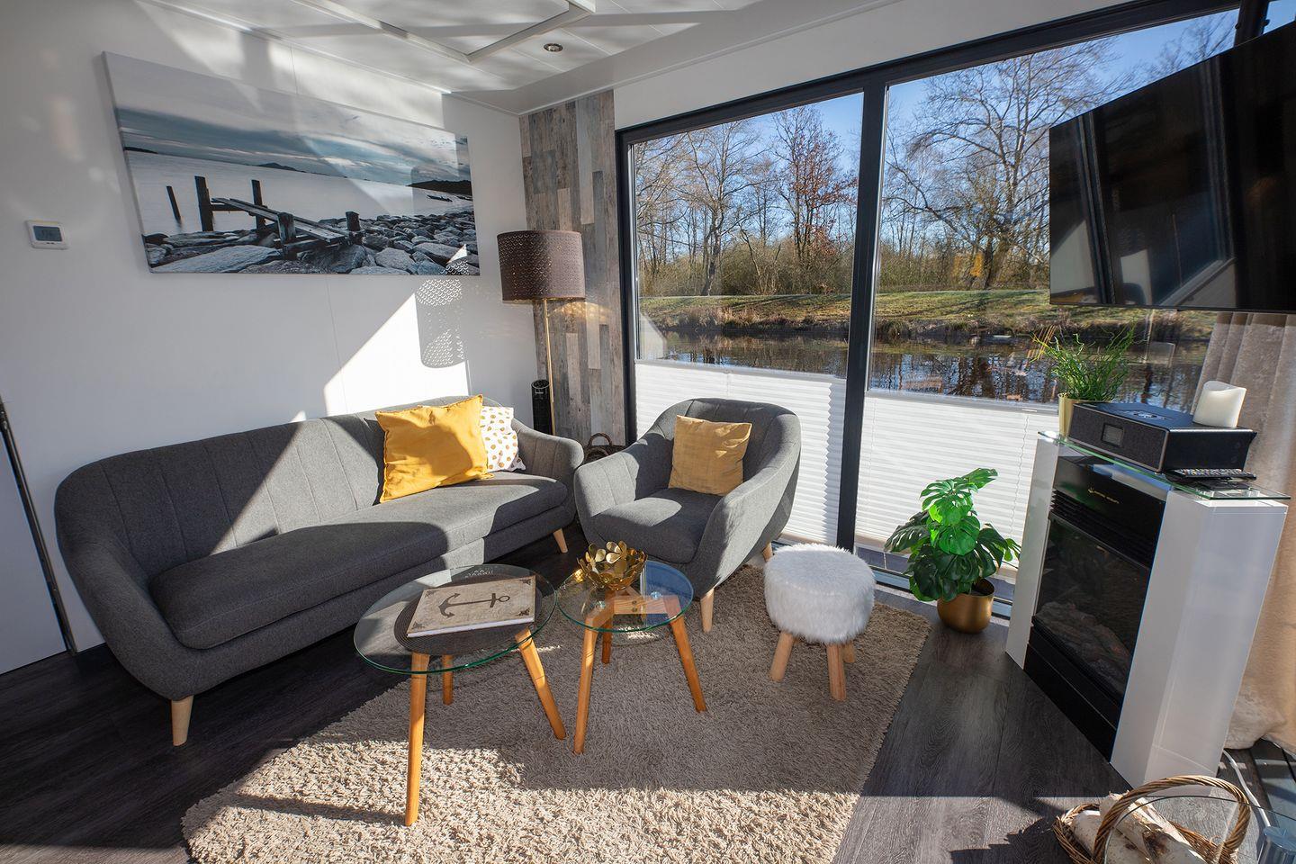 Urlaub auf dem festliegenden Hausboot – führerscheinfrei, ruhig, komfortabel.
