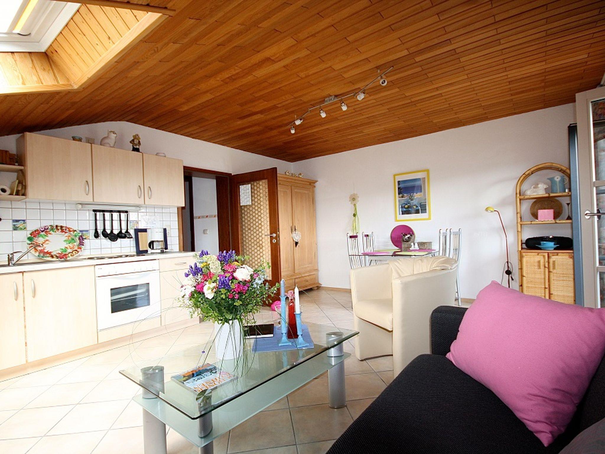 50 qm Wohnfläche mit einem Schlafzimmer, Bad mit Dusche/WC, Wohnbereich mit Schlafcouch samt einer komplett ausgestatteten Küche sorgen für “Daheimsein im Urlaub”.