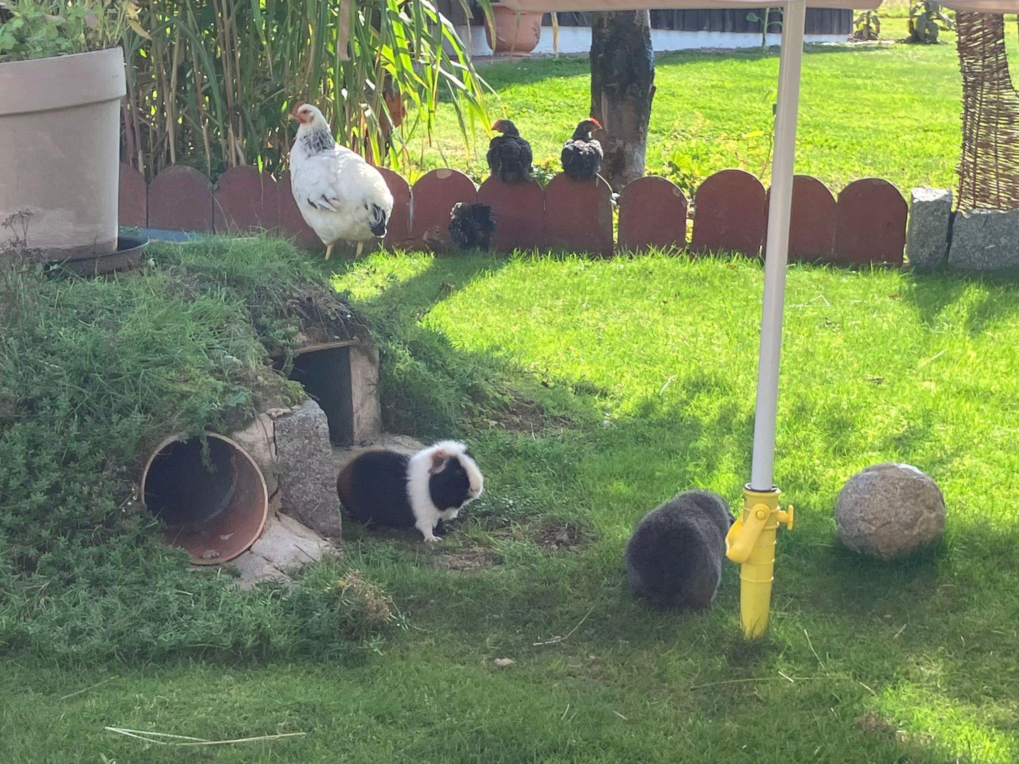 A private garden area with a seating area, barbecue, campfire site, deckchairs etc. is at your disposal. Our house offers an ideal activity radius for your children. Our pets and farm animals (alpacas, dog, cats, merris, chickens....) would be delighted to meet your children. Trampoline, ropeway, outdoor table tennis, sand, swings, children's vehicle park and much more complete the offer, which is rounded off by a sauna house with outdoor shower. Sweat it out before the twilight pints...
