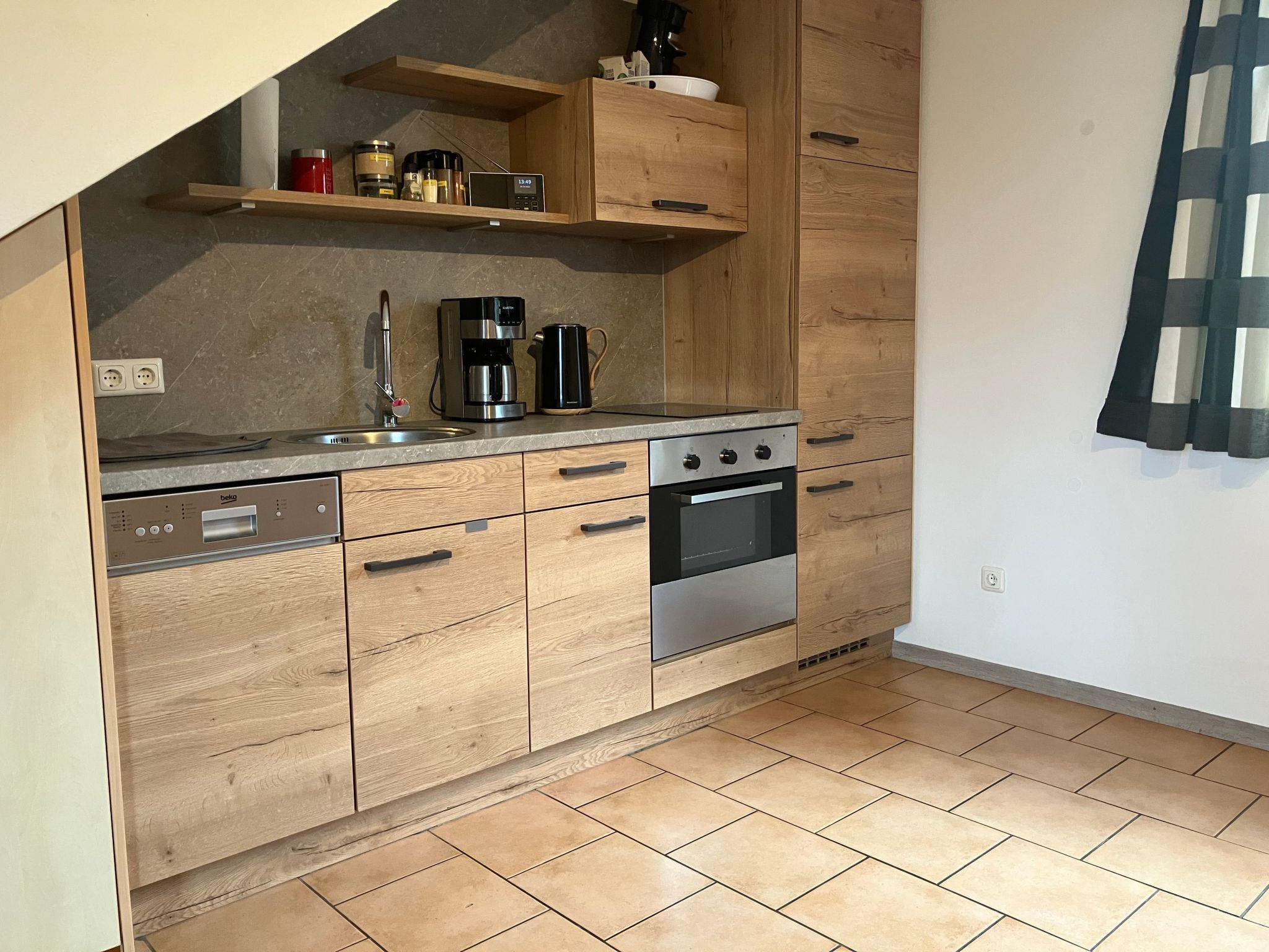 House description: The 70 square metres of living space are arranged on two levels. The living and kitchen area is on the ground floor. On the first floor is the bathroom, a bedroom with a double bed and another bedroom with two single beds and a cot.