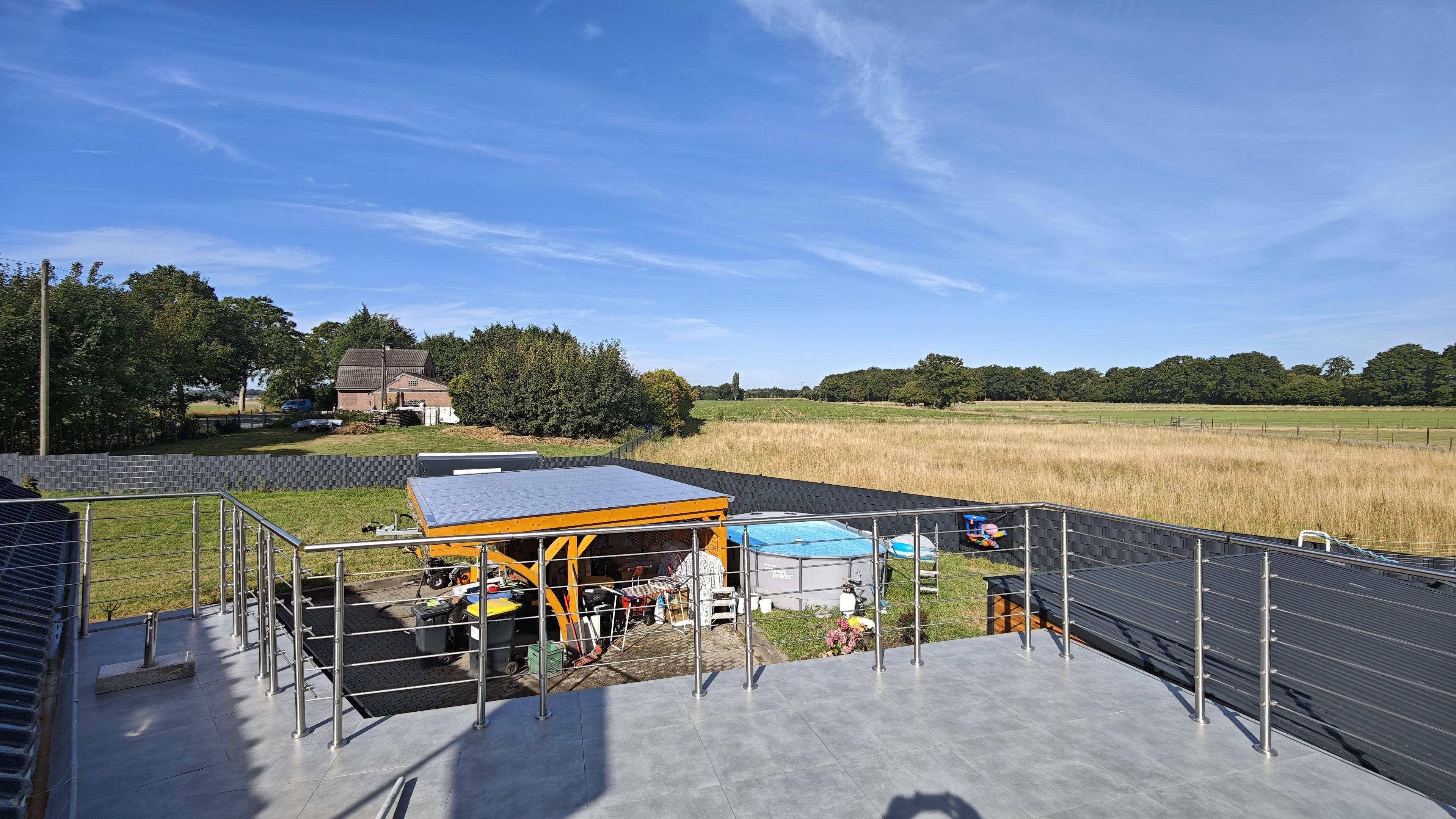 Genießen Sie Ihr Frühstück auf der Dachterrasse mit Ausblick auf ins Grüne und auf die umliegenden Pferdekoppeln.