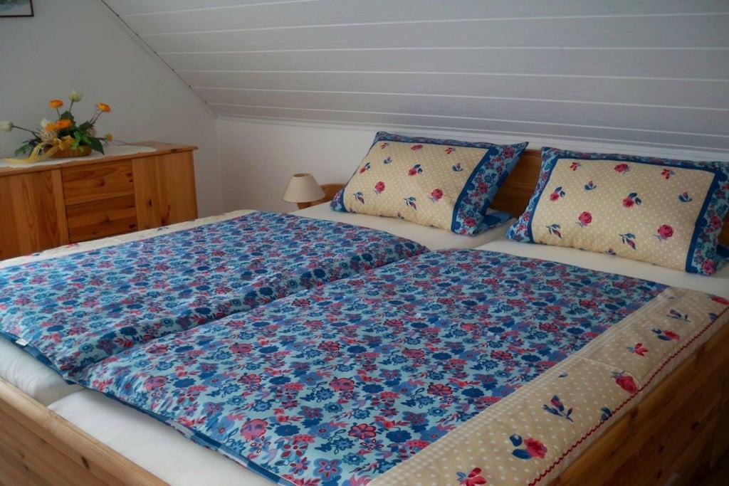 Liebe Gäste, unsere Ferienwohnung ist 44m² groß, bietet optimalen Komfort für 2 Urlauber und ist u.a. mit einer WLAN-Ausstattung ausgestattet. Kinderbett kann bei Bedarf gestellt werden. Die Wohnung ist hell und freundlich. Bettwäsche und Handtücher werden gestellt. Die Ferienwohnung verfügt über ein Flachbild TV mit SAT-Anschluß. Fahrräder können kostenlos benutzt werden.