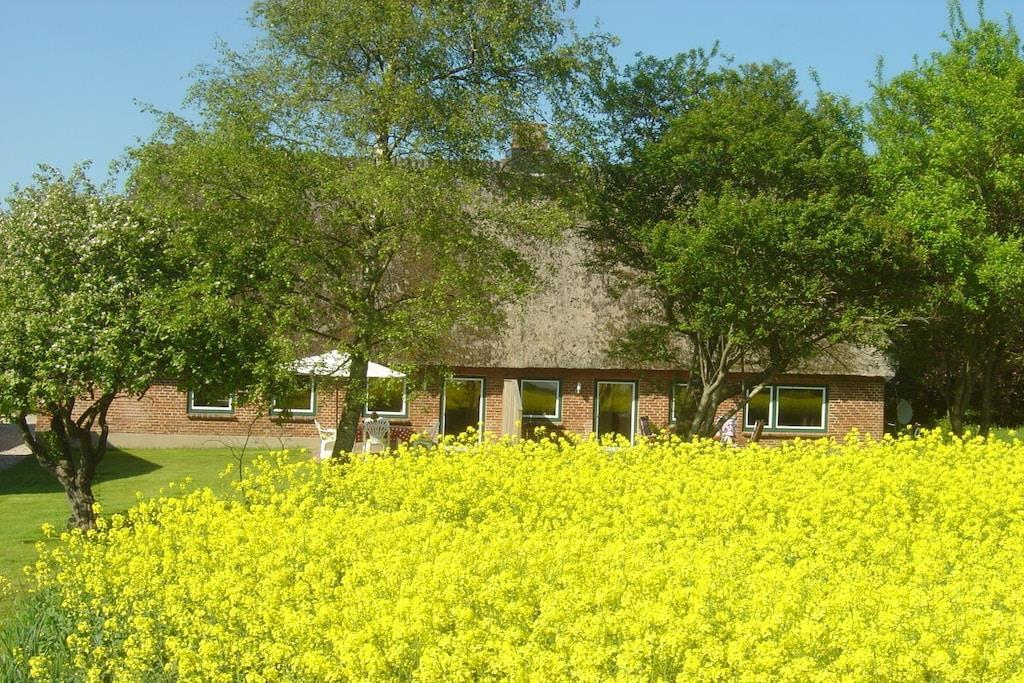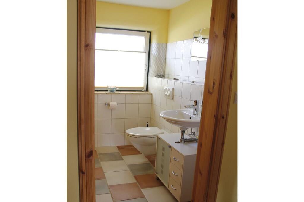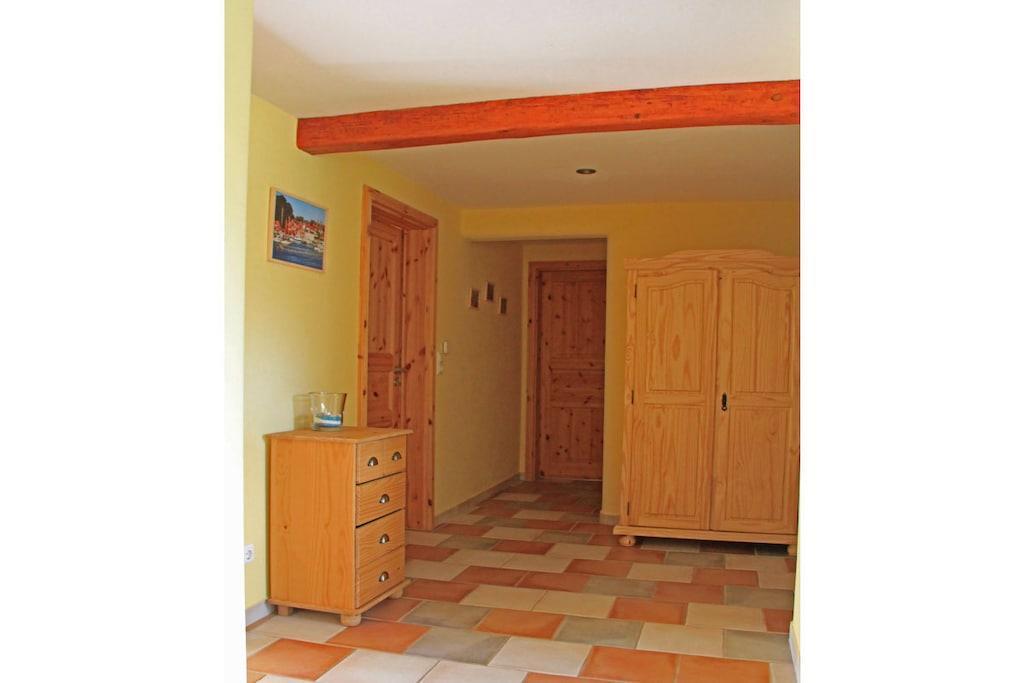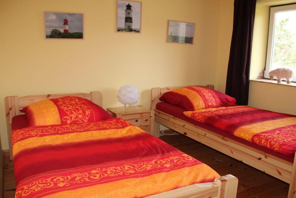 Freuen Sie sich auf eine großzügige , 90 m² Nichtraucher Ferienwohnung für 1- 5 Personen. Es steht ihnen ein Wohnzimmer mit direktem Zugang zur Terrasse und Garten, 2 separate Schlafzimmer, Küche mit Essbereich, Badezimmer mit Sauna, und 1 Gäste WC zur Verfügung. Selbstverständlich ist bei uns W - Lan mit im Preis enthalten. Der uneinsichtige Garten, mit direktem Zugang aus der Wohnung ist eingezäunt, so dass Sie als Familie mit ihren Jüngsten und ihren Fellnasen entspannt ihren Urlaub genießen können. Zusätzlich steht noch mehr Gartenfläche zur Verfügung. Der eingezäunte Teil des Gartens mit Weitblick verfügt über einen Strandkorb, eine Sonnenliege und gemütliche Terrassen Möbel. Ein Sonnenschirm ist selbstverständlich auch vorhanden. Es kann direkt direkt am Haus geparkt werden. Ein Gästeparkplatz steht für Sie bereit- es ist genügend Platz vorhanden. Für die Kinder ist ein großes Trampolin, eine Rutsche und zwei Schaukeln vorhanden. Zudem leben auf unserem Resthof auch ein paarTiere (Hühner, Katzen, 2 Kaninchen). Für Freizeitsportler besteht die Möglichkeit Fahrräder, Surfbretter oder auch die Dachbox verschlossen in einem separaten Schuppen zu lagern. Wir verfügen über genügend Platz. Es steht ein extra abschließbarer Raum zur Verfügung.