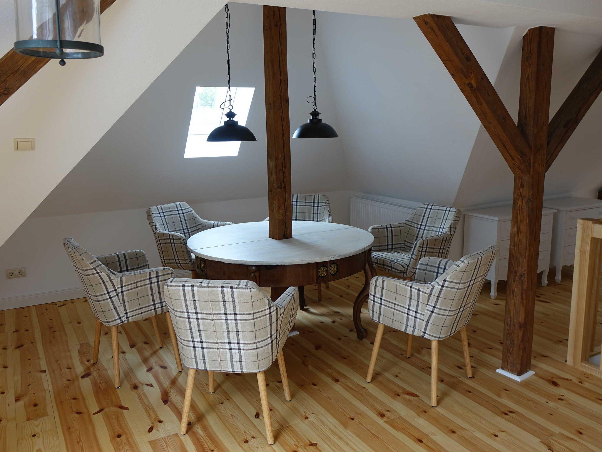 - großer Wohn- und Essbereich / Tagungsraum mit Kaminofen; langer Tisch für bis zu 21 Personen
