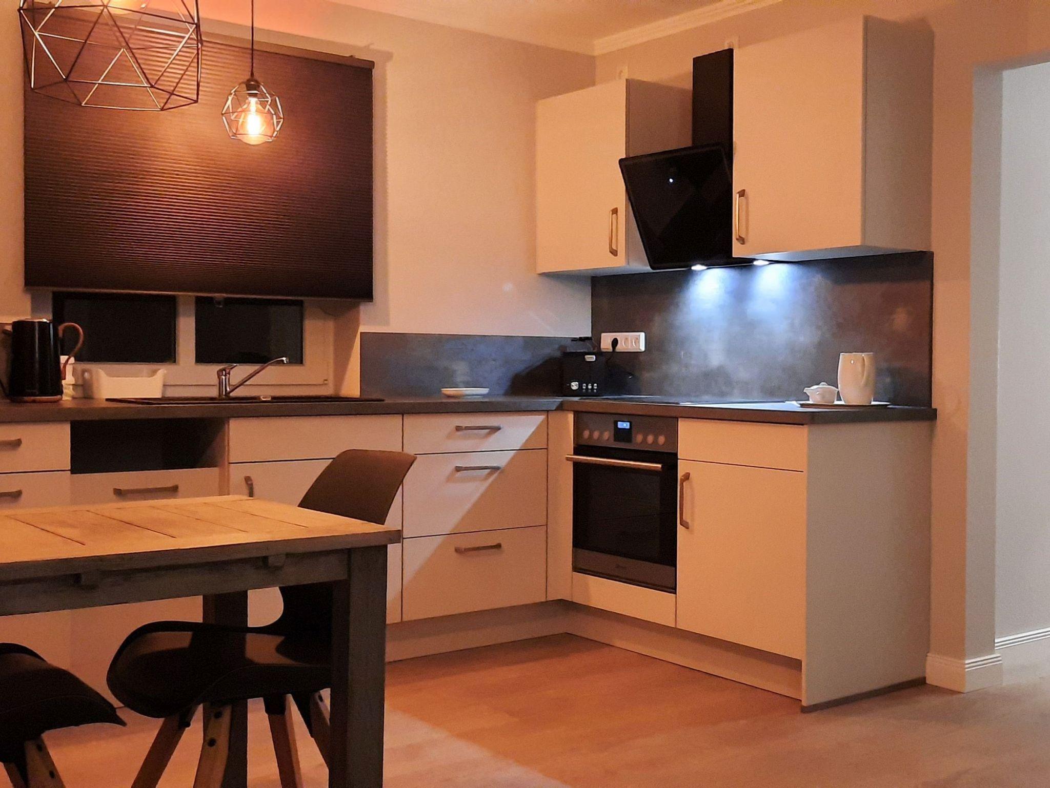 - großer Wohn-Essbereich mit offener Küche und Kaminofen; Korb mit Brennholz für 5,00 € vor Ort zubuchbar;