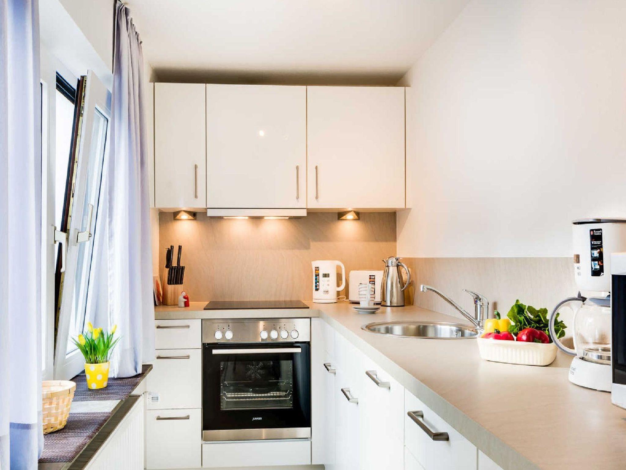 - hochwertige, voll ausgestattete Küche mit Ceranfeld, Geschirrspüler und Mikrowelle
