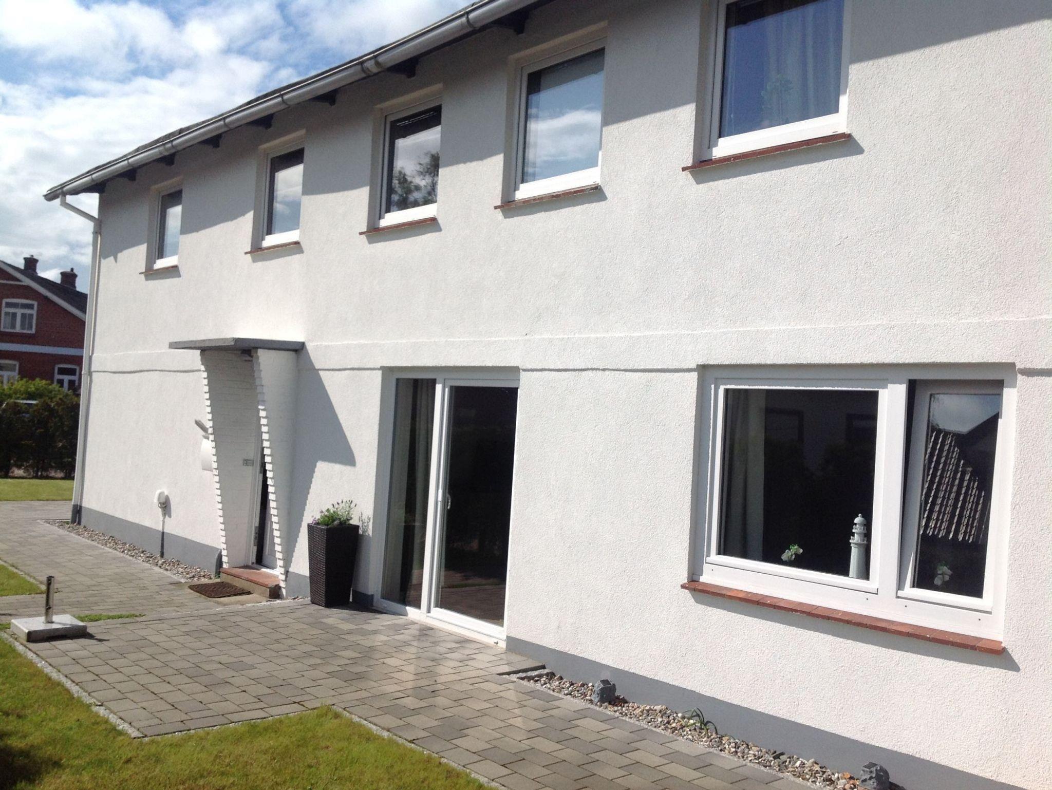 Wohnen in 1 von 3 modern und gemütlich eingerichteten Ferienwohnungen im Ortskern vom beschaulichen Gelting. Die barrierefreie Wohnung Meer im Erdgeschoss und die Ferienwohnung Strand bieten einen direkten Zugang von dem Wohnbereich auf die Terrasse. Die helle sowie moderne Ferienwohnung Sonne mit einem E-Kamin und Caffisimo bietet zur jeder Jahreszeit der Seele ein zu Hause. Hier bietet der große Garten und eine Terrasse Erholung an. Die Garage mit gemeinschaftlicher Nutzung von Waschmaschine, Trockner, mehrere Grills, Sonnenliegen und Gartenmöbel stehen zur freien Verfügung sowie Unterstellmöglichkeit für selbst mitgebrachte Fahrräder. Ein Stellplatz für die barrierefreie Wohnung gibt es direkt am Haus, weitere Stellplätze direkt neben dem Ferienhause auf einem Parkplatz.