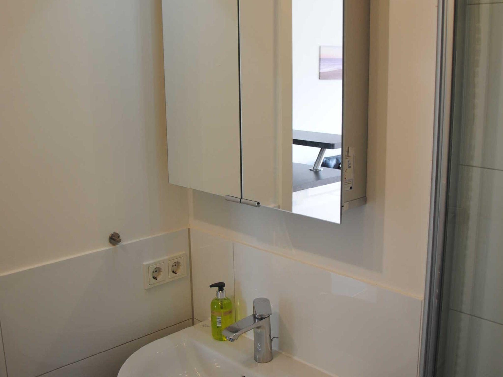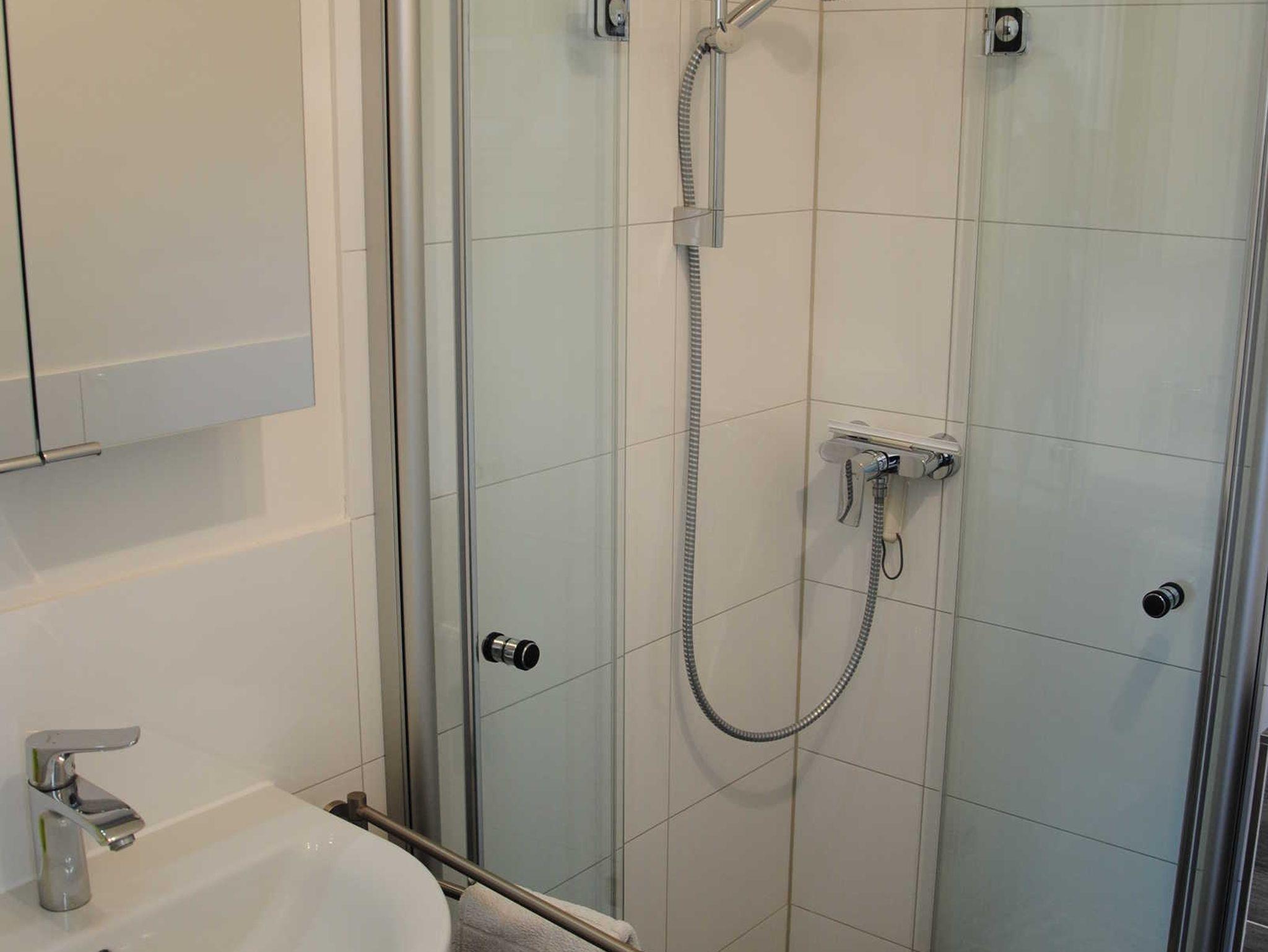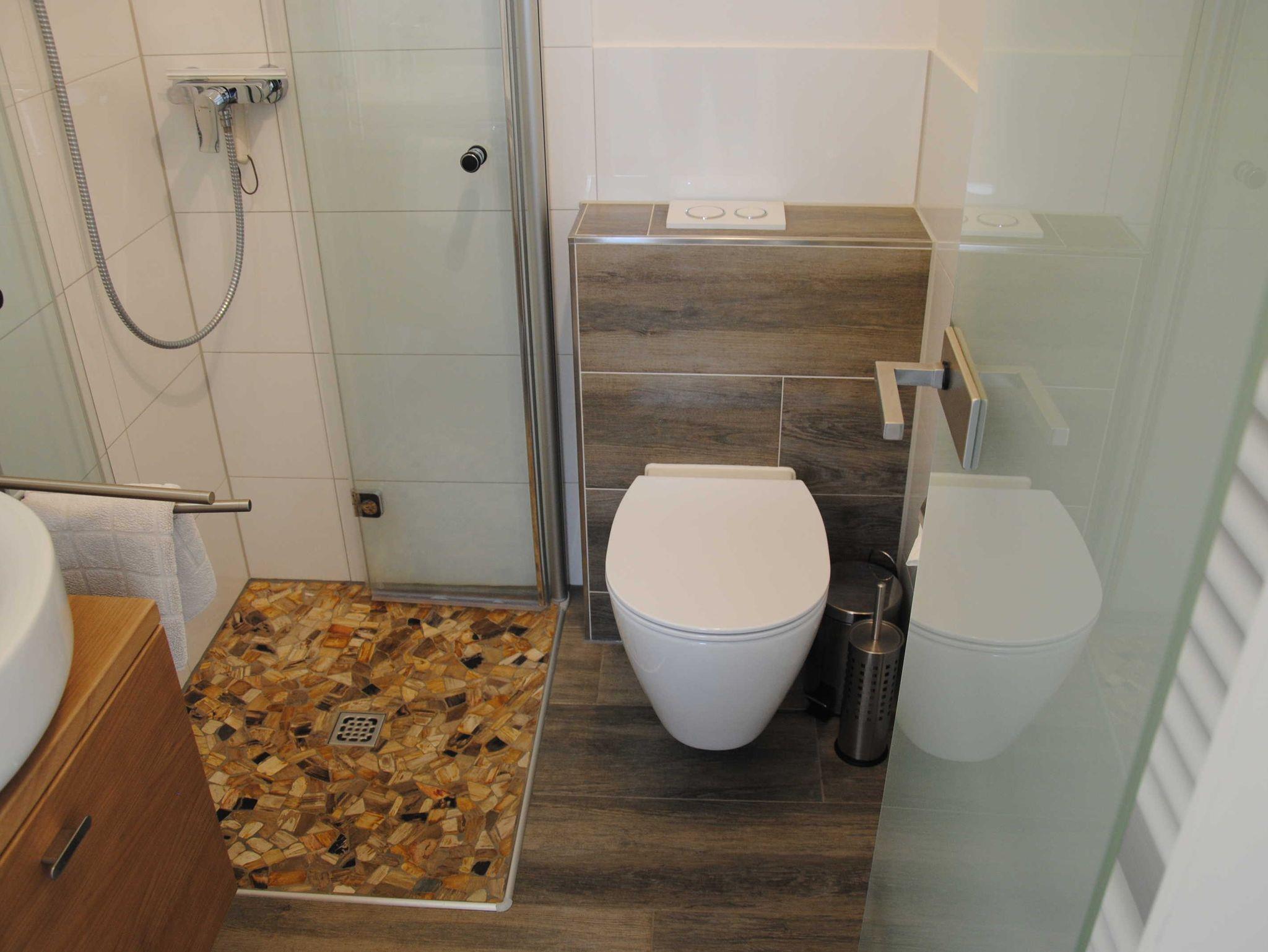 - modernes Duschbad mit ebenerdiger Dusche inklusive Handtücher mit Haarfön