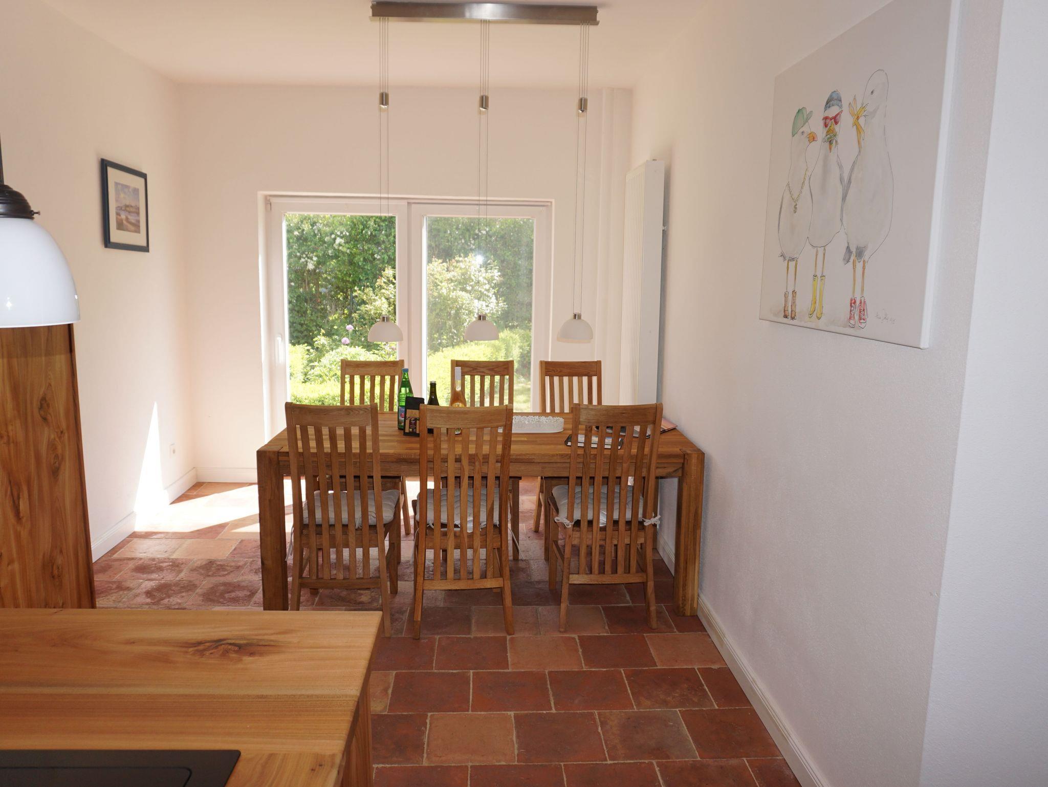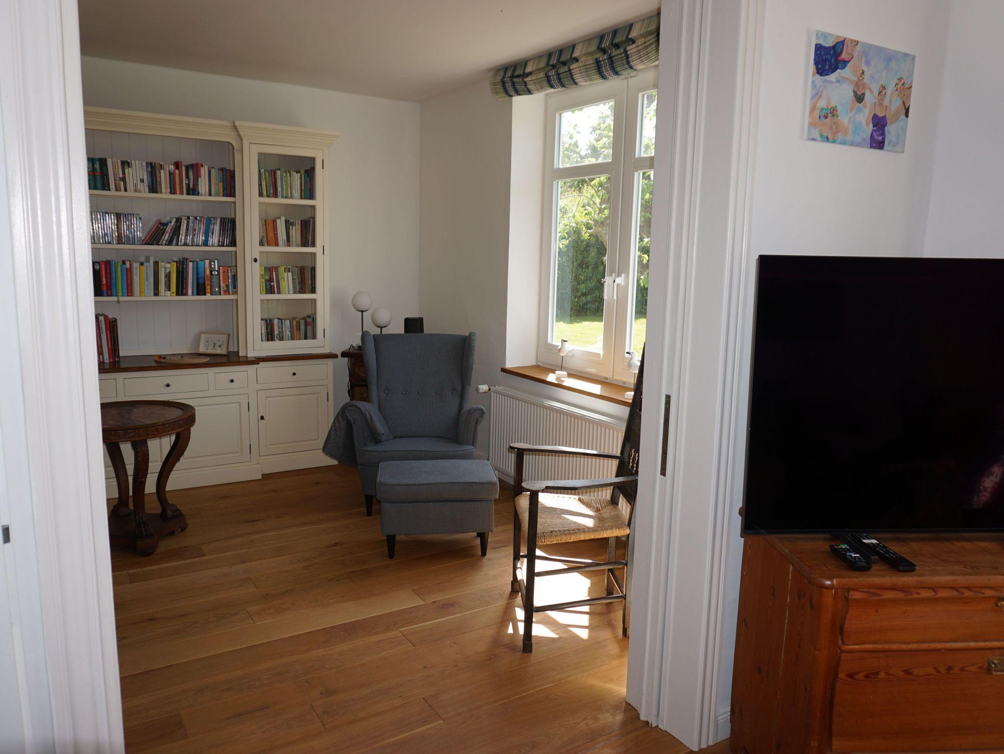 Sie verfügt neben dem Wintergarten im EG über eine wunderschöne Echtholz-Küche mit Eßtisch und Zugang in den Garten. Desweiteren über ein Wohnzimmer (2 Sofas, Smart TV und Kamin), ein 2. Wohnzommer oder Lesezimmer mit Bücherschrank, Schlafsofa und Sessel, ein Bad mit ebenerdiger Dusche, ein Gäste WC, eine Speisekammer und ein HWR mit Waschmaschine und Trockner.