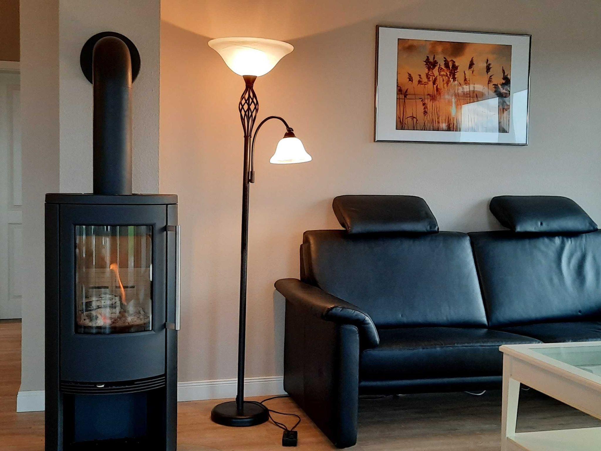 - großer lichtdurchfluteter Wohn-Essbereich mit offener Küche und Kaminofen; Korb mit Brennholz für 5,00 € vor