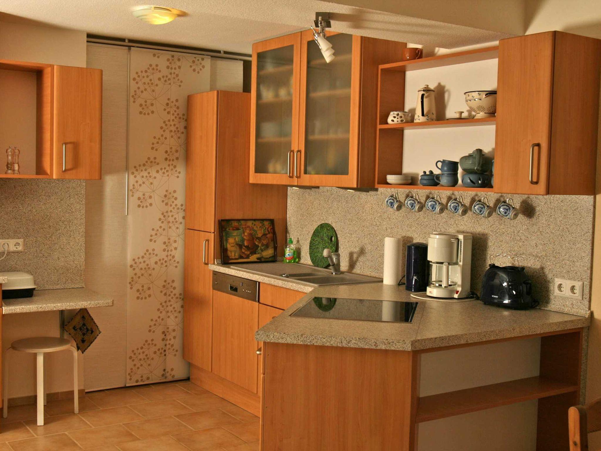 - offene Wohn-Küche mit Blick auf die Flensburger Förde, Geschirrspüler, Mikrowelle, Wasserkocher und Kaffeemaschine